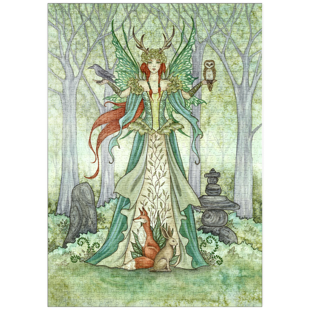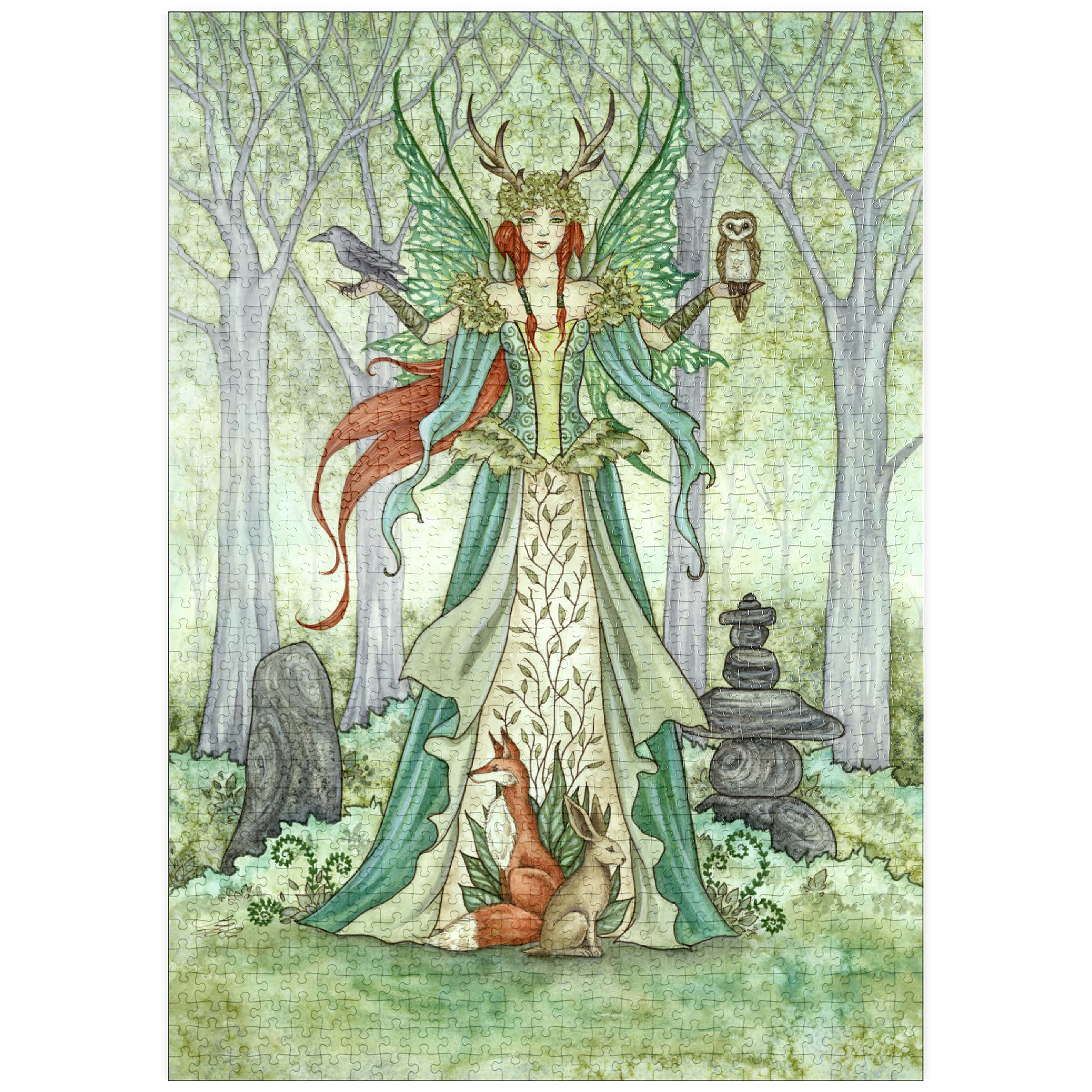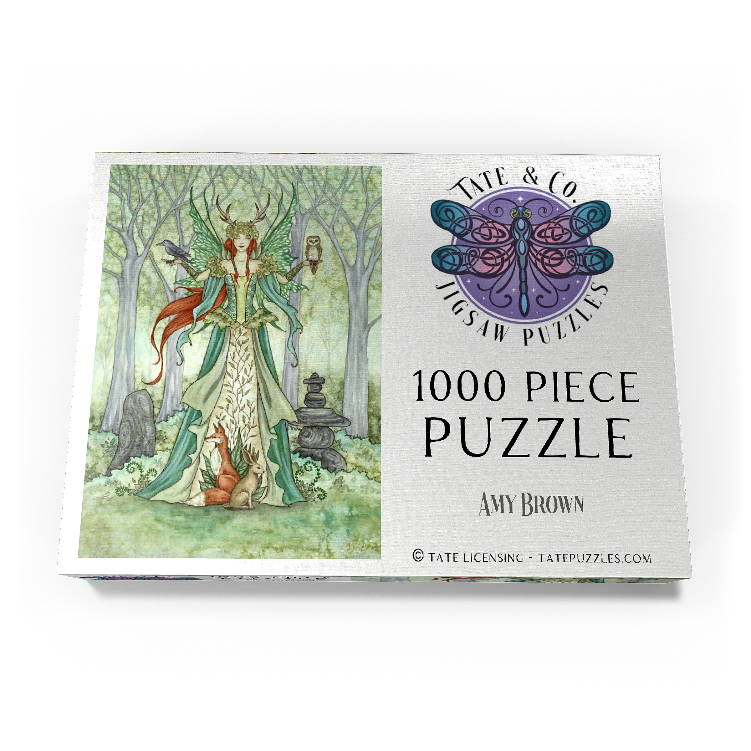 In „The Caretaker“ steht eine majestätische Waldfee mit Geweih und Flügeln als Wächterin des Waldreichs, flankiert von einem Fuchs, einem Hasen, einer Eule und einem Raben. Ihr Kleid blüht mit Blattwerk und symbolisiert die Harmonie zwischen allen Lebewesen und die stille, wachsame Magie der Natur.