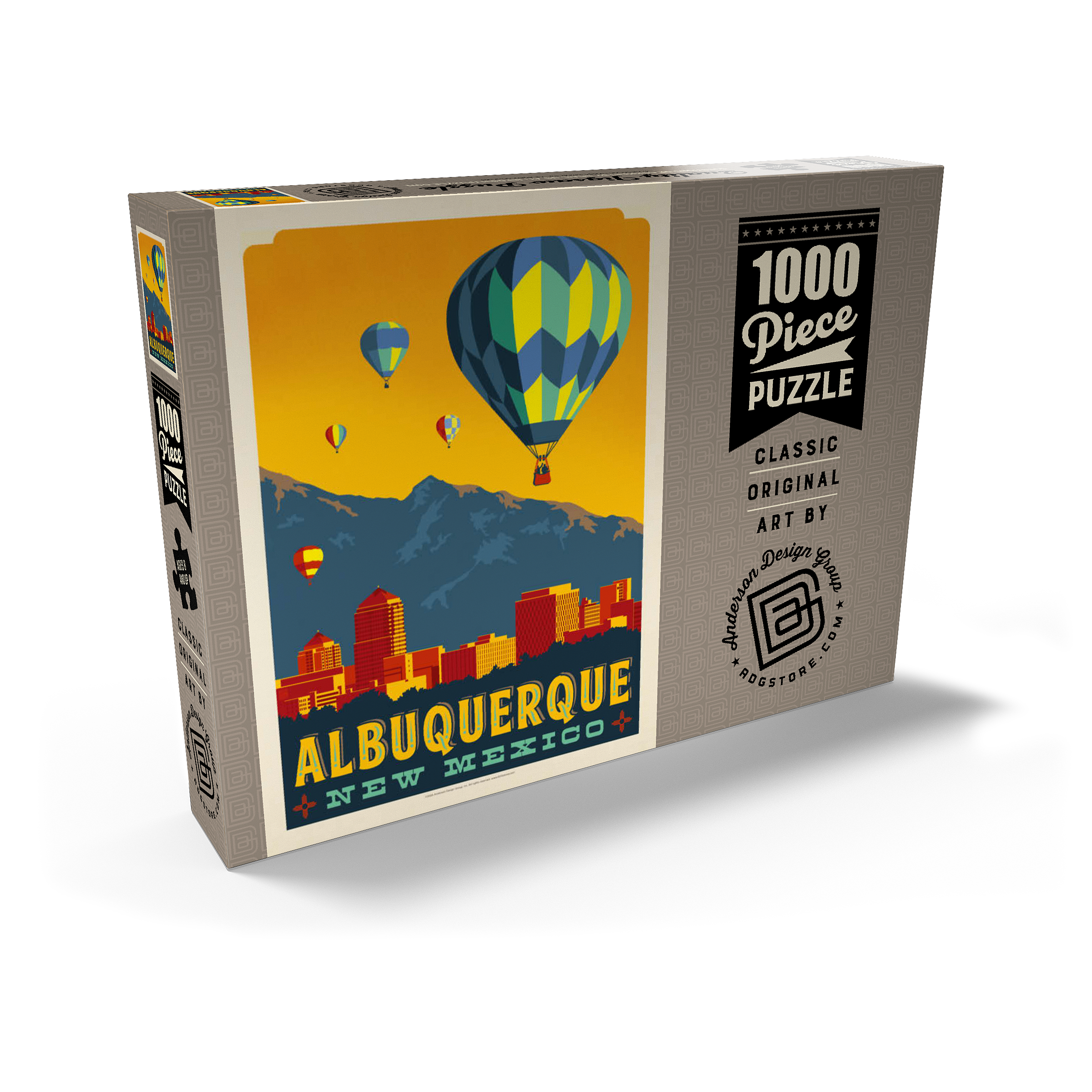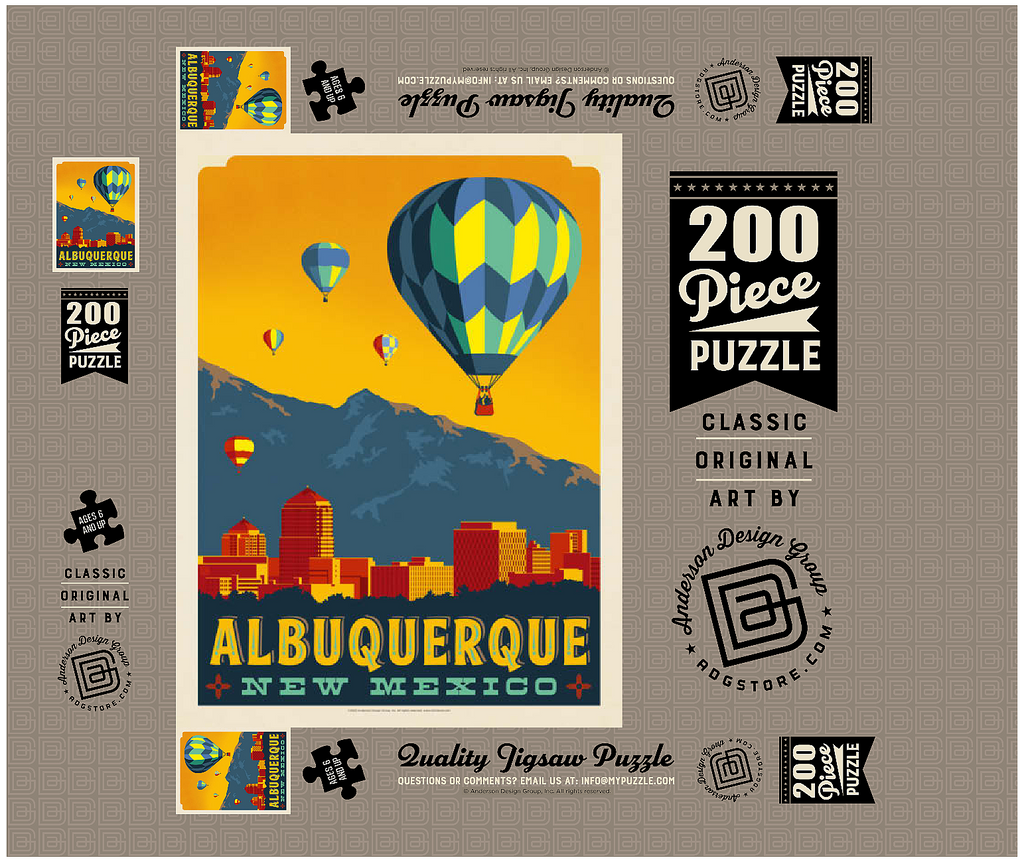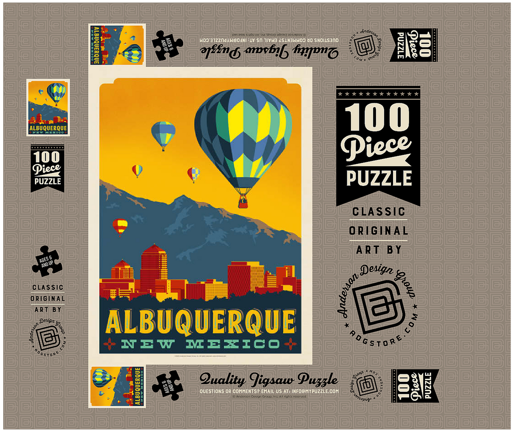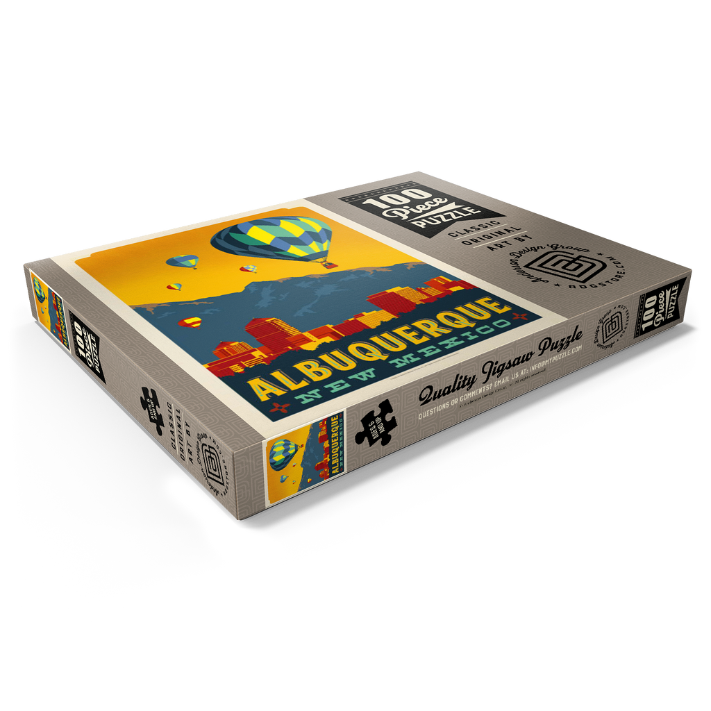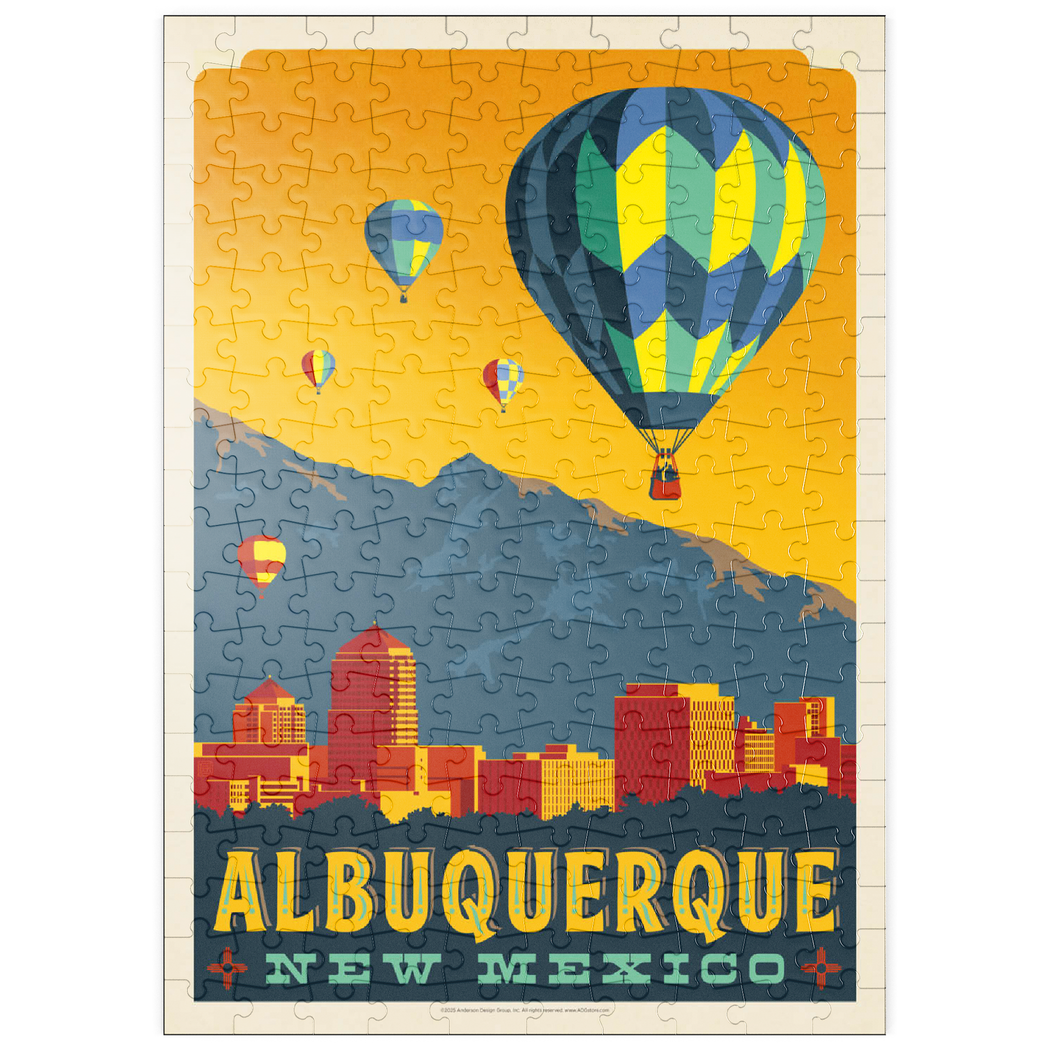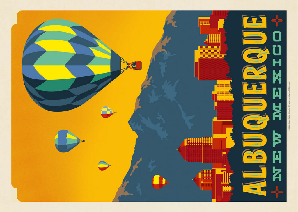 Albuquerque, New Mexico Skyline with Hot Air Balloons and Mountains
