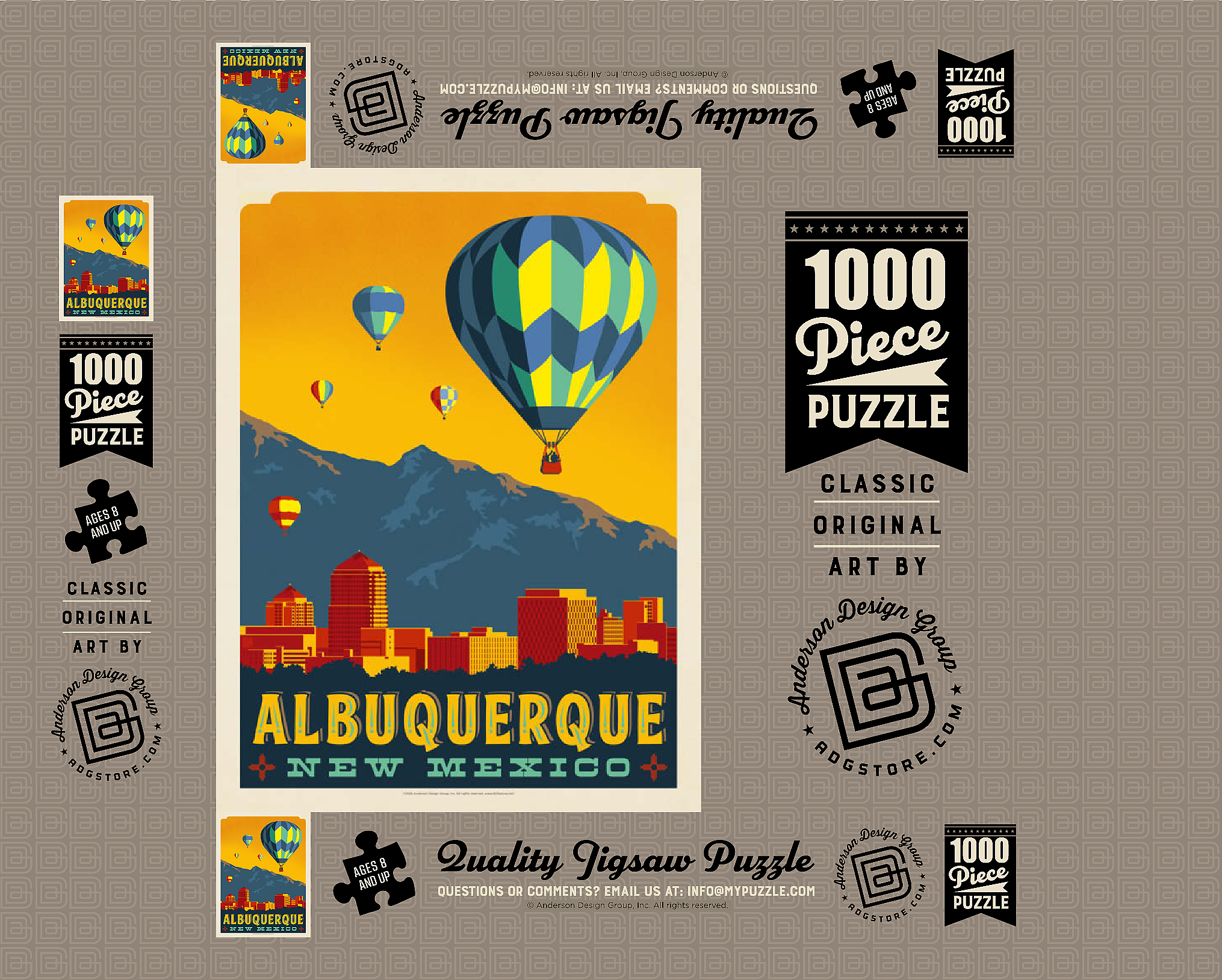 Die 1993 gegründete Anderson Design Group begann mit der Herstellung von CD- und Spielzeugverpackungen, Buchumschlägen, Postern und Logos. Im Jahr 2003 begann der Gründer Joel Anderson, seine Künstler anzuleiten, Werke im Stil der klassischen Plakatkunst des frühen 20. Jahrhunderts zu schaffen. Ihre erste Posterserie war die Kollektion Spirit of Nashville - eine Gruppe von Drucken, die die Geschichte und den Charme ihrer Heimatstadt zelebrierten. Im Laufe der Zeit entwickelte sich das Unternehmen zu einem Illustrations- und Designstudio mit einer Postergalerie und einer Druckerei im Erdgeschoss.Im Jahr 2010, nachdem er über 150 verschiedene Nashville-Designs produziert hatte, begann Joel eine neue Posterserie mit dem Namen The Art & Soul of America - eine Reisepostersammlung mit meinen liebsten amerikanischen Reisezielen. Es begann mit einer kleinen Sammlung von Drucken mit Motiven aus Städten wie Seattle, New Orleans, New York und Chicago. Die Serie war ein sofortiger Erfolg, und die Anderson Design Group erhielt bald Anfragen aus den gesamten USA für neue Kunstwerke, die andere Orte zeigen, die für die Menschen etwas Besonderes sind - Orte, an denen Erinnerungen geschaffen und Seelen bewegt werden.