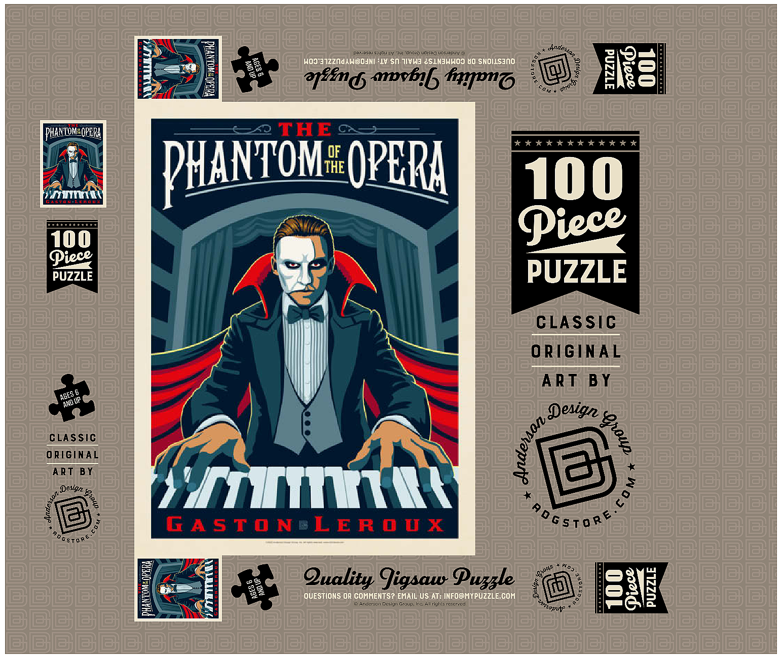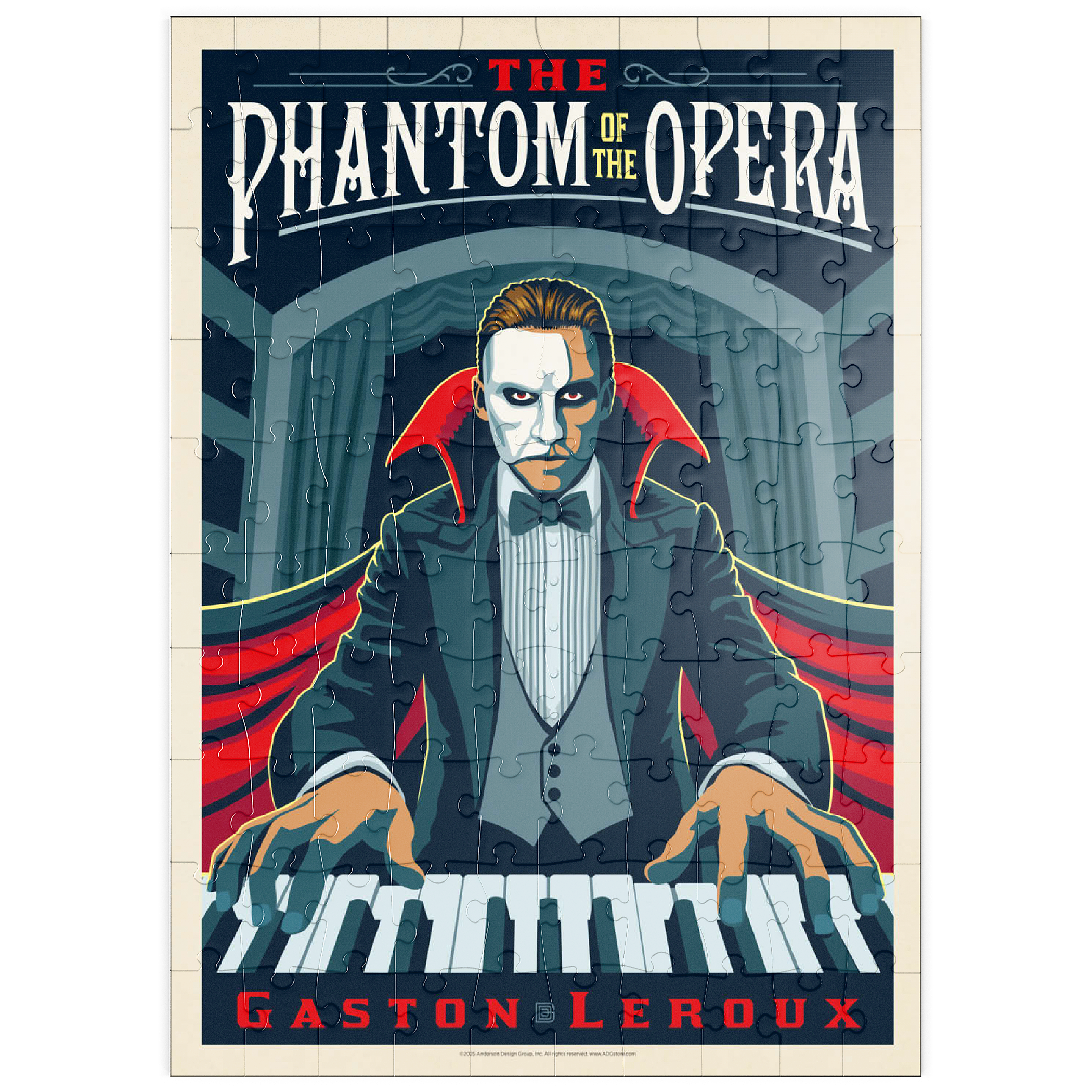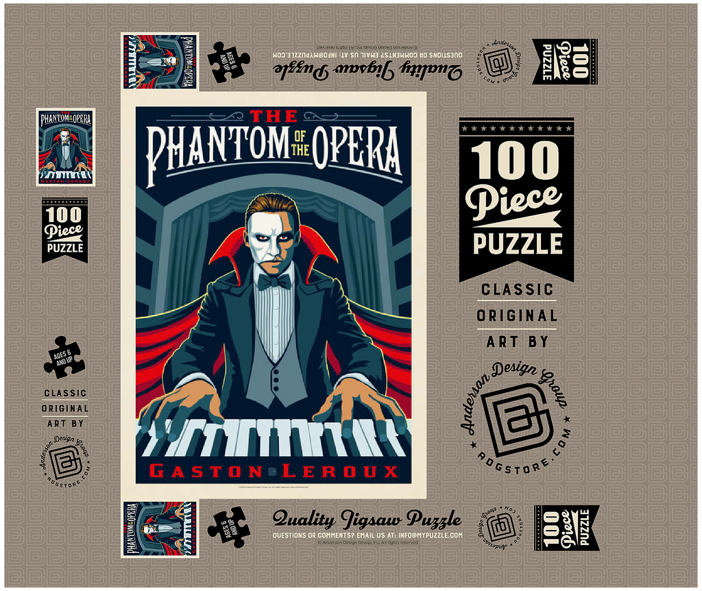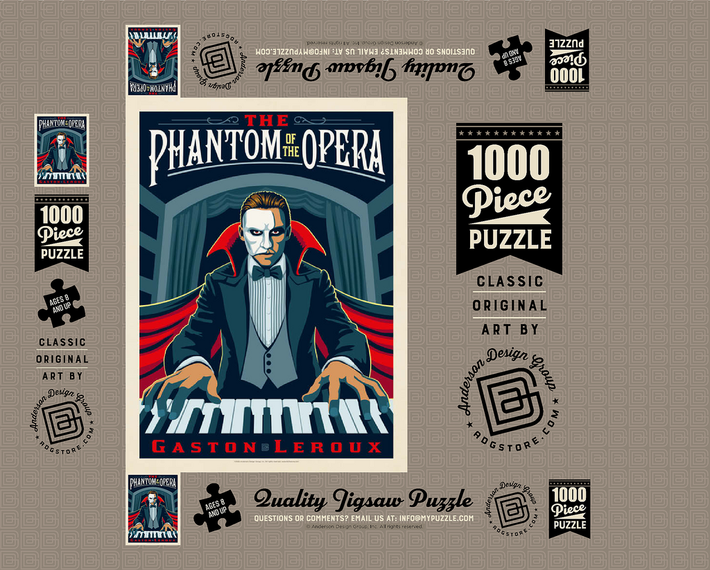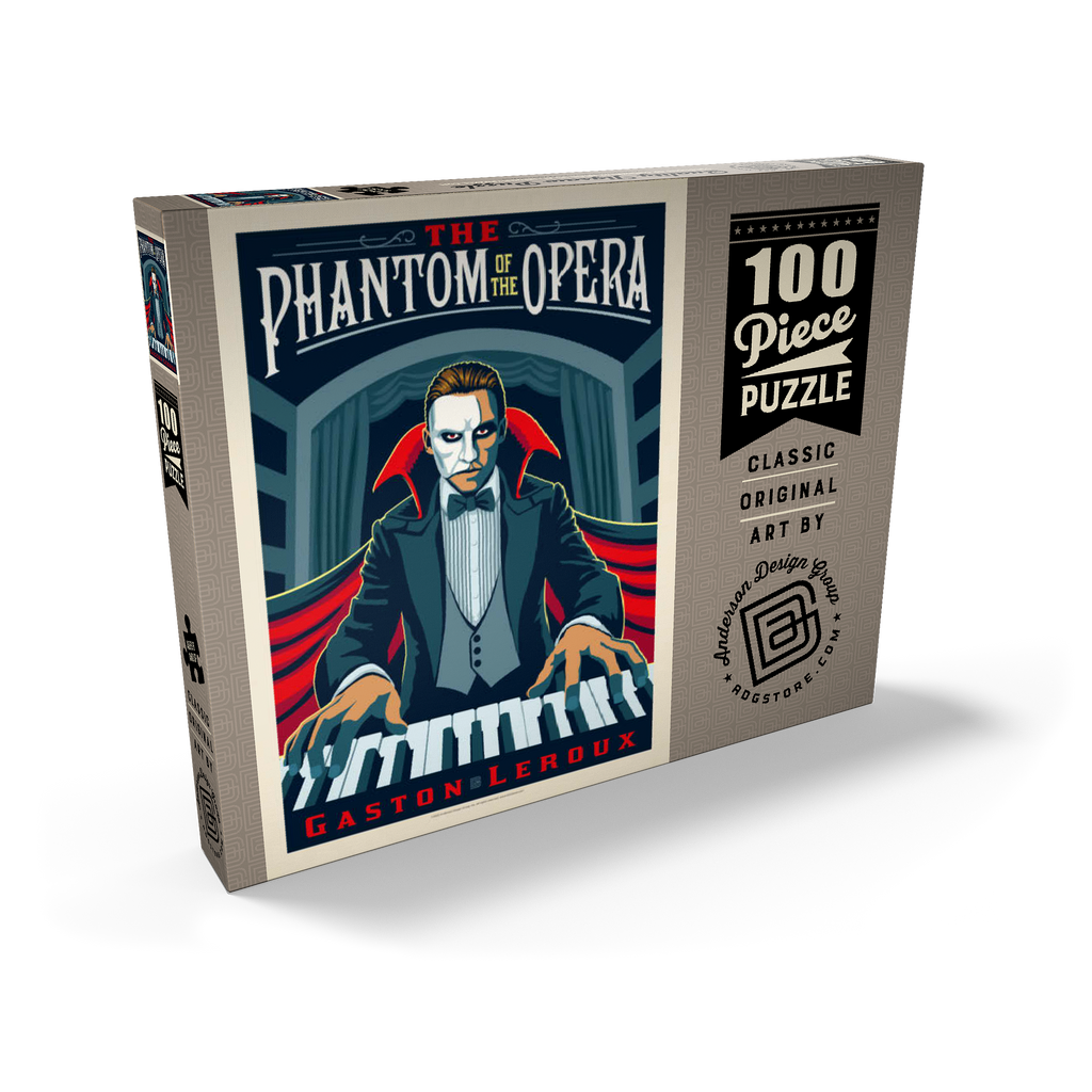 Diese kühne und dramatische Darstellung fängt die ikonische maskierte Figur aus „Das Phantom der Oper“, dem berühmten Roman von Gaston Leroux, ein. Die Hauptfigur ist beim Spielen eines Flügels dargestellt, gekleidet in formeller Abendgarderobe mit einem hochgeschlossenen Umhang und einer auffälligen weißen Maske, die sein Gesicht teilweise verdeckt und seine geheimnisvolle und eindringliche Präsenz unterstreicht. Der dunkle theatralische Hintergrund mit fließenden roten Vorhängen verstärkt die Spannung und Erhabenheit der Szene, während die scharfen Kontraste in der Beleuchtung und die kühne Farbwahl eine kraftvolle, stilisierte visuelle Wirkung erzielen. Diese Darstellung konzentriert sich auf die komplexe Persönlichkeit des Phantoms – eine Mischung aus Genialität, Besessenheit und verborgener Tragik – in der opulenten und spannungsgeladenen Welt des Opernhauses. Der künstlerische Stil verwendet klare Linien und grafische Formen, um die gotische Eleganz und dramatische Intensität der Geschichte zu vermitteln. Das Phantom der Oper wird weltweit als zeitlose Geschichte über Liebe, Musik und Geheimnisse gefeiert, und diese stilisierte Darstellung erweckt die Legende in einem visuell beeindruckenden, emotionsgeladenen Format zum Leben, das Fans klassischer Literatur und theatralischer Erzählkunst anspricht.