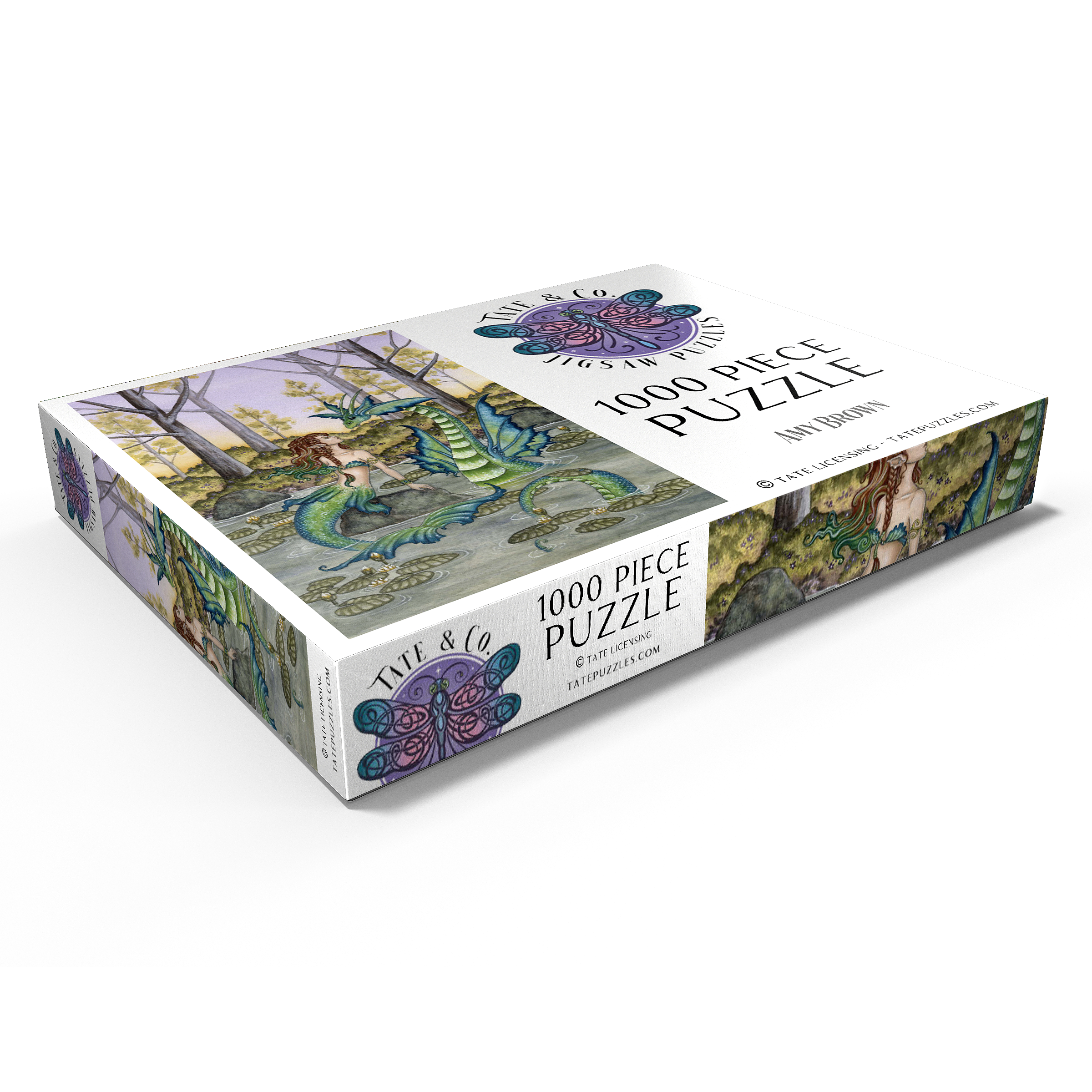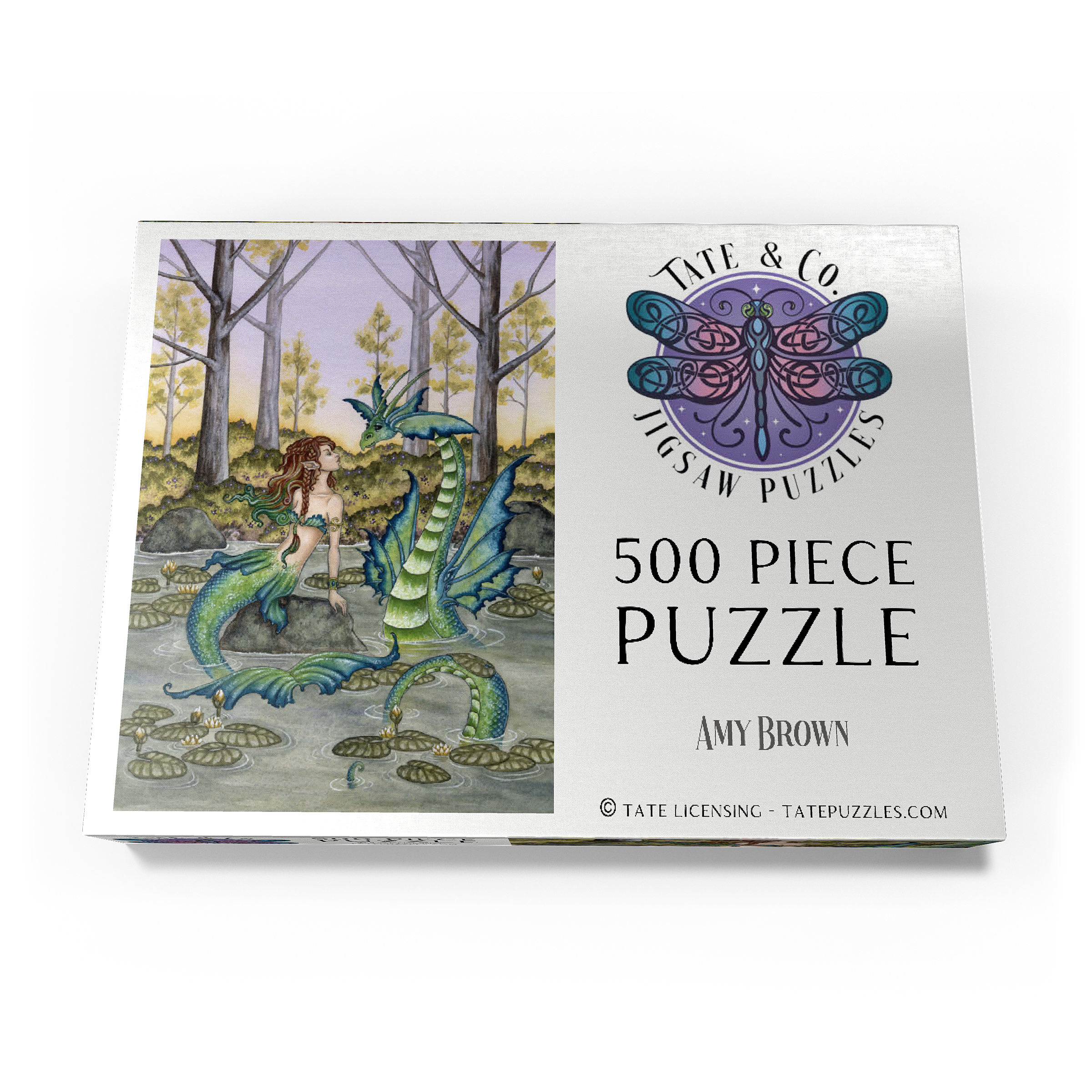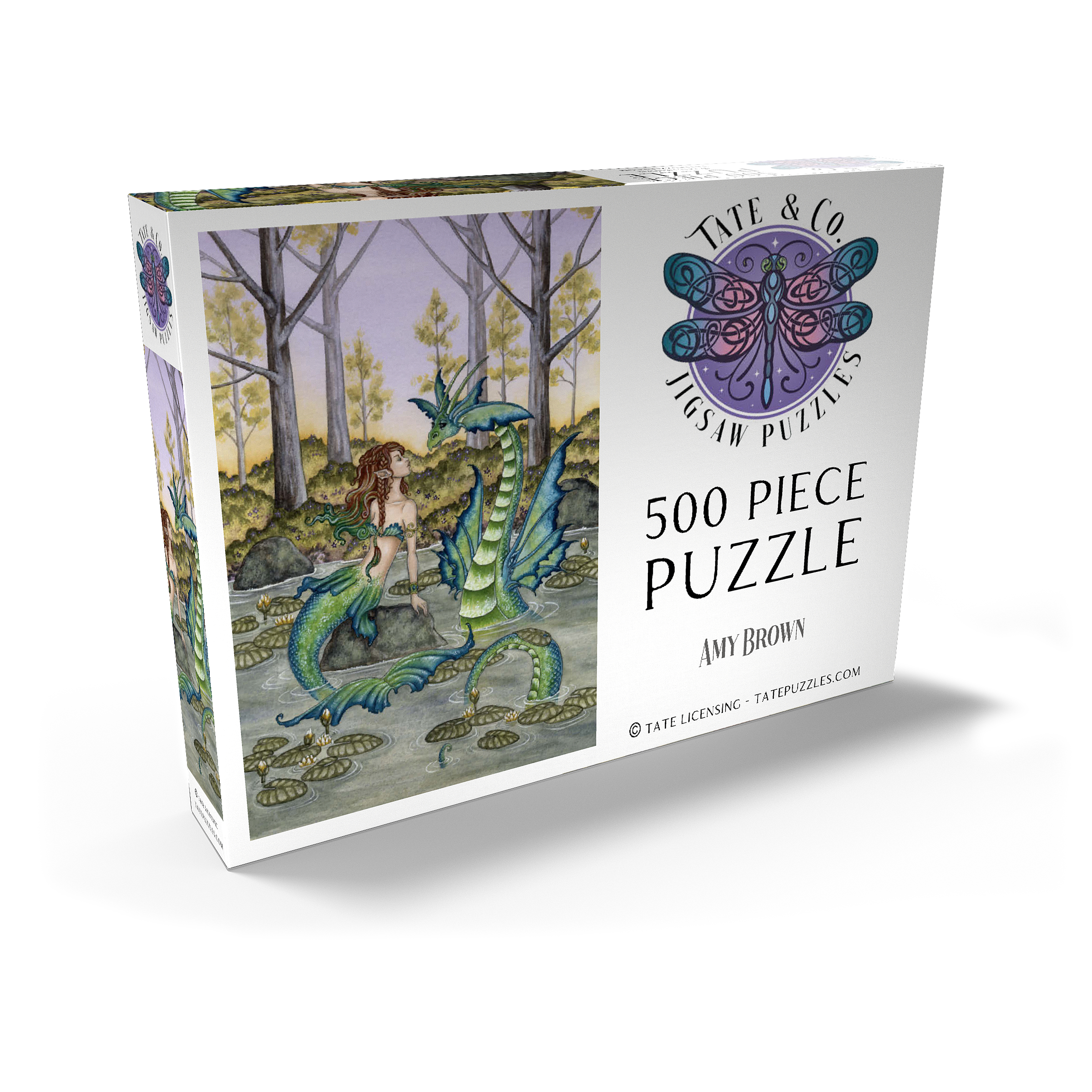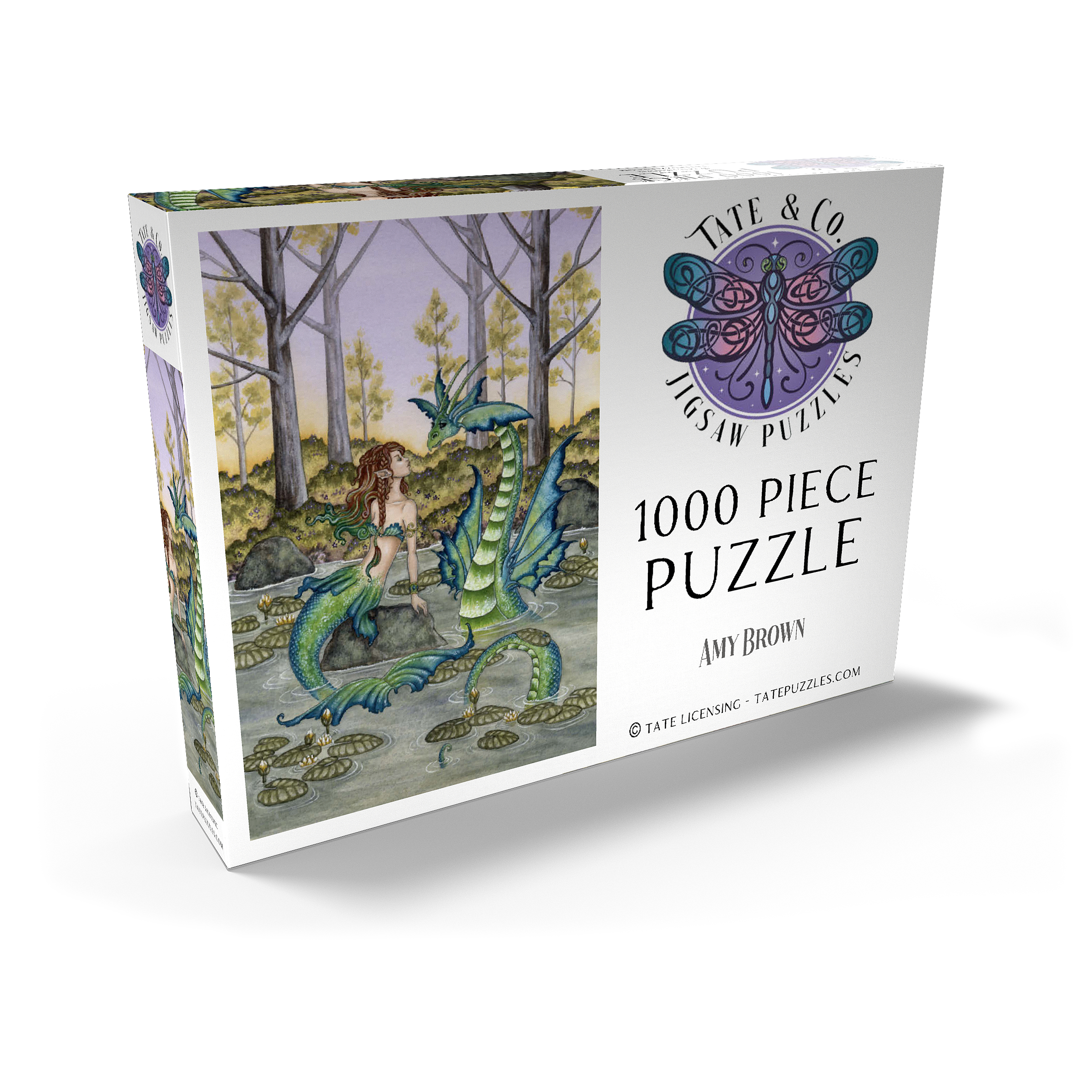 In „Lazy Afternoon“ genießt eine ruhige Meerjungfrau einen stillen Moment mit einem sanften Seedrachen zwischen Seerosenblättern und goldenem Waldlicht. Ihre friedliche Verbindung strahlt eine ruhige Magie aus, als ob die Zeit in diesem verzauberten Waldteich langsamer verläuft.