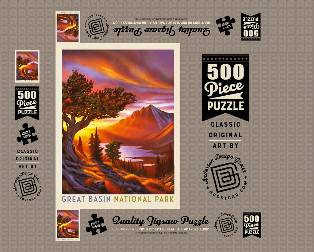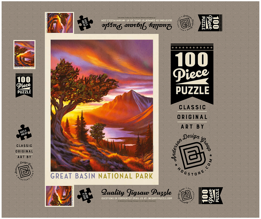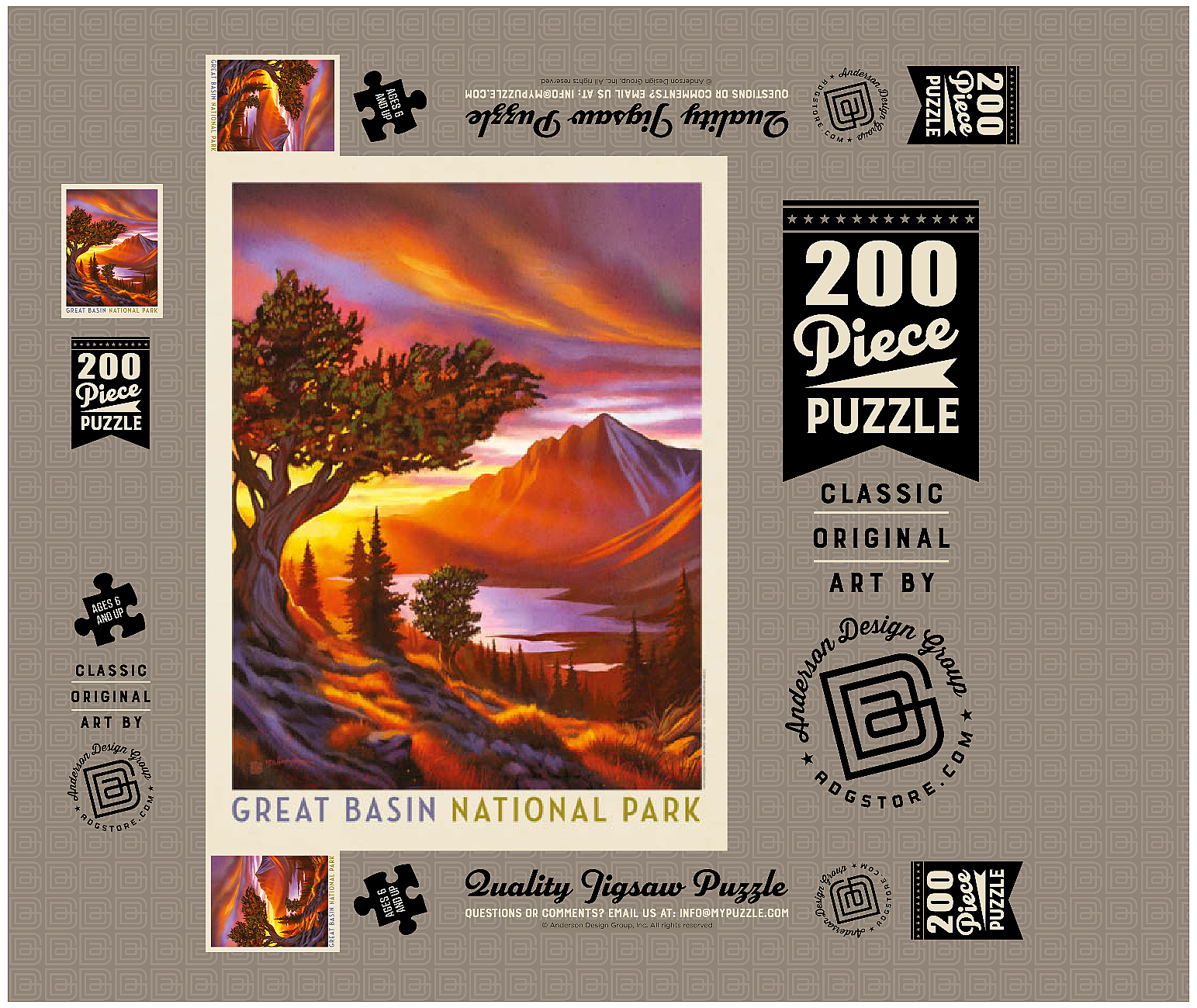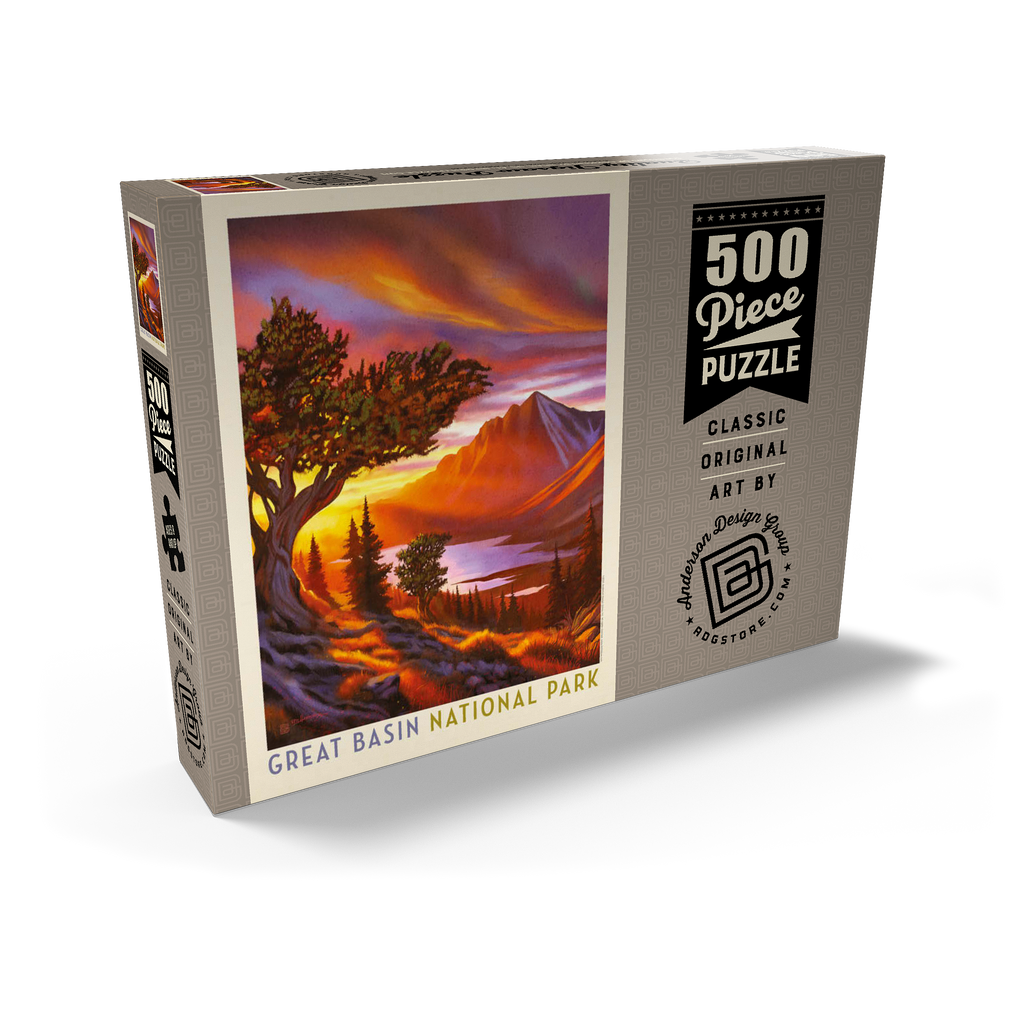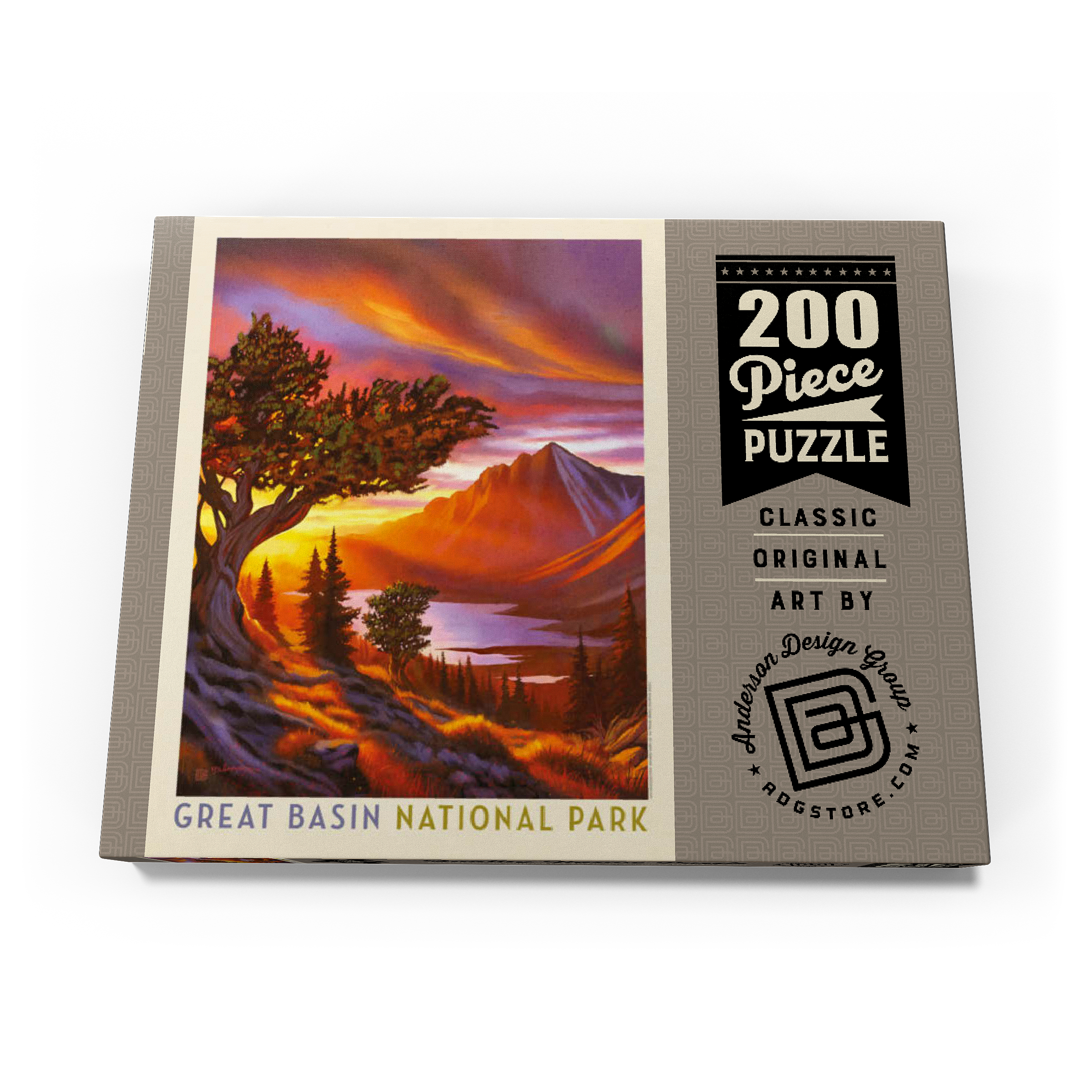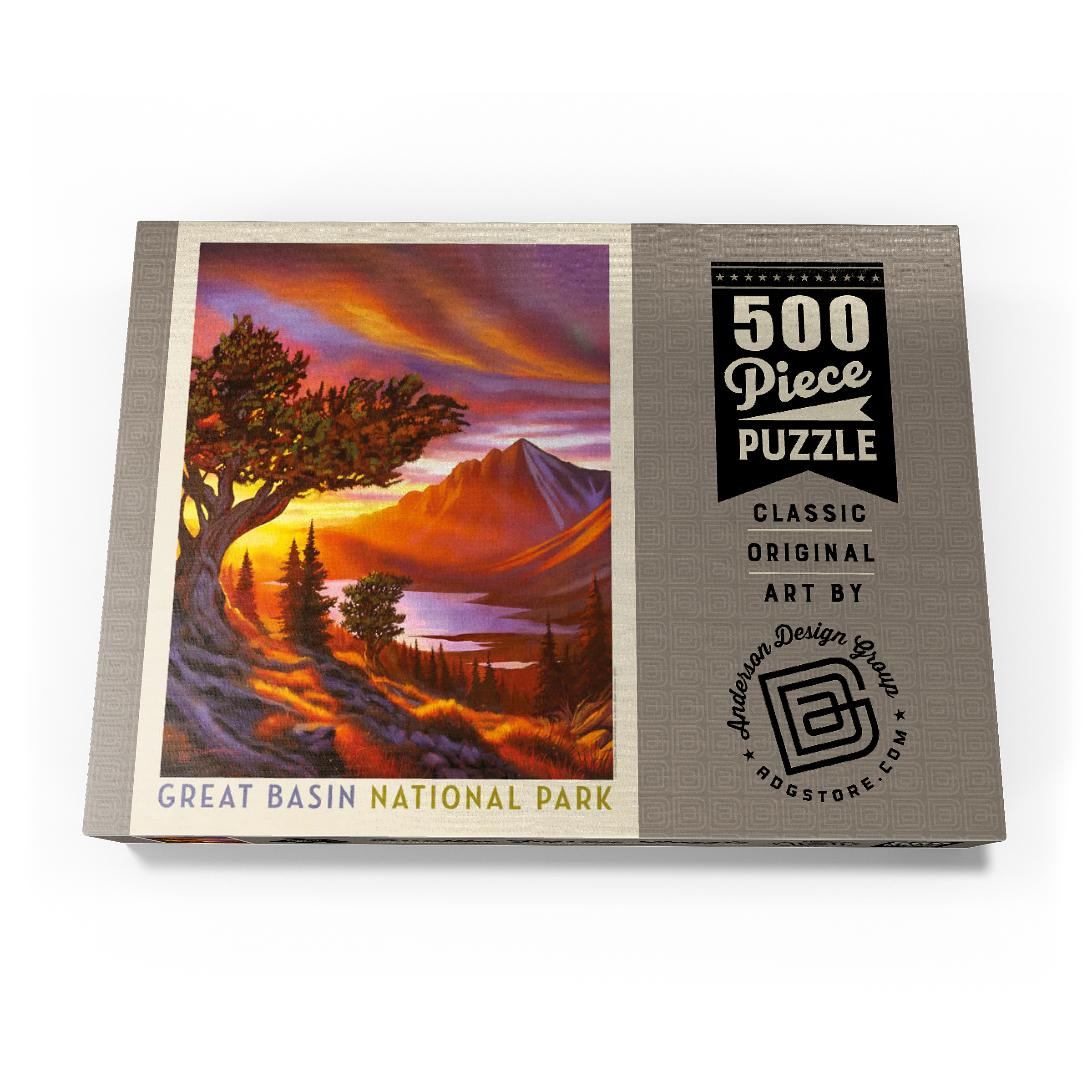 Der Great Basin National Park im Osten Nevadas ist ein verstecktes Juwel, das für seine zerklüfteten Berge, uralten Borstenkiefern und atemberaubenden Hochwüstenlandschaften bekannt ist. Diese farbenfrohe Illustration fängt die natürliche Schönheit des Parks bei Sonnenuntergang ein, wenn der Himmel in feurigen Orange-, Rot- und Violetttönen erstrahlt. Im Vordergrund erhebt sich eine verwitterte Borstenkiefer - die älteste lebende Baumart der Welt - mit Blick auf einen Bergsee, in dem sich die leuchtenden Farben des Himmels spiegeln. In der Ferne erhebt sich der Wheeler Peak, einer der höchsten Berge Nevadas, dessen schneebedeckter Gipfel mit dem warmen Licht der untergehenden Sonne kontrastiert. Die abwechslungsreiche Landschaft des Great Basin National Park reicht von Wüstentälern über üppige Wälder bis hin zu von Gletschern geformten Gipfeln und bietet unzählige Möglichkeiten zum Wandern, zur Sternenbeobachtung und zur Beobachtung von Wildtieren. Der Park beherbergt auch die faszinierenden Lehman Caves mit ihren verschlungenen Kalksteinformationen, die das ganze Jahr über Entdecker anziehen. Diese Szene verdeutlicht die friedliche Einsamkeit und die atemberaubenden Ausblicke, die den Great Basin National Park zu einem Paradies für Abenteurer und Naturliebhaber machen. Von den uralten Wäldern bis hin zu den klaren Bergseen bietet der Park eine perfekte Flucht in eine der vielfältigsten und ruhigsten Landschaften des amerikanischen Westens.