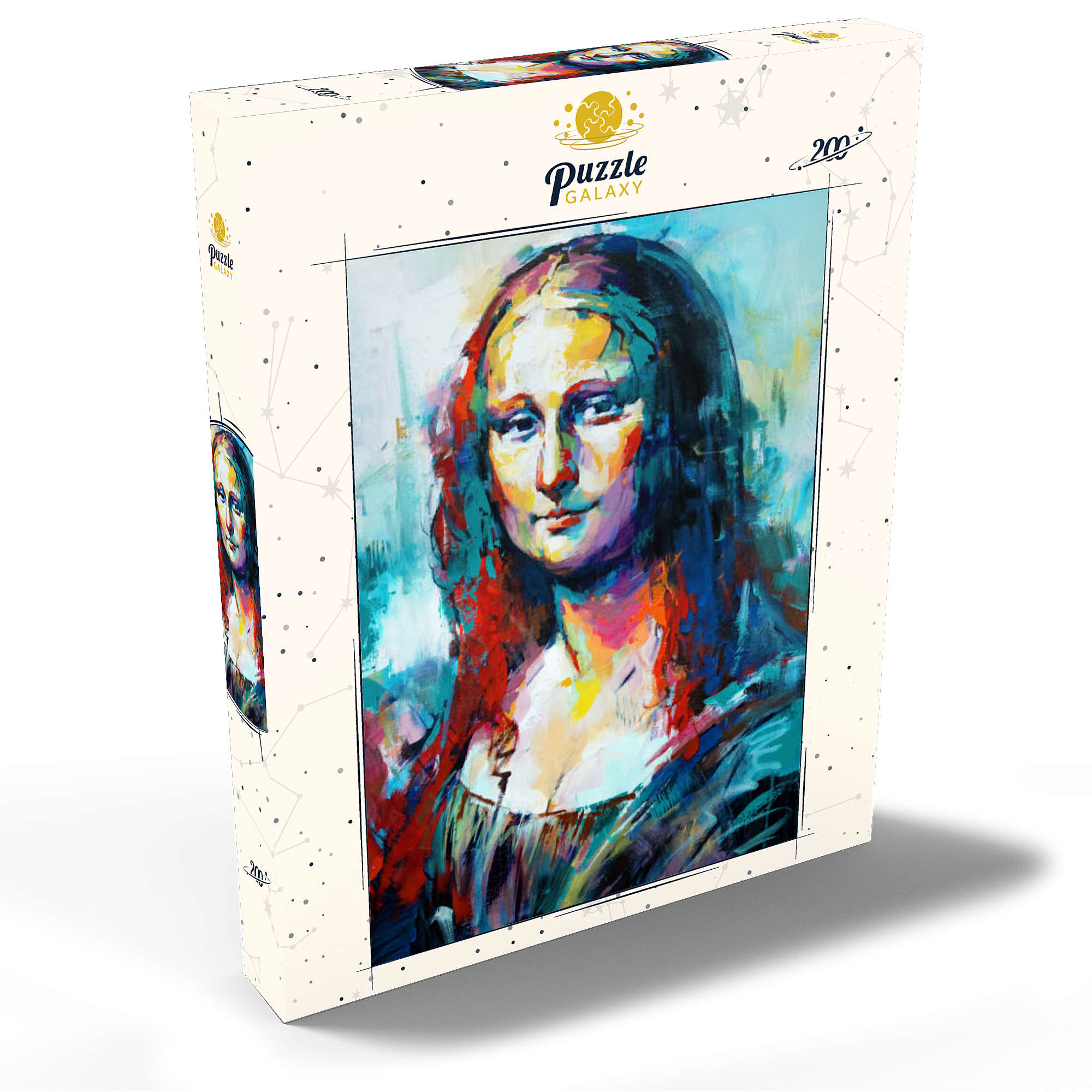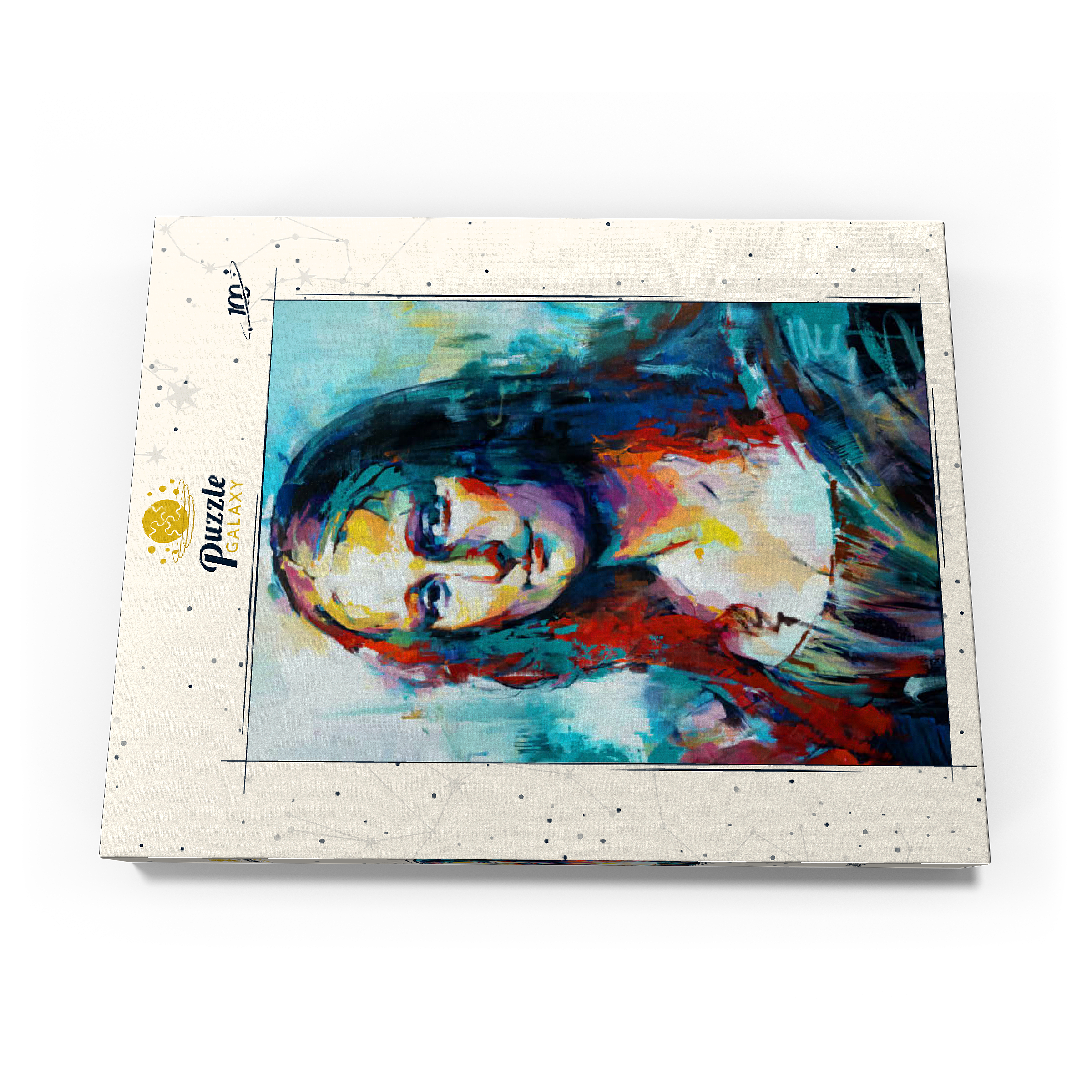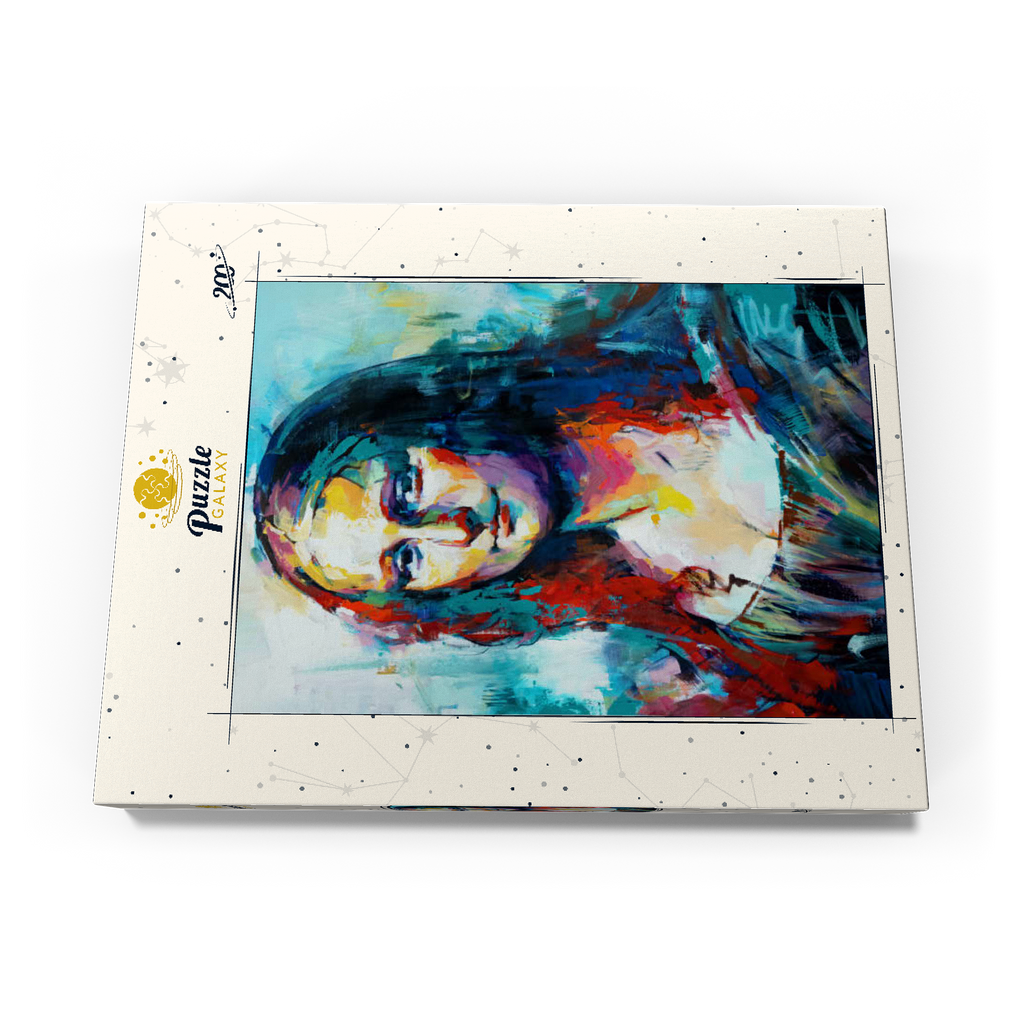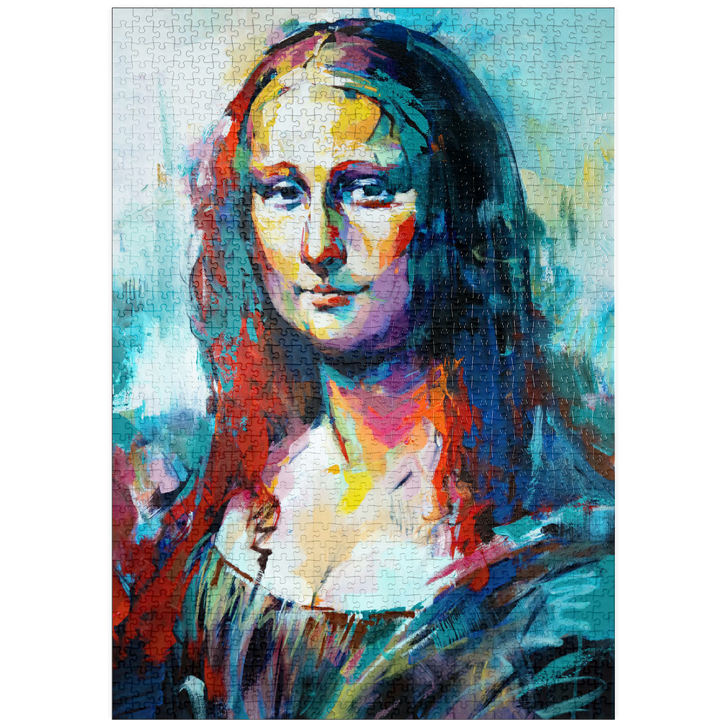 Dieses auffällige Porträt interpretiert ein klassisches Motiv in einem kühnen, abstrakten expressionistischen Stil neu, der sich durch lebendige Pinselstriche und kräftige, vielschichtige Farben auszeichnet. Das Gesicht der Figur verschmilzt warme Farbtöne wie Purpur, Gold und Orange mit kühlen Blau-, Türkis- und Violetttönen und schafft so einen starken emotionalen Kontrast und eine moderne Neuinterpretation. Der Hintergrund ist locker gemalt, was den geheimnisvollen Ausdruck des Motivs unterstreicht und gleichzeitig ein Gefühl von künstlerischer Freiheit und Bewegung vermittelt. Dieser zeitgenössische Ansatz fängt sowohl Intensität als auch Schönheit ein und ist ideal für Kunstliebhaber, die moderne Adaptionen zeitloser Figuren schätzen. Die ausdrucksstarke Farbpalette und die strukturierte Pinselführung machen dieses Werk zu einem herausragenden Akzent für jedes kunstorientierte Interieur.