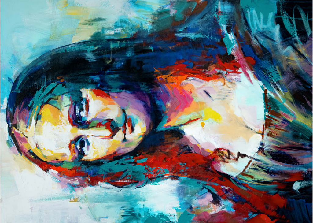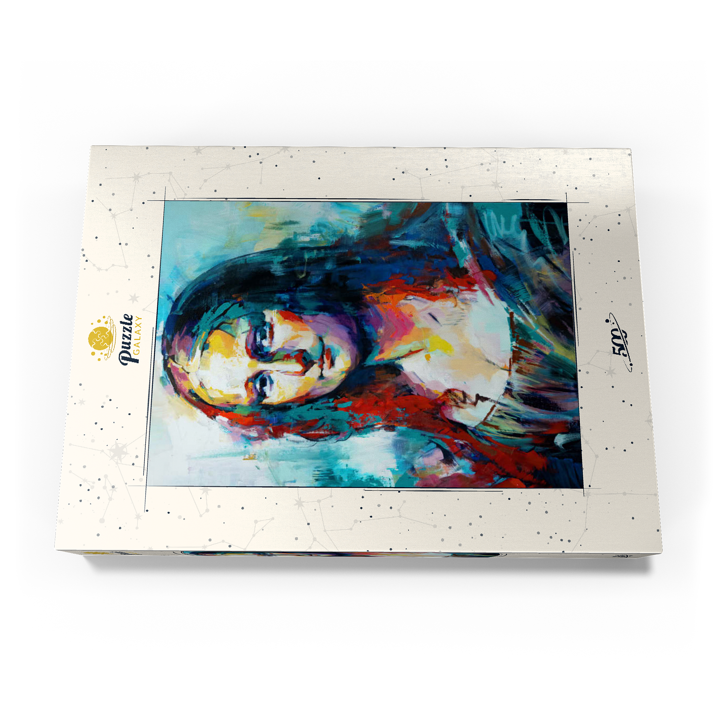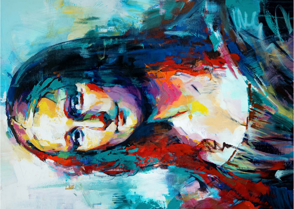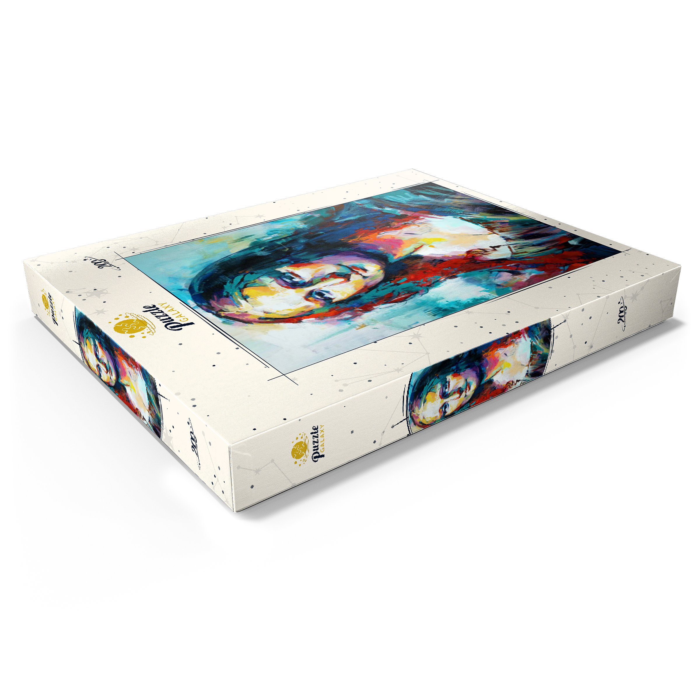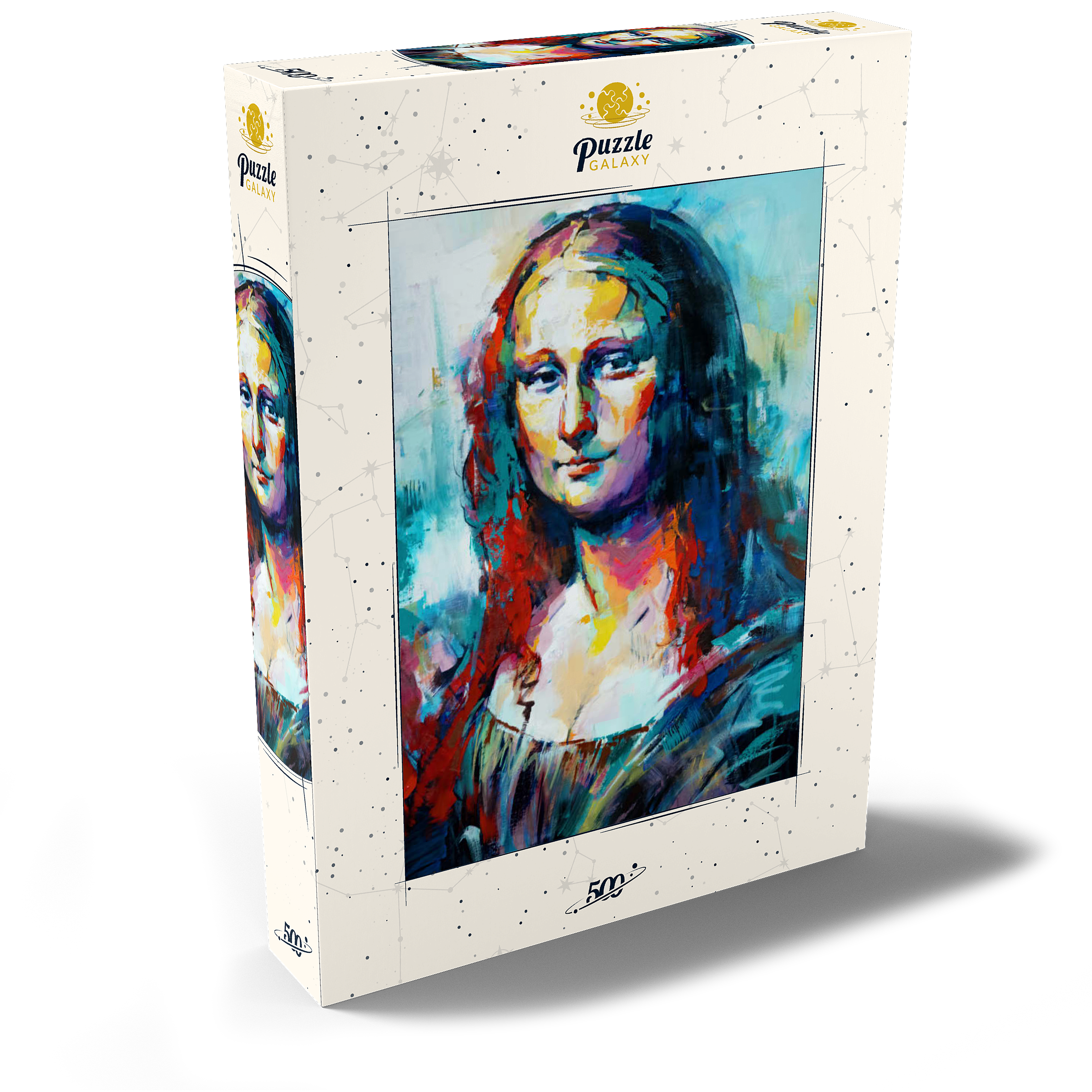 Dieses auffällige Porträt interpretiert ein klassisches Motiv in einem kühnen, abstrakten expressionistischen Stil neu, der sich durch lebendige Pinselstriche und kräftige, vielschichtige Farben auszeichnet. Das Gesicht der Figur verschmilzt warme Farbtöne wie Purpur, Gold und Orange mit kühlen Blau-, Türkis- und Violetttönen und schafft so einen starken emotionalen Kontrast und eine moderne Neuinterpretation. Der Hintergrund ist locker gemalt, was den geheimnisvollen Ausdruck des Motivs unterstreicht und gleichzeitig ein Gefühl von künstlerischer Freiheit und Bewegung vermittelt. Dieser zeitgenössische Ansatz fängt sowohl Intensität als auch Schönheit ein und ist ideal für Kunstliebhaber, die moderne Adaptionen zeitloser Figuren schätzen. Die ausdrucksstarke Farbpalette und die strukturierte Pinselführung machen dieses Werk zu einem herausragenden Akzent für jedes kunstorientierte Interieur.