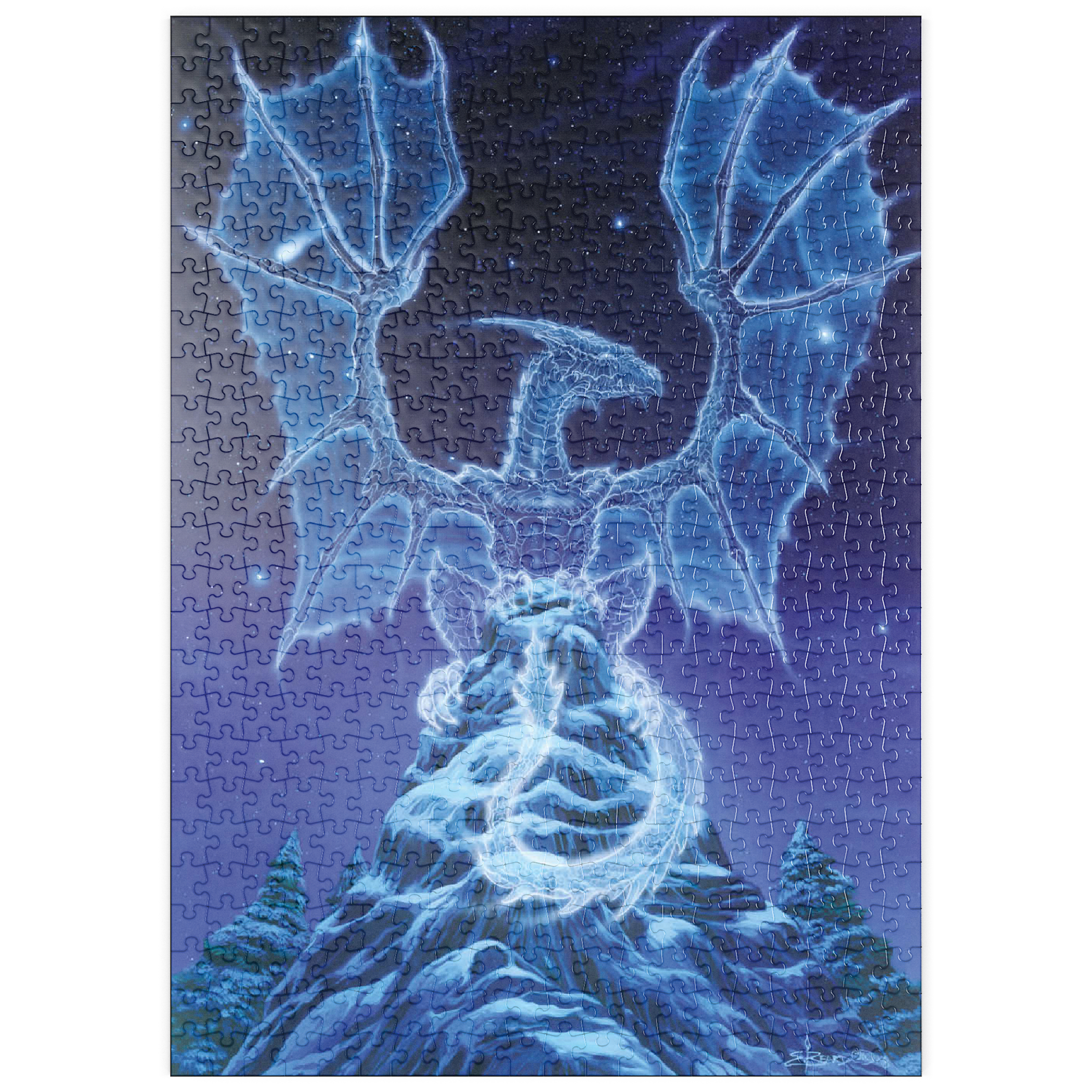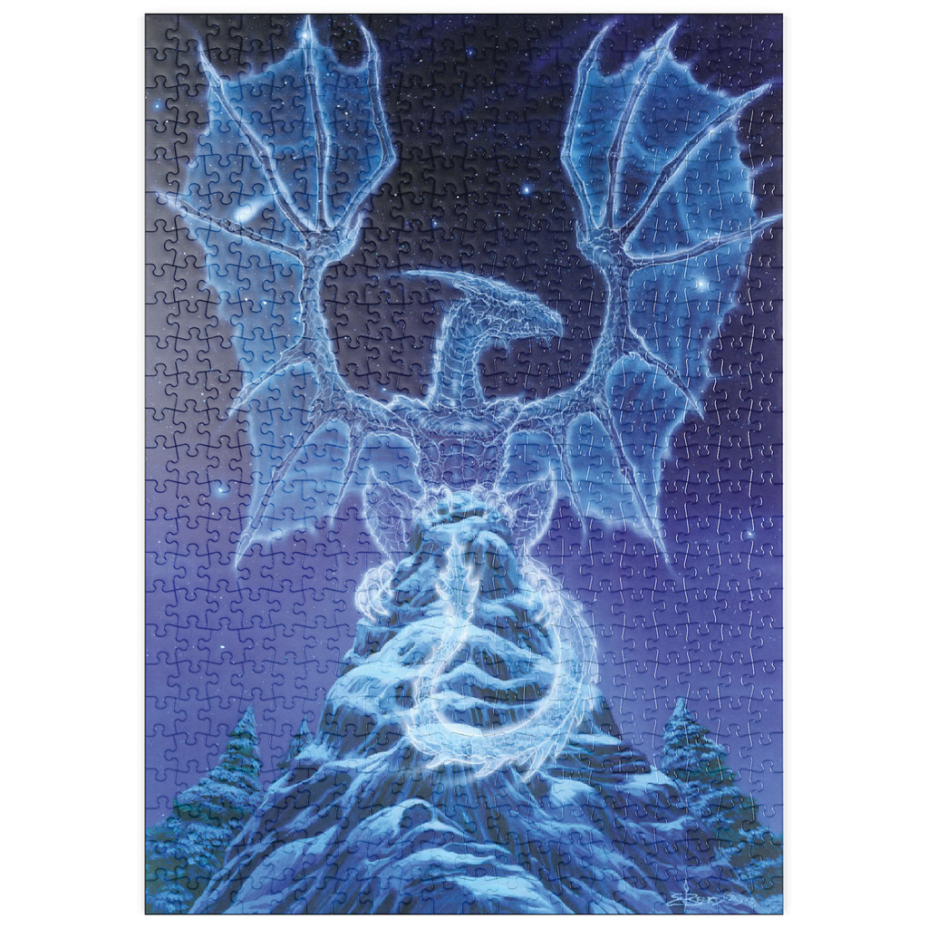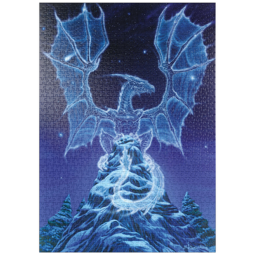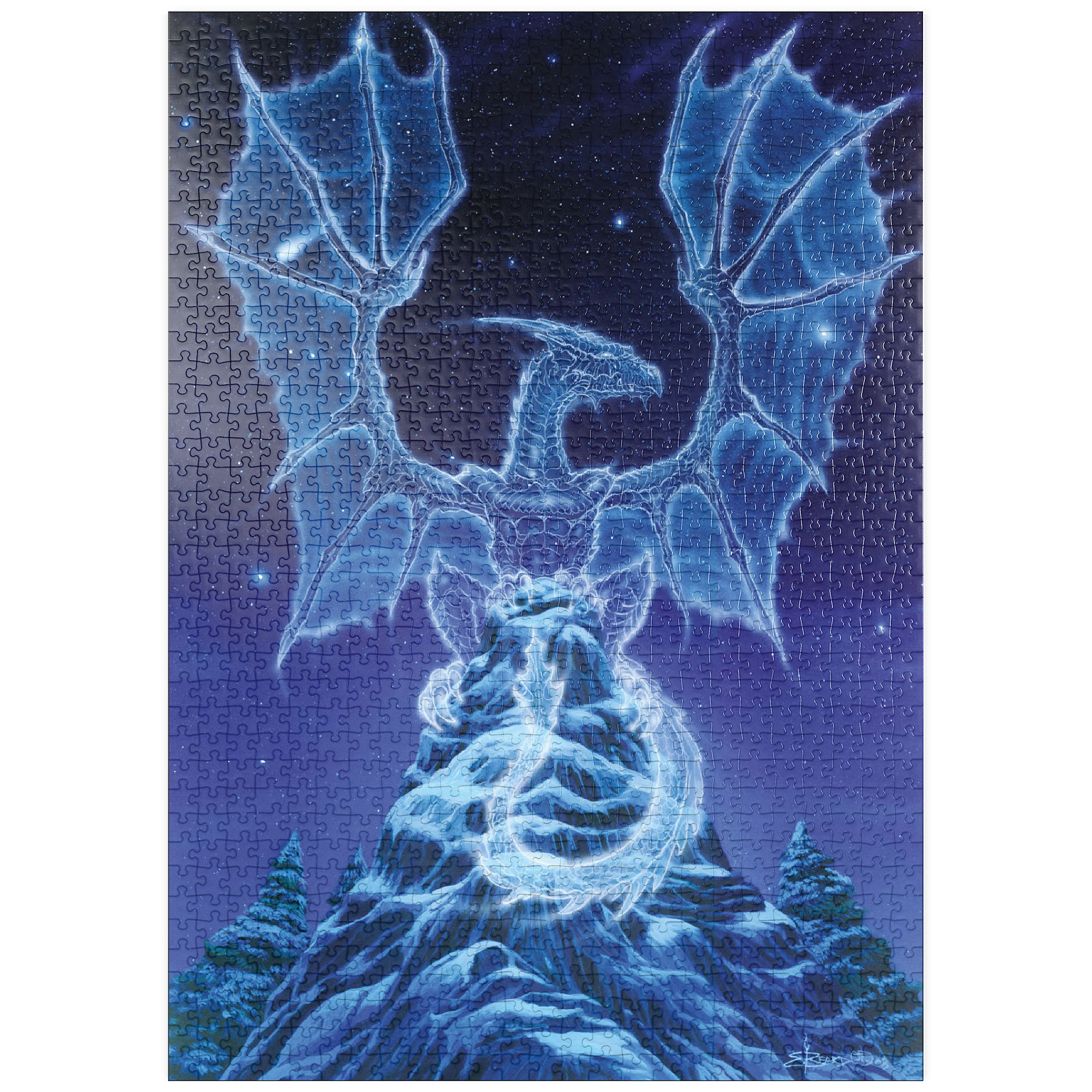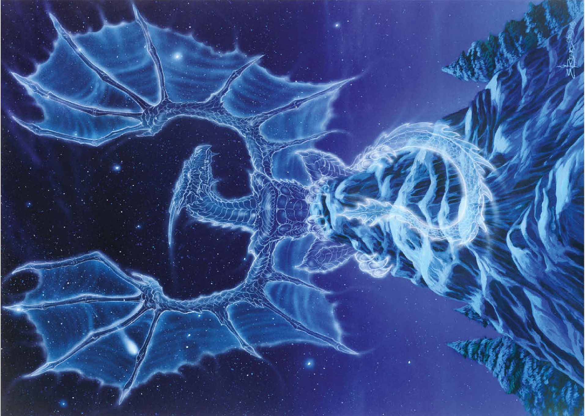 Der Drachengeist des Winters erwacht in der frischen Luft der Wintersonnenwende. Ätherische Essenzen wirbeln in einem gespenstischen Nebel in Form eines Drachen zusammen und breiten ihre Flügel über den Mitternachtshimmel aus. Die Sterne leuchten hell und ein Komet zieht über den Himmel, während dieser stille Wächter wacht.