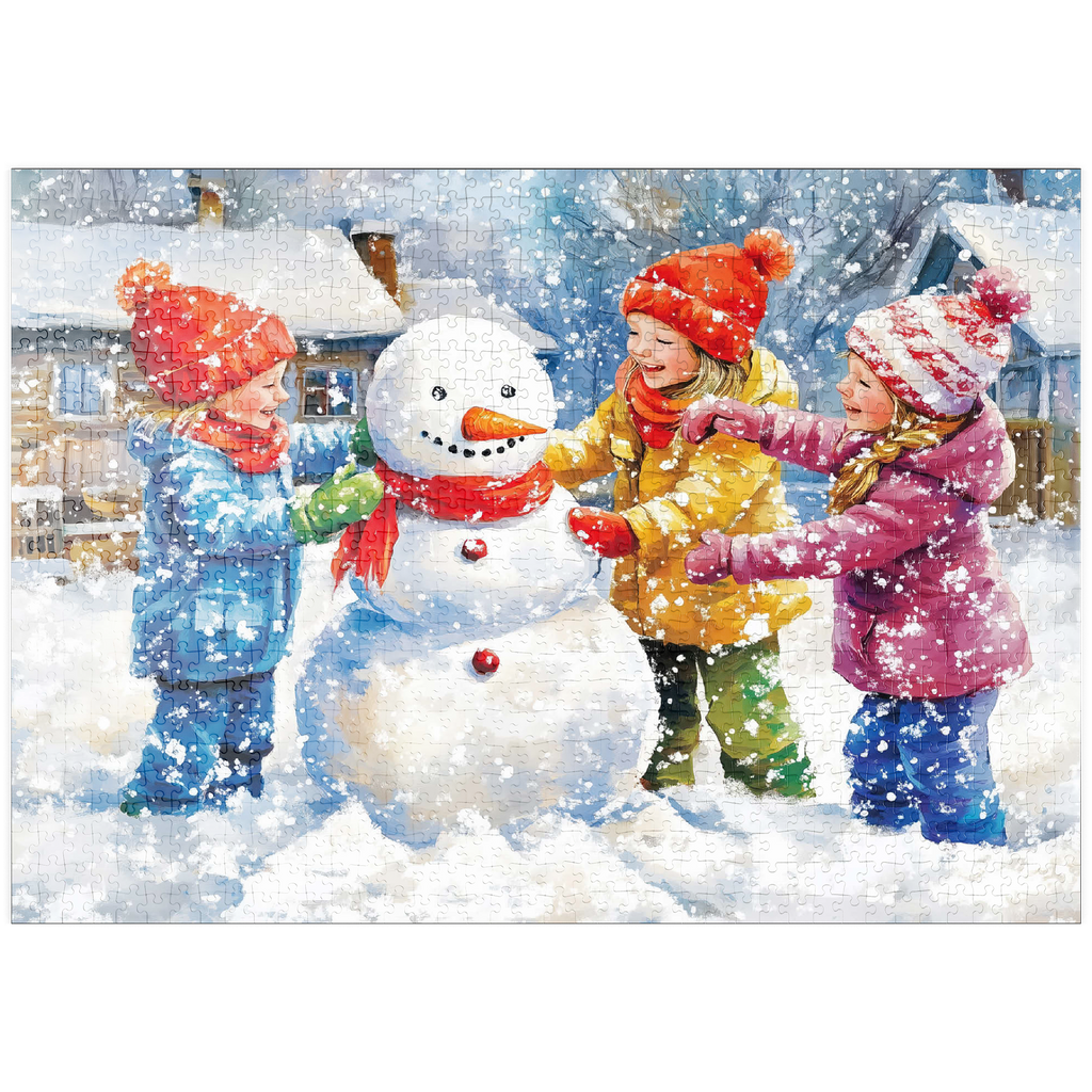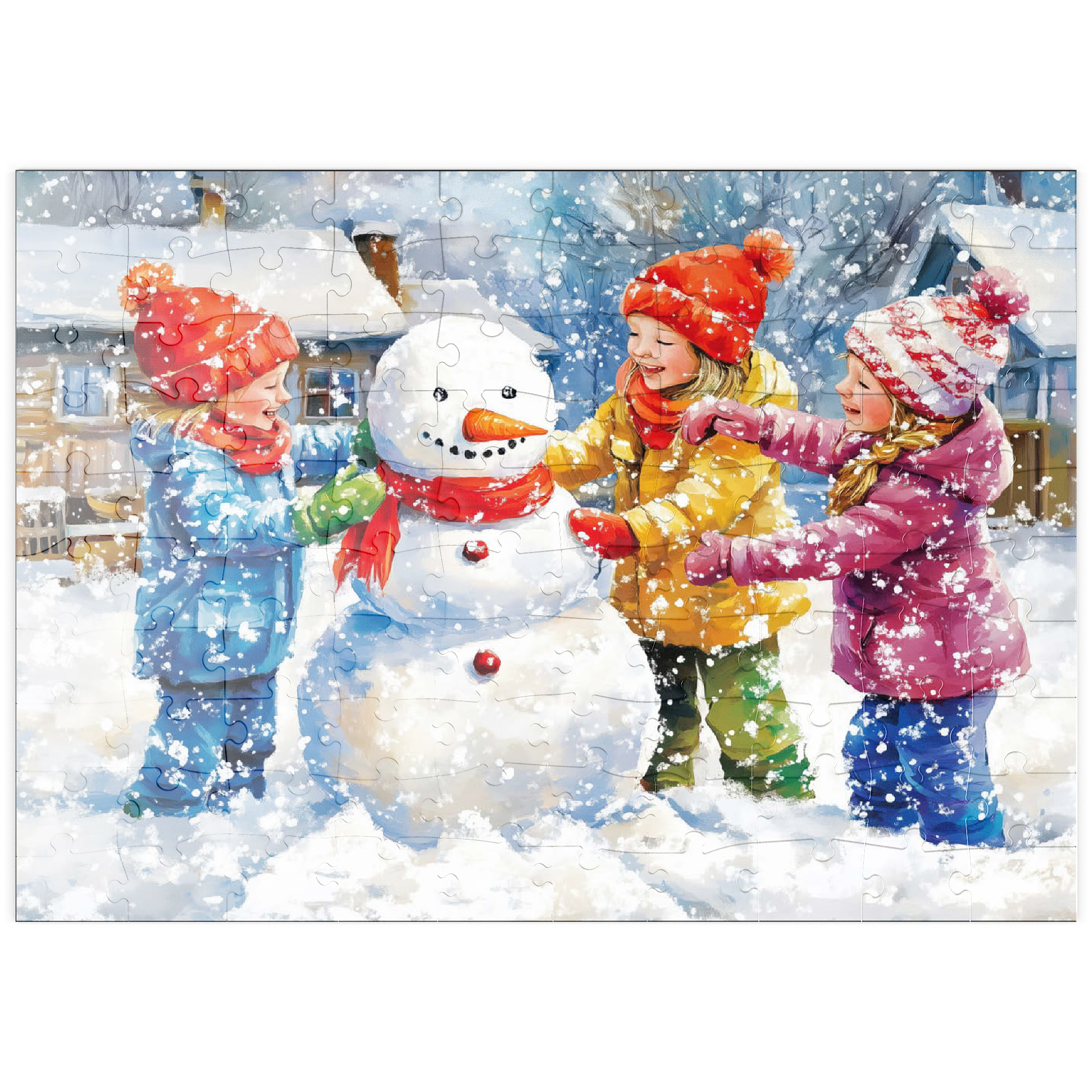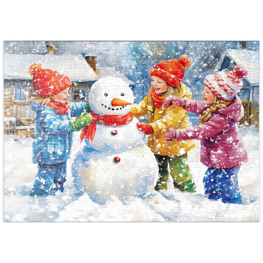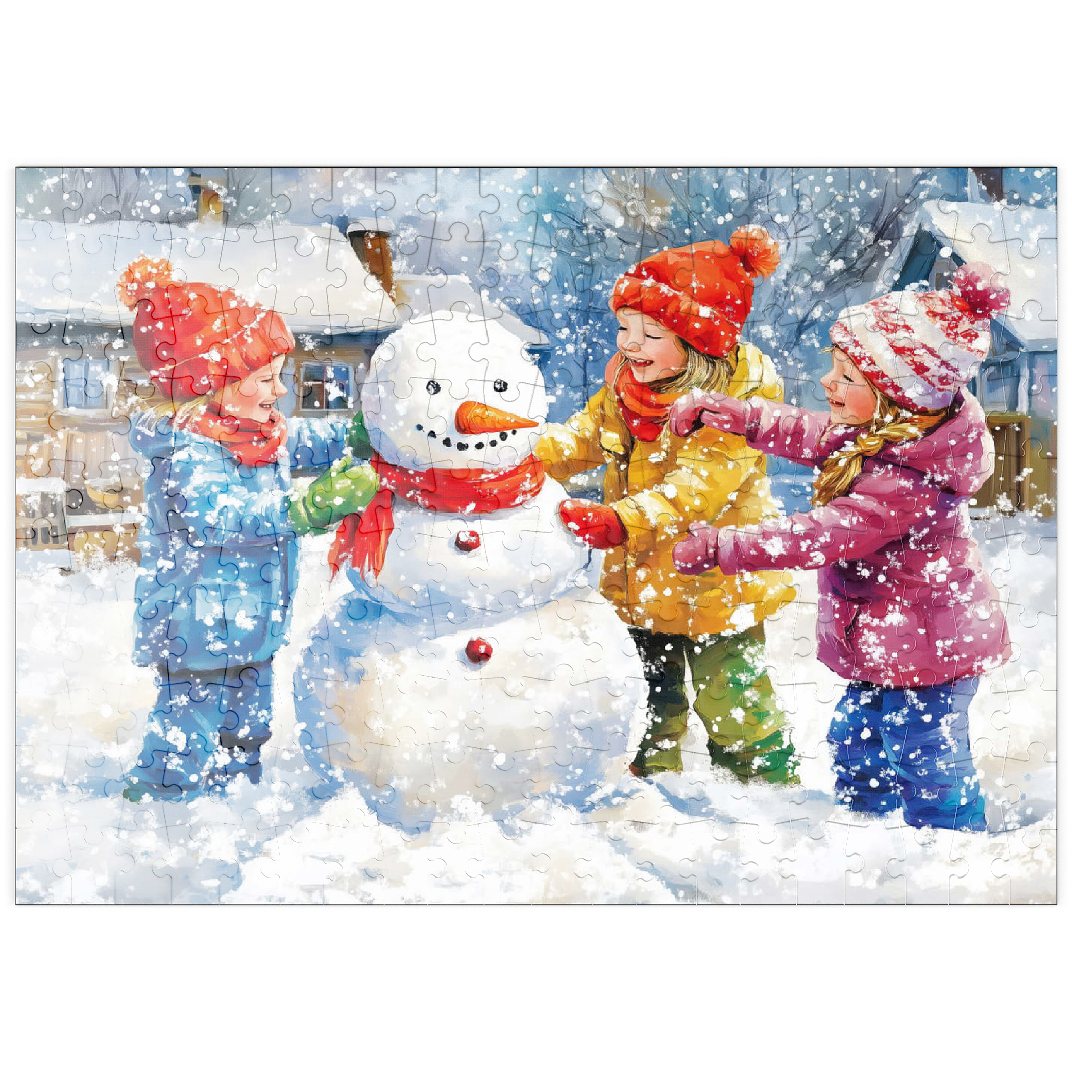 "Kinder dekorieren Schneemann im verschneiten Hinterhof" Puzzle