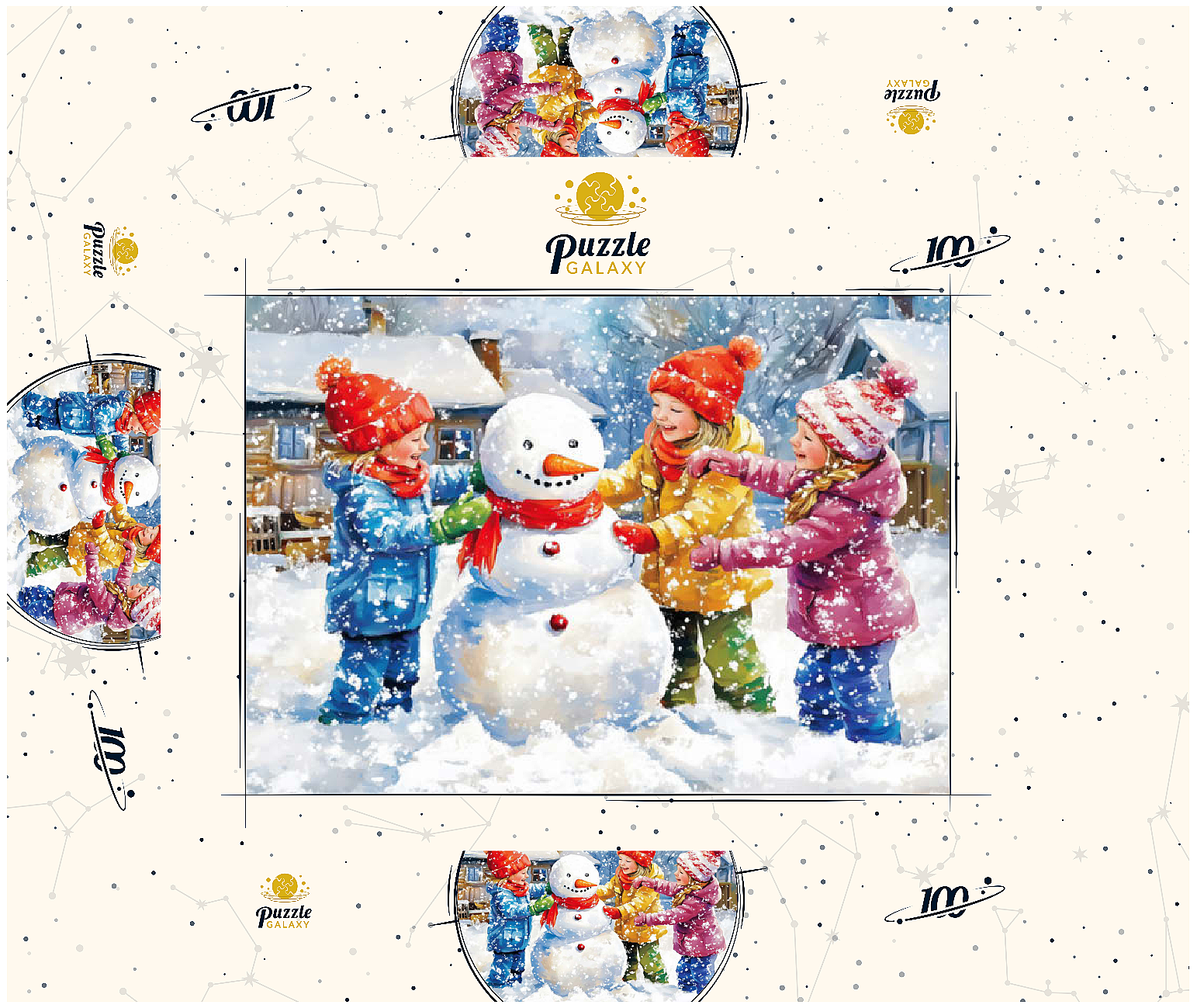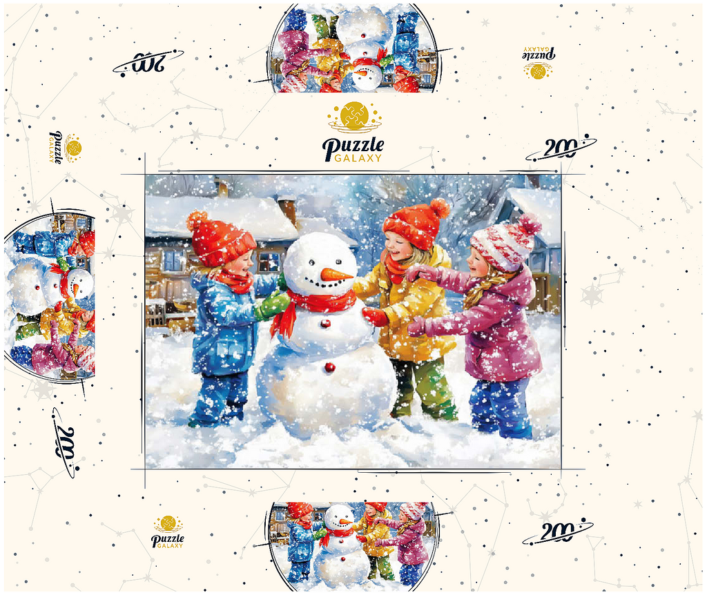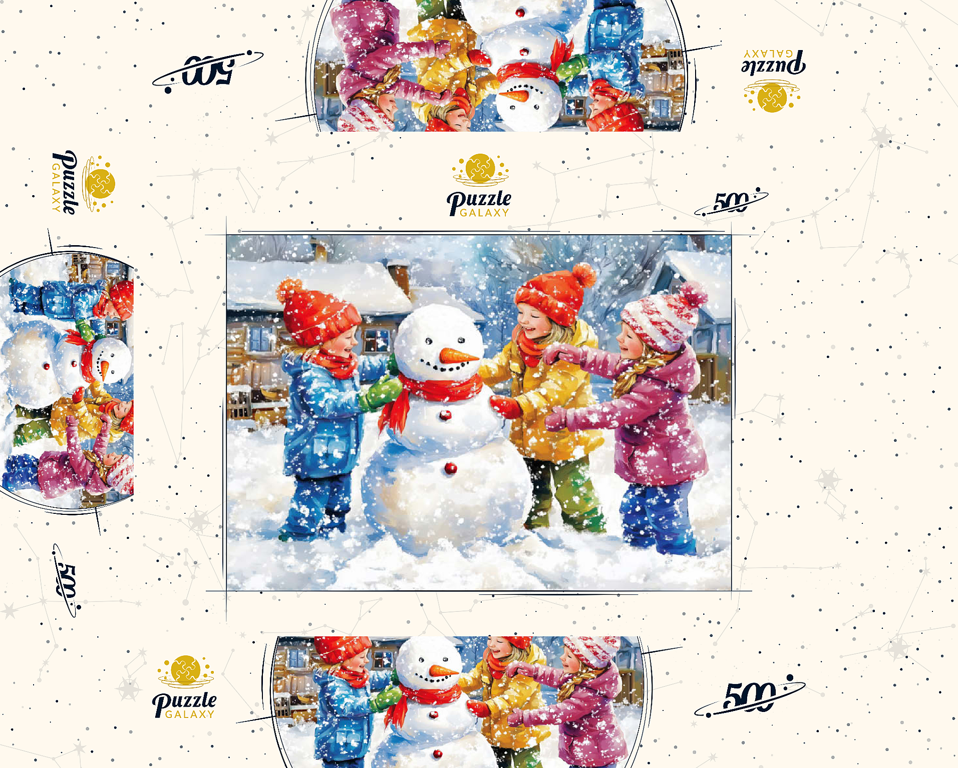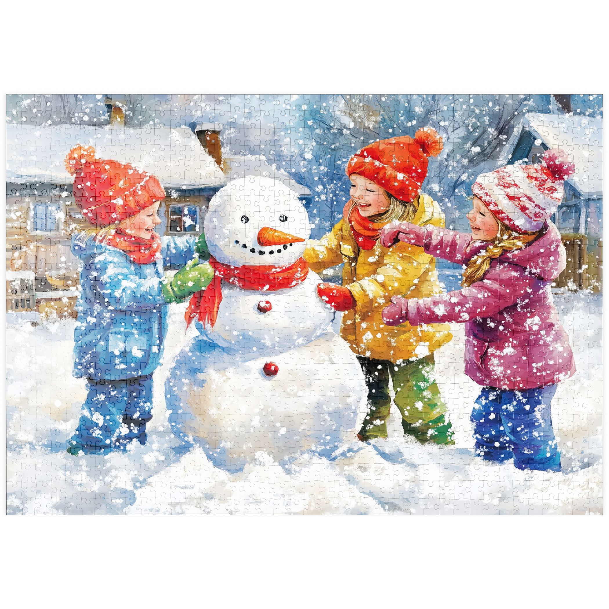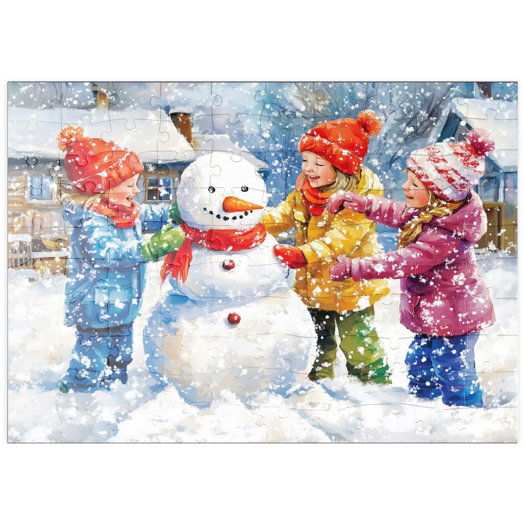 "Kinder dekorieren Schneemann im verschneiten Hinterhof" Puzzle