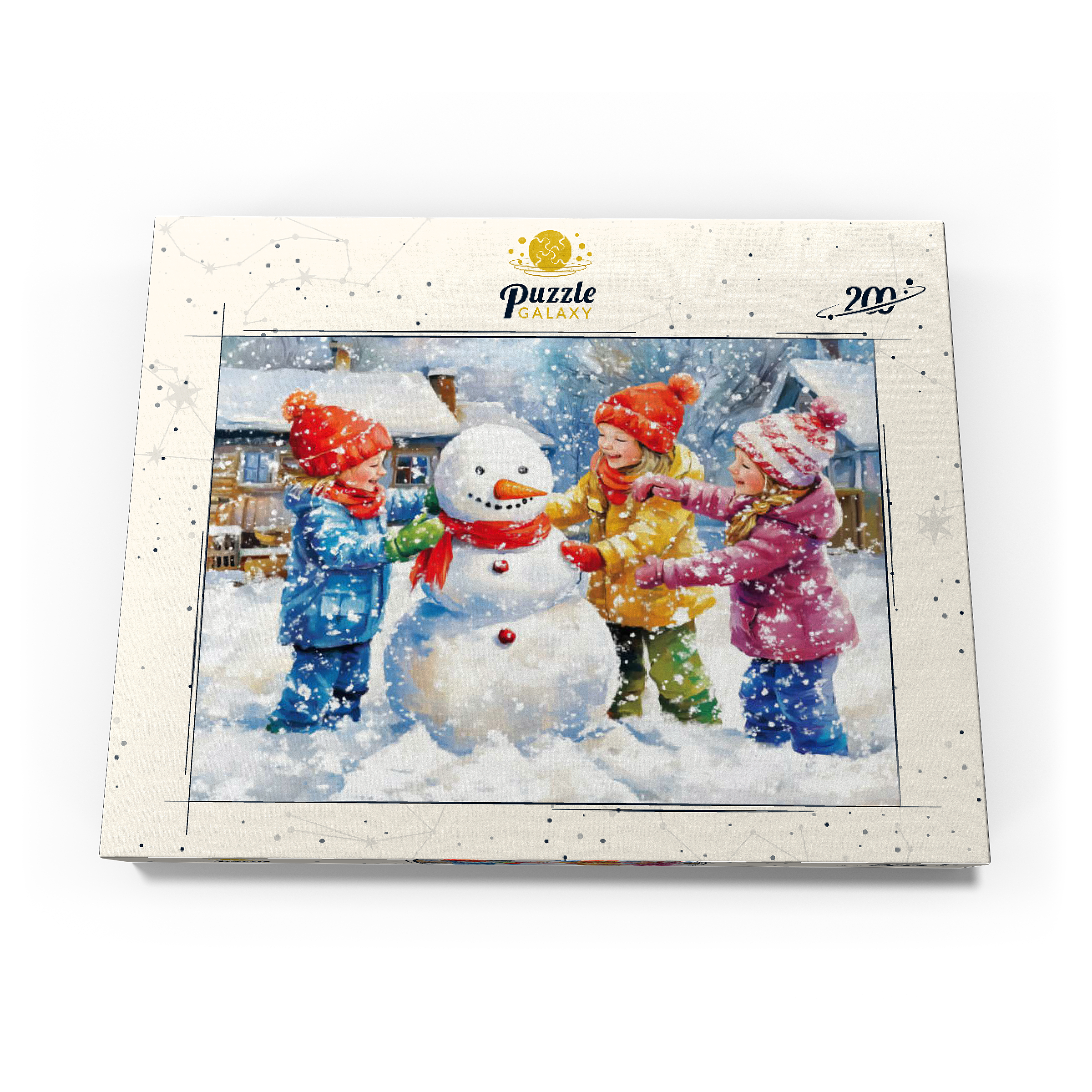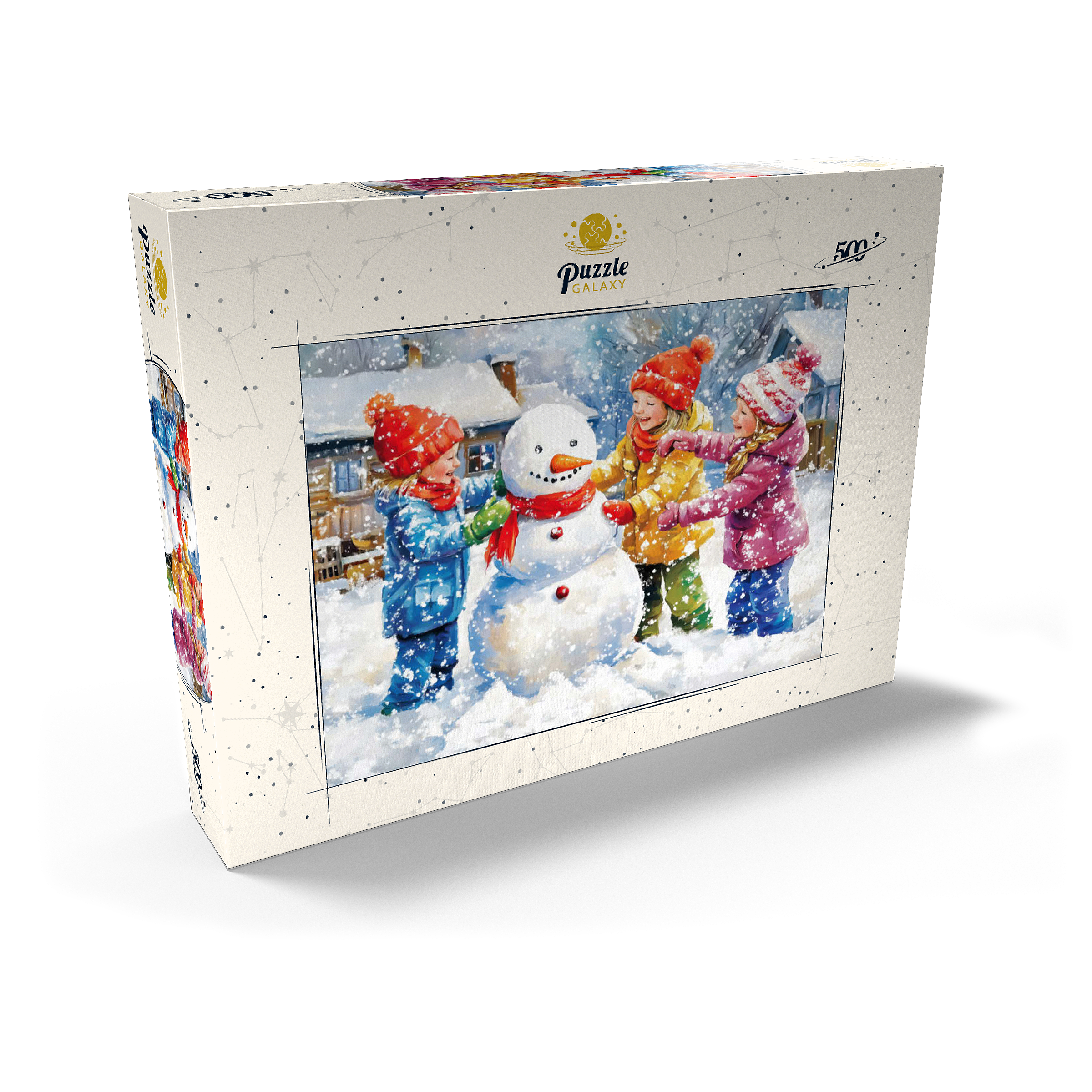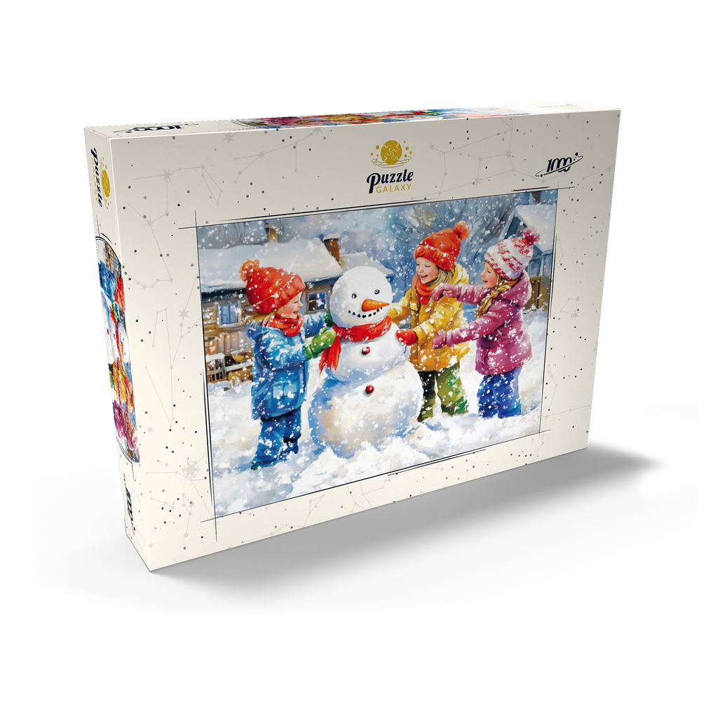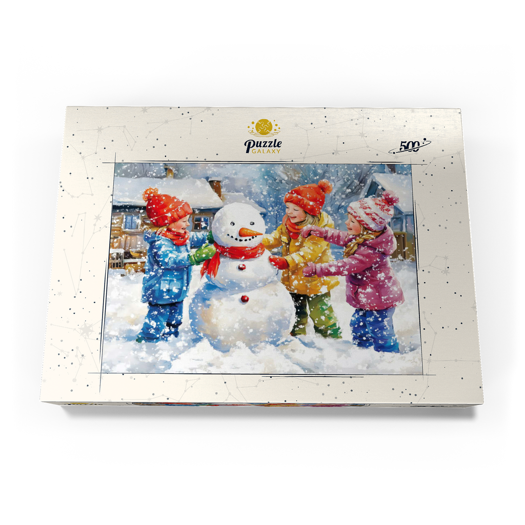 "Kinder dekorieren Schneemann im verschneiten Hinterhof" Puzzle