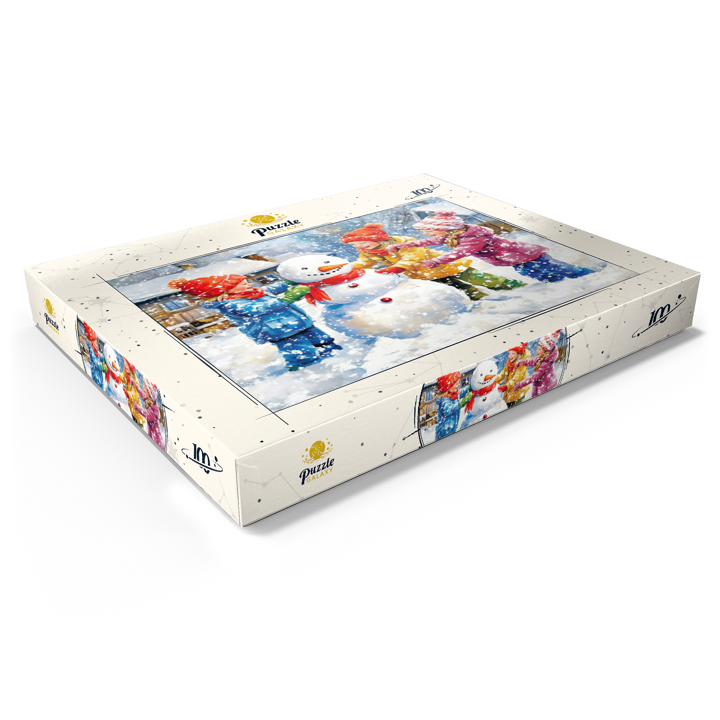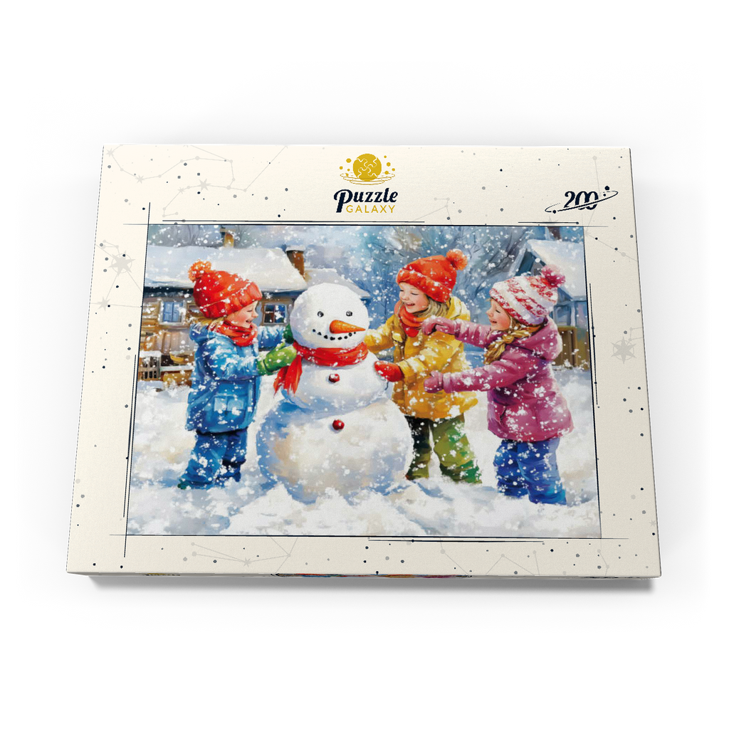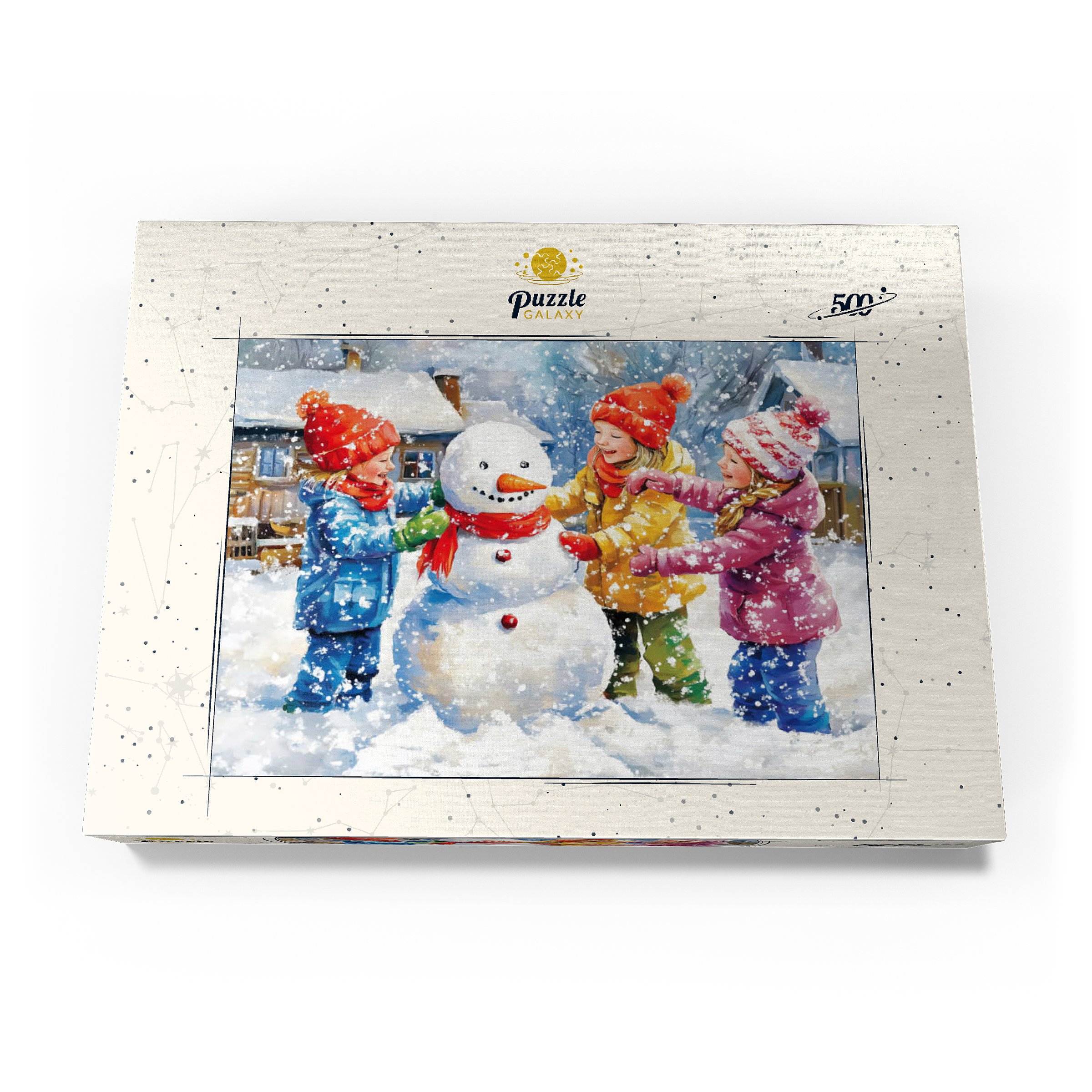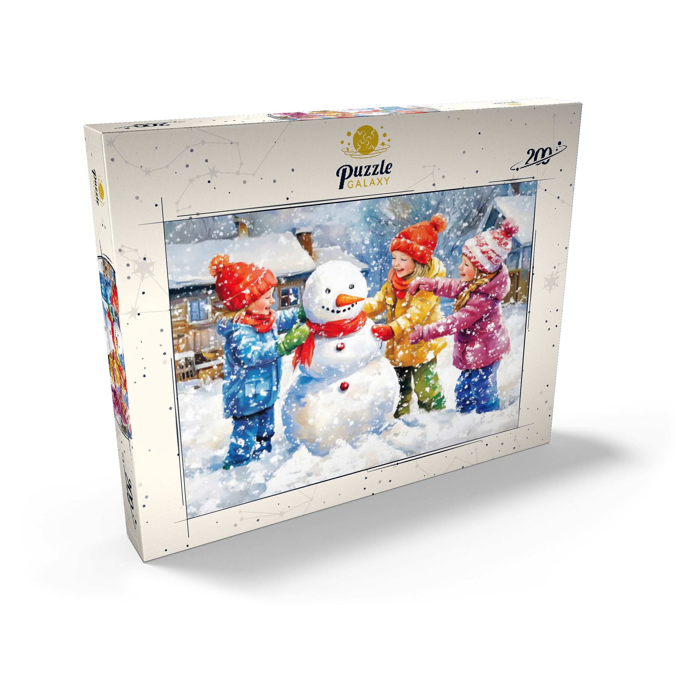 "Kinder dekorieren Schneemann im verschneiten Hinterhof" Puzzle