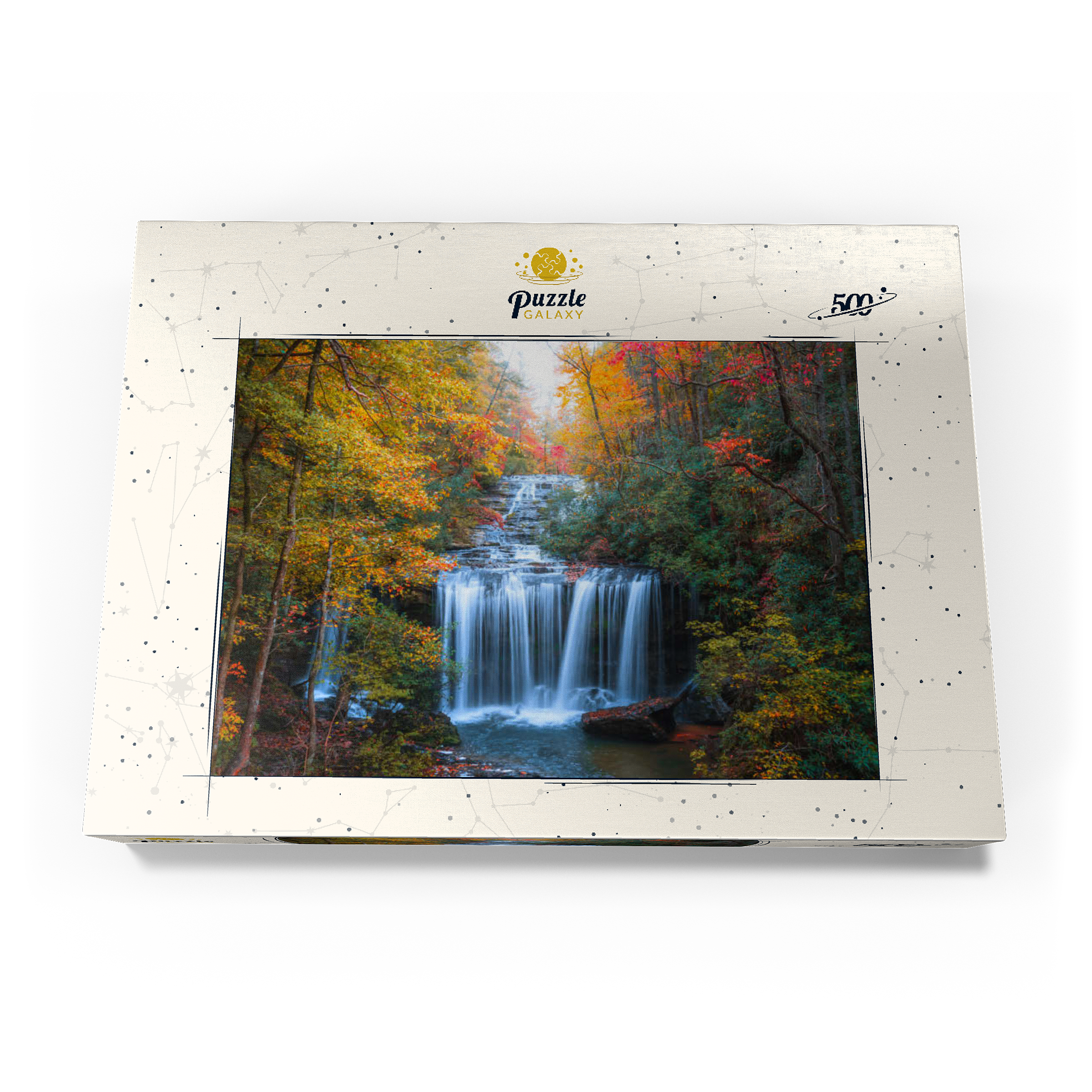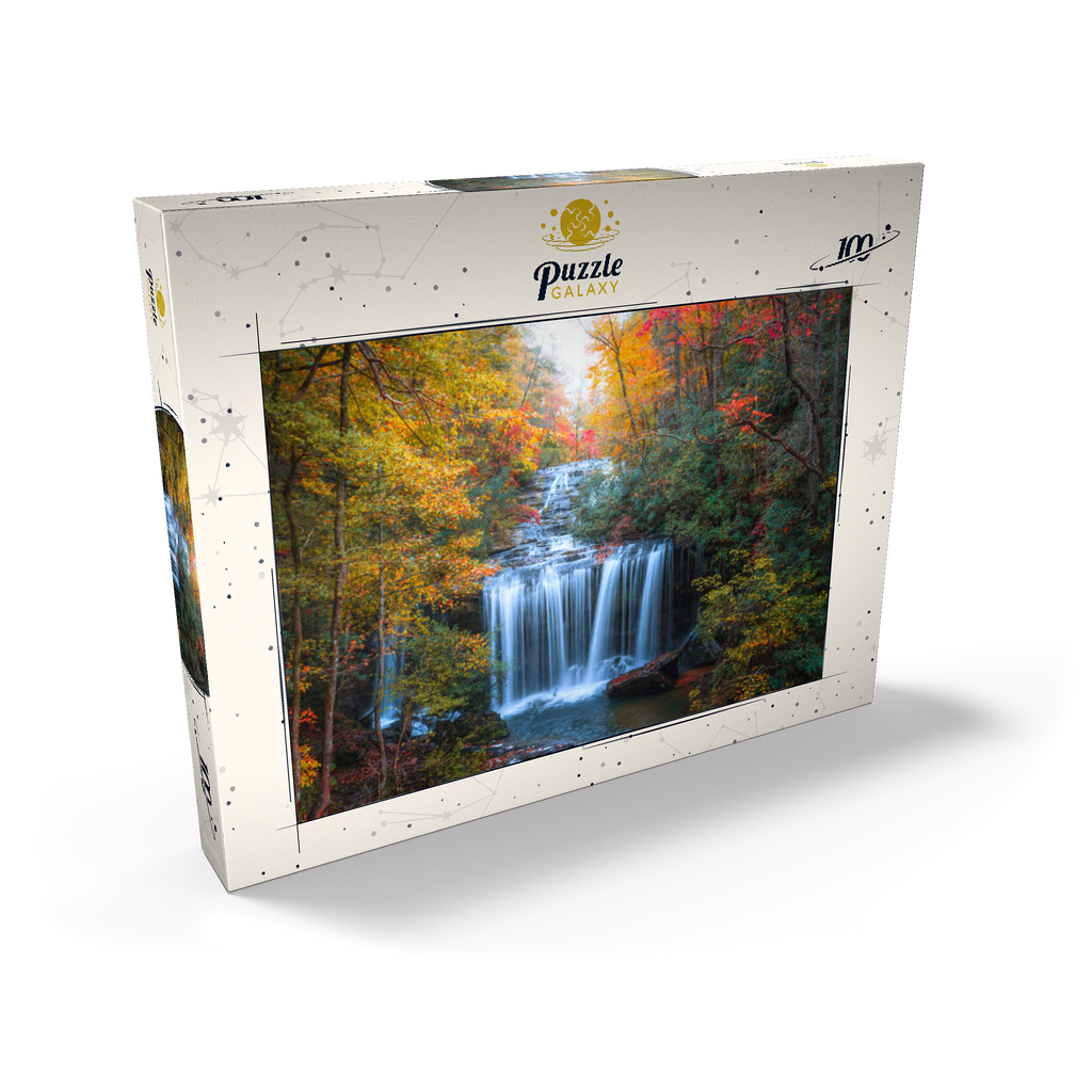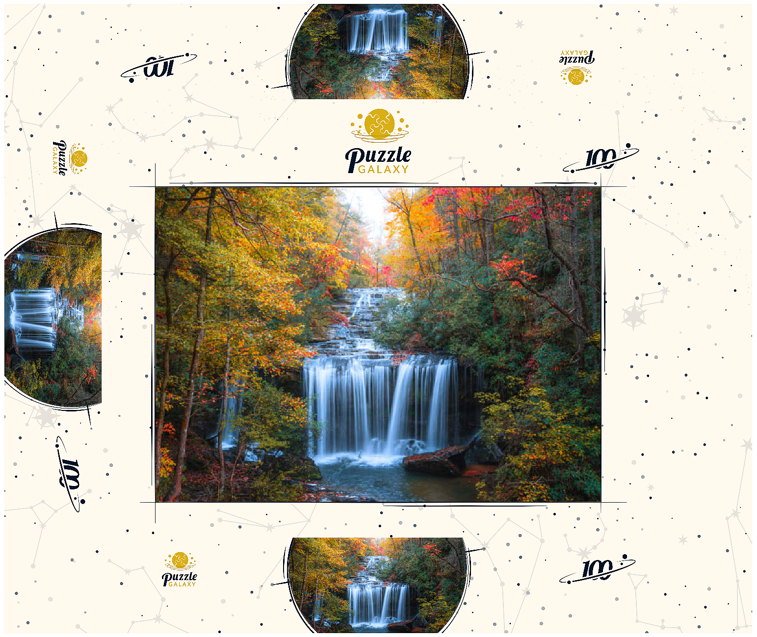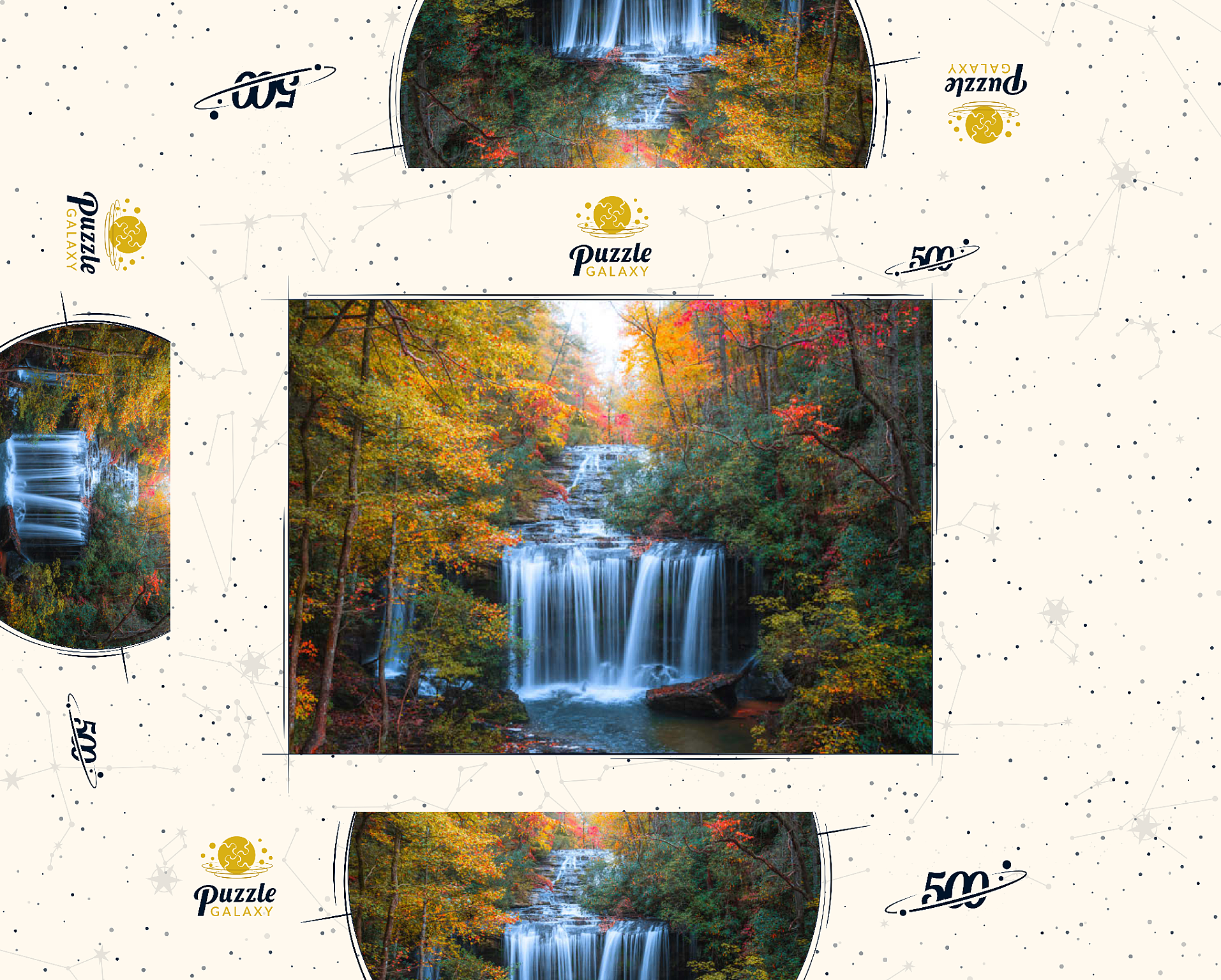 Herbstlicher Wasserfall, umgeben von buntem Laub