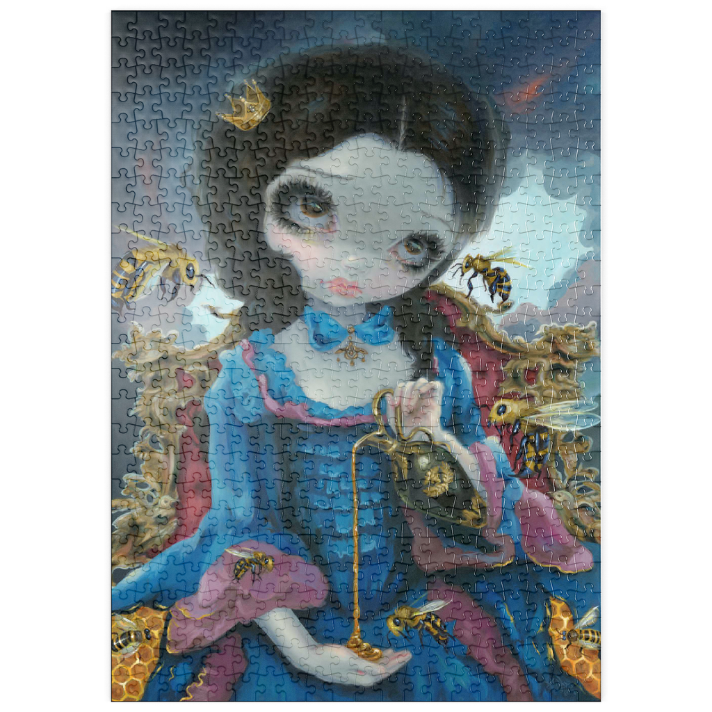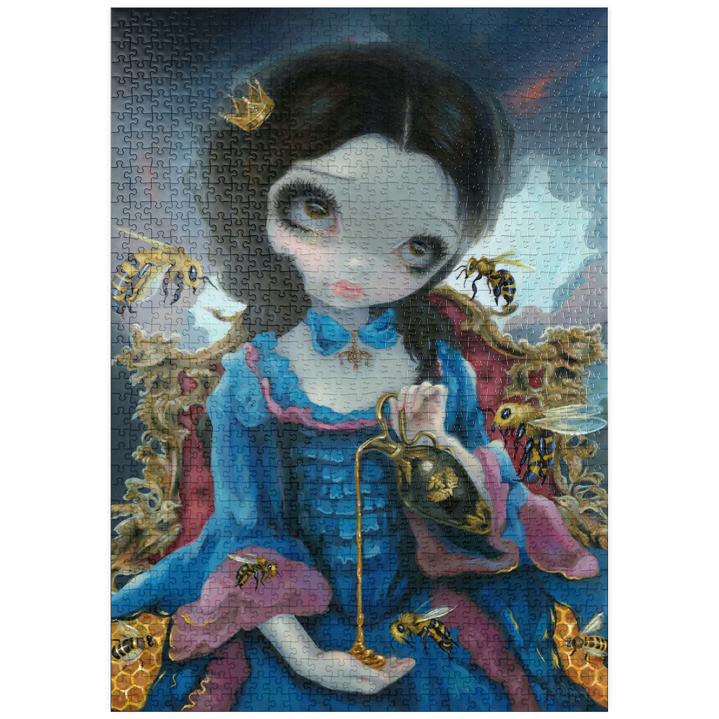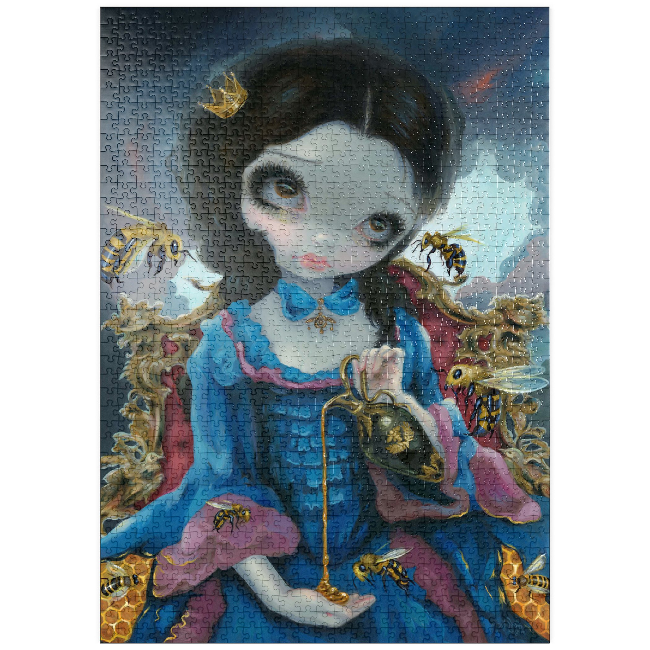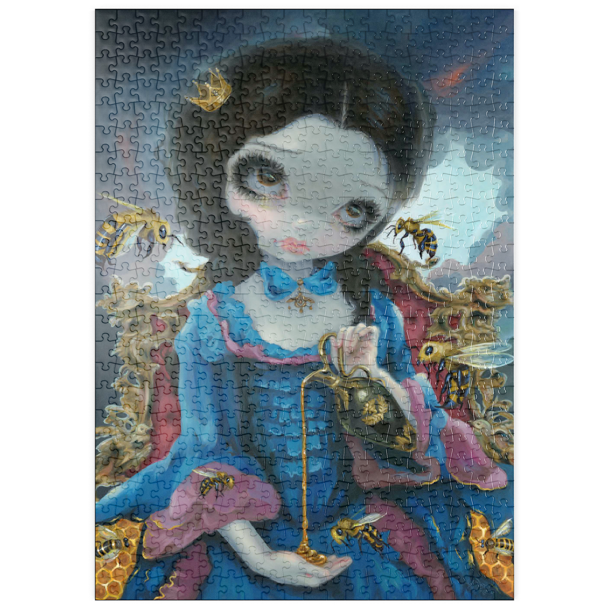 Enträtseln Sie die königliche „Königin der Bienen“! Setzen Sie ein atemberaubendes Rokoko-Porträt einer Königin zusammen, umgeben von filigranen Bienendetails. Entdecken Sie historische Bezüge, darunter einen minoischen Bienenanhänger und Napoleons „Biene mit Lorbeeren“. Setzen Sie dieses elegante und symbolträchtige Puzzle zusammen!