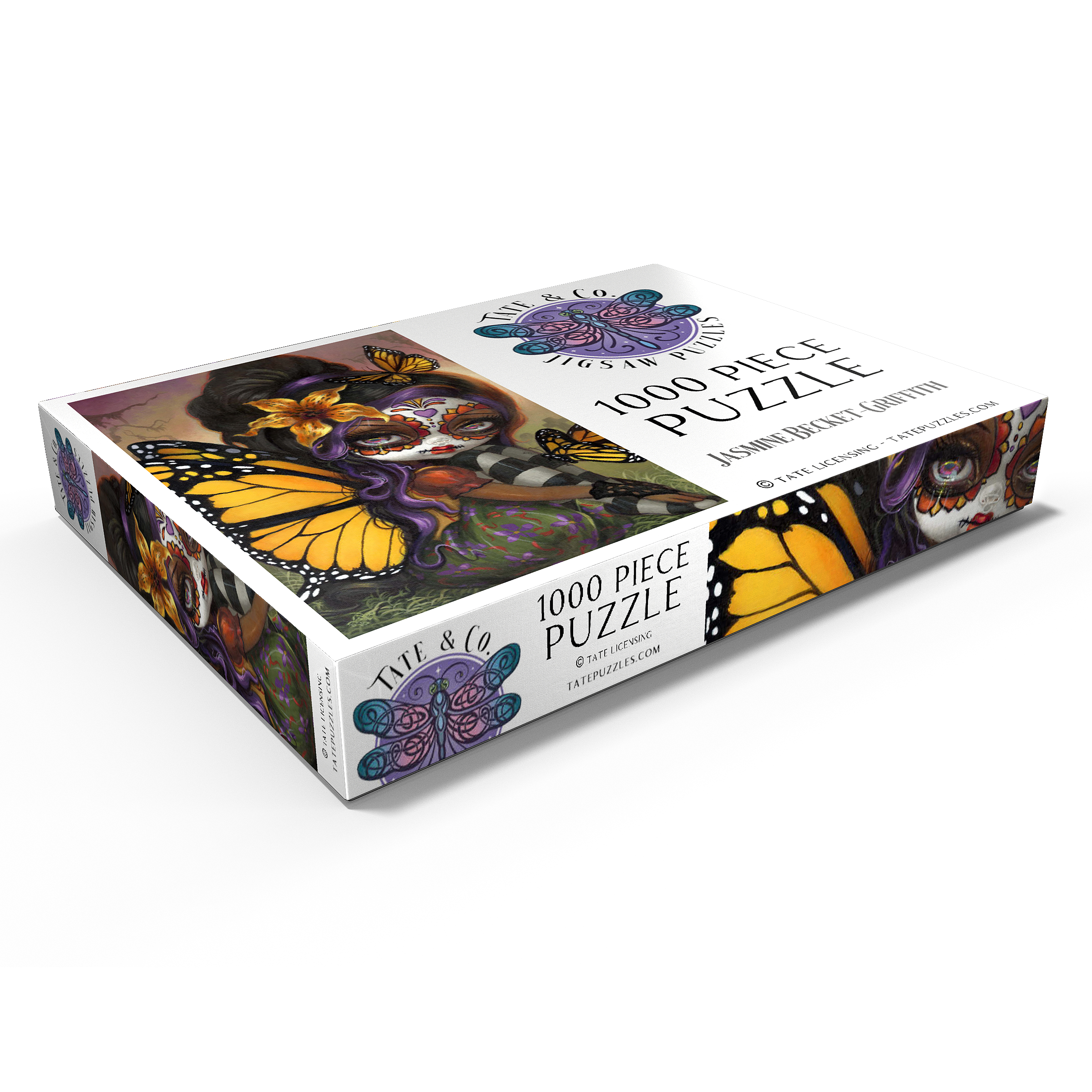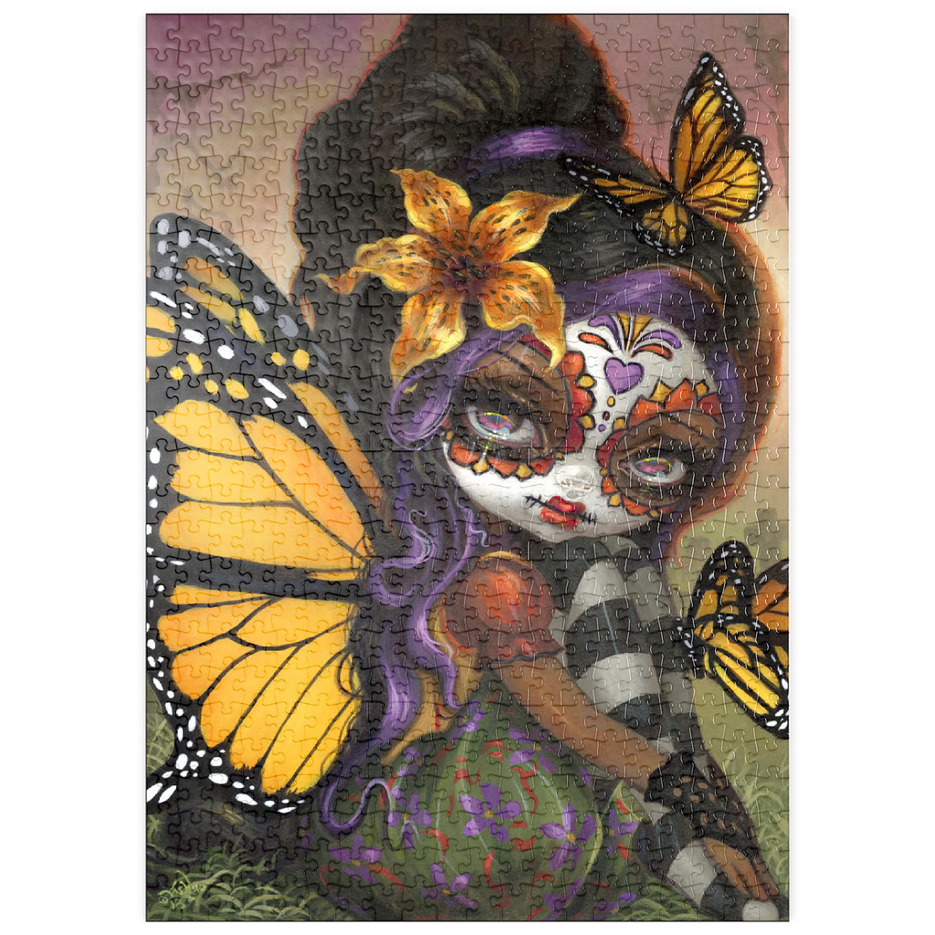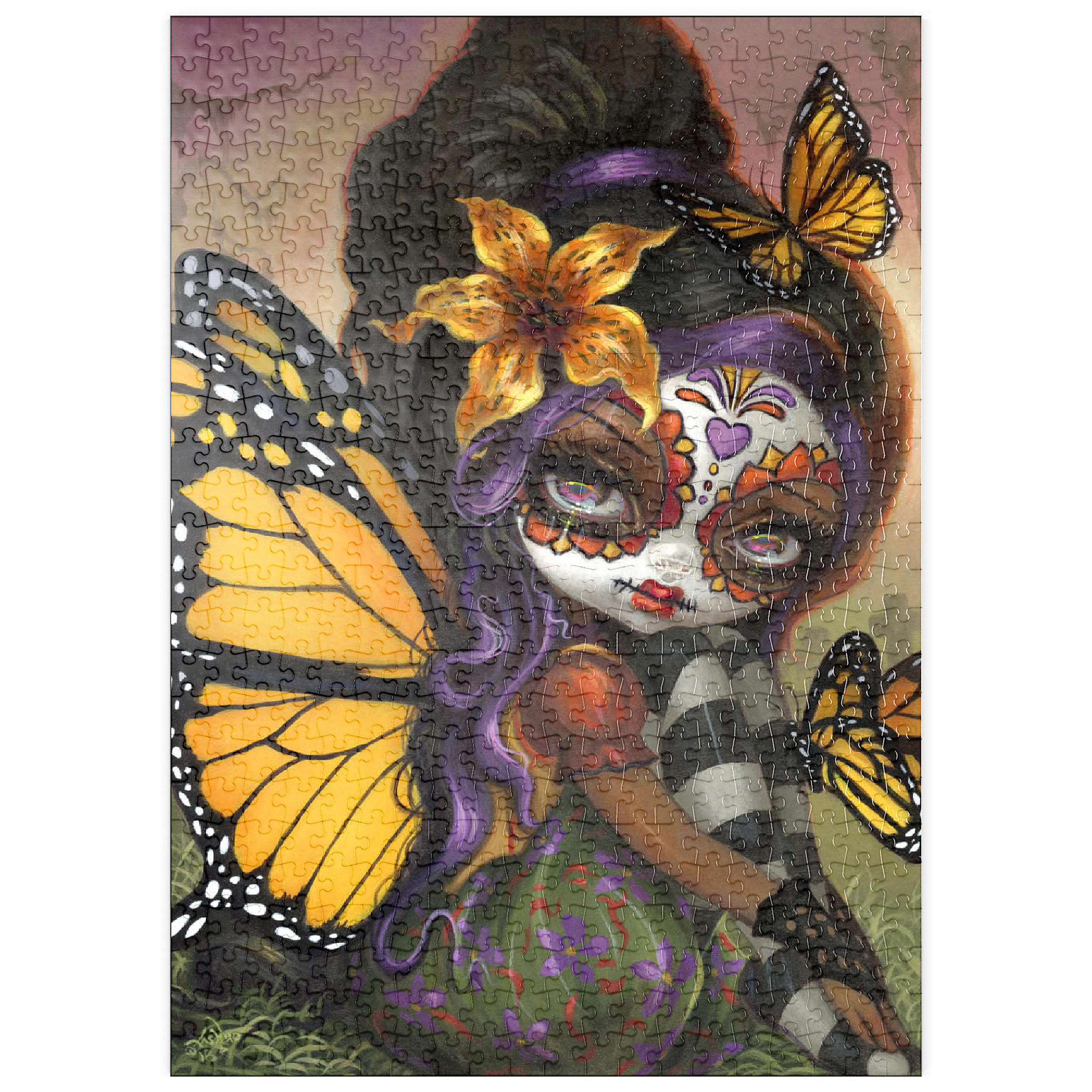 Entdecken Sie den süßen Geist von Isabella in diesem Dia de los Muertos-Puzzle! Setzen Sie ihr traditionelles Calavera-Gesichtsbild und die atemberaubenden Monarchfalterflügel zusammen, die ihre flatternden Begleiter widerspiegeln. Tauchen Sie ein in die Schönheit und Symbolik dieses Kunstwerks aus der -Milagros-Serie. Ein gefühlvolles und lebendiges Puzzle-Erlebnis!
