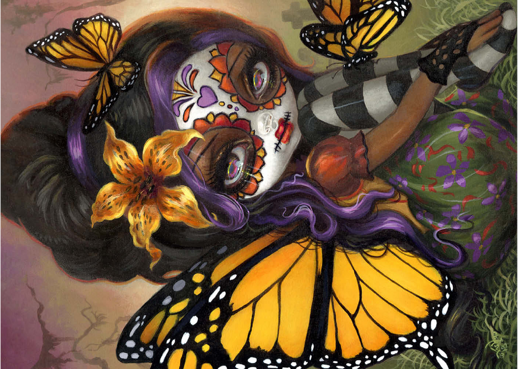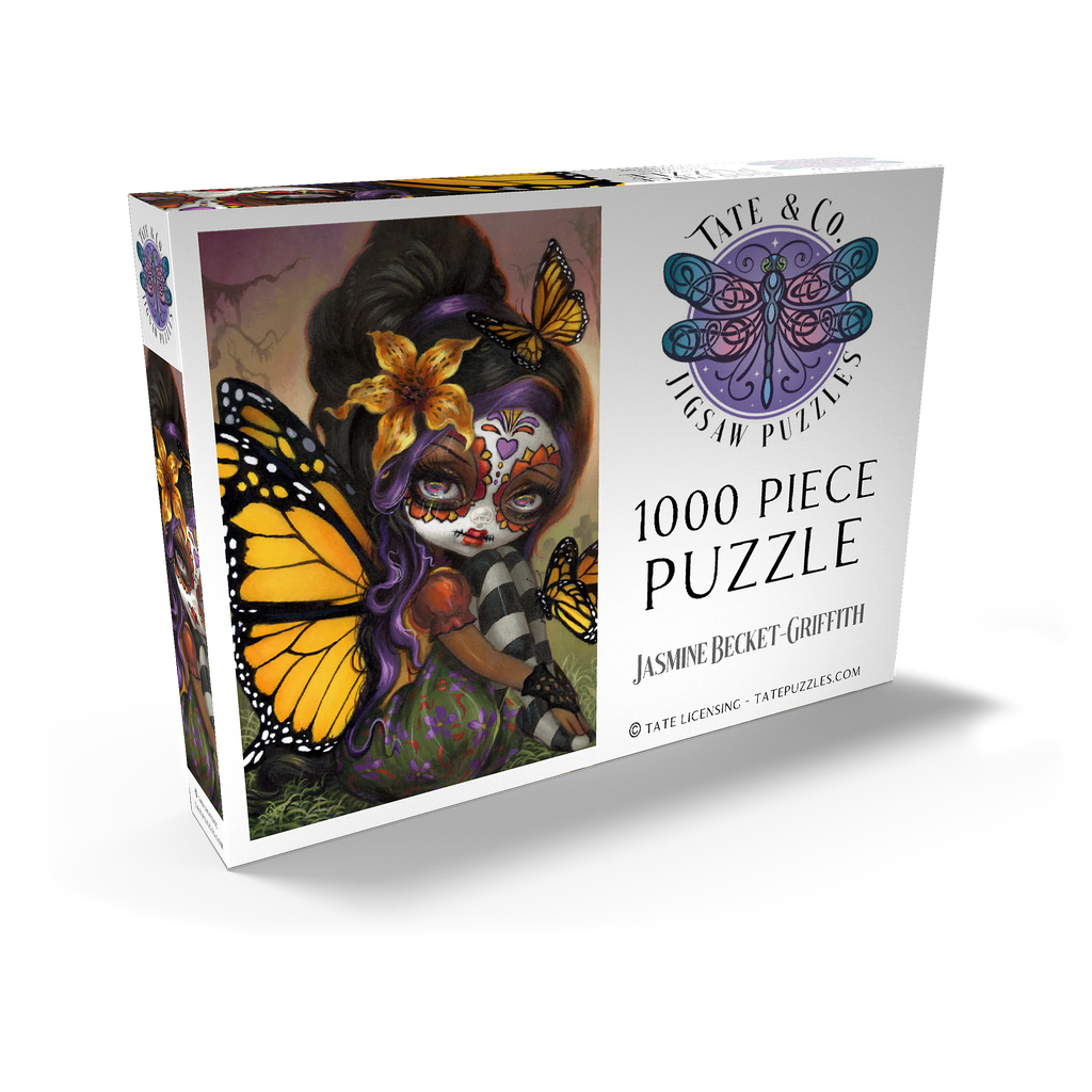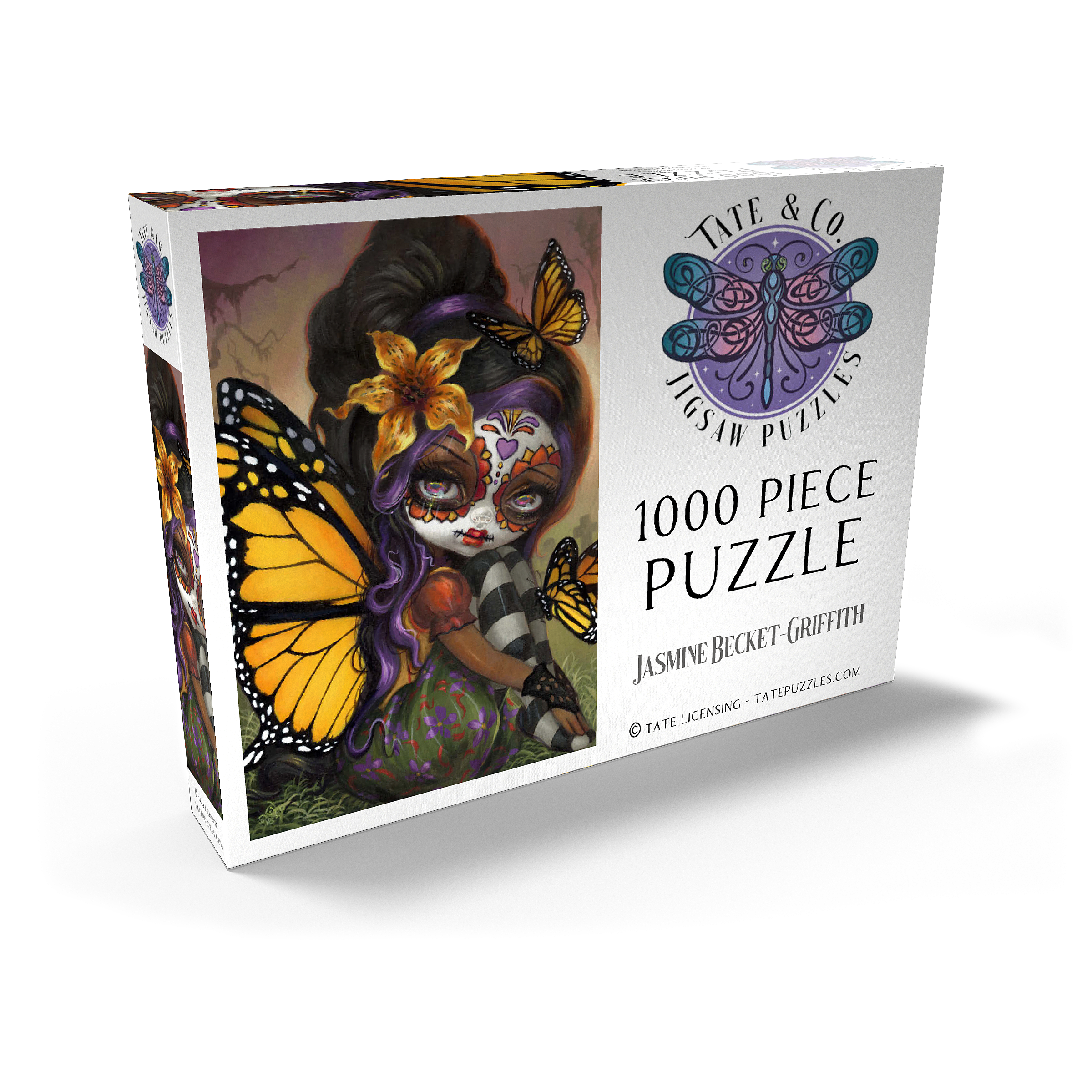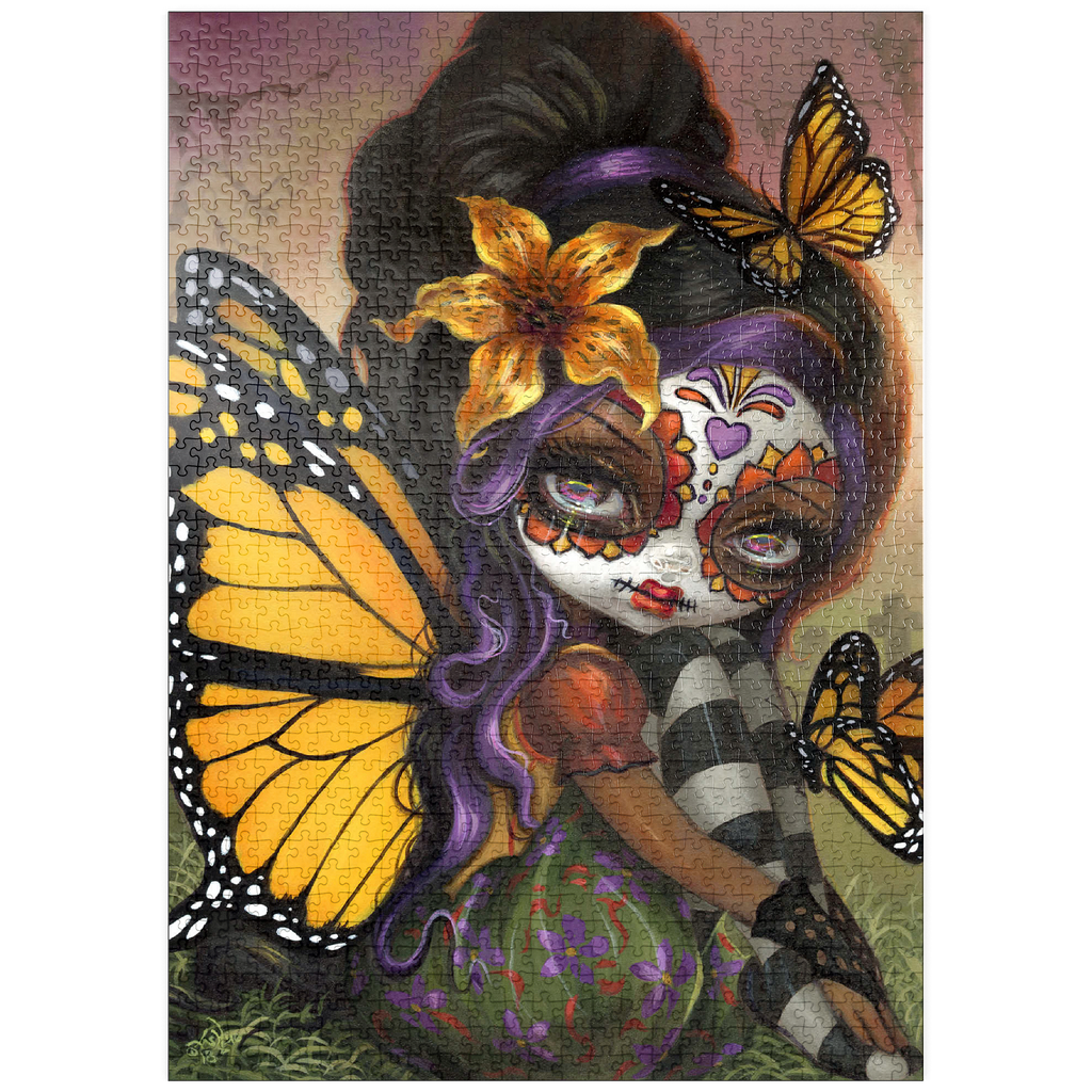 Entdecken Sie den süßen Geist von Isabella in diesem Dia de los Muertos-Puzzle! Setzen Sie ihr traditionelles Calavera-Gesichtsbild und die atemberaubenden Monarchfalterflügel zusammen, die ihre flatternden Begleiter widerspiegeln. Tauchen Sie ein in die Schönheit und Symbolik dieses Kunstwerks aus der -Milagros-Serie. Ein gefühlvolles und lebendiges Puzzle-Erlebnis!