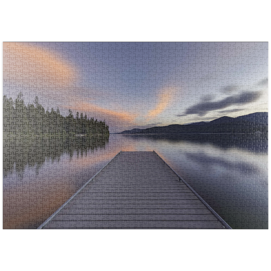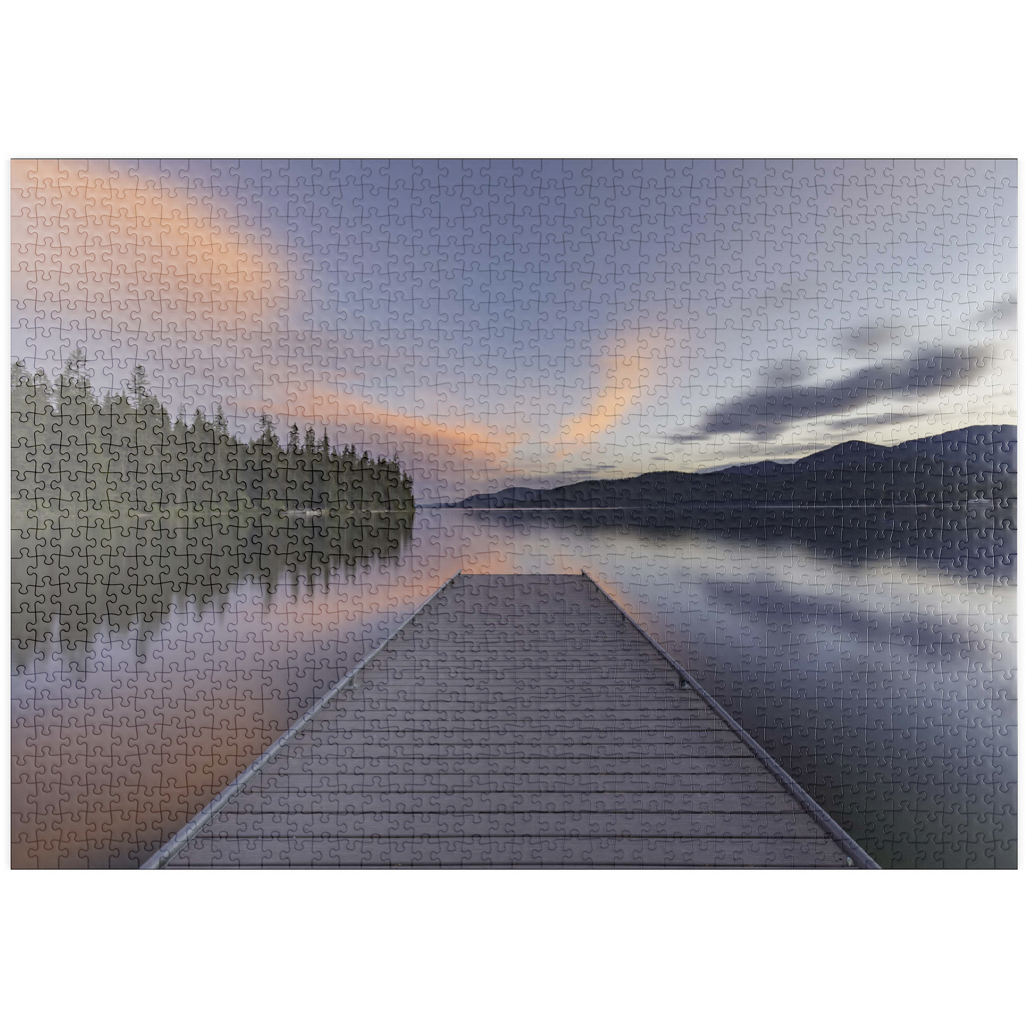 Montana Lake Dock in der Abenddämmerung – Ruhige Waldspiegelungen