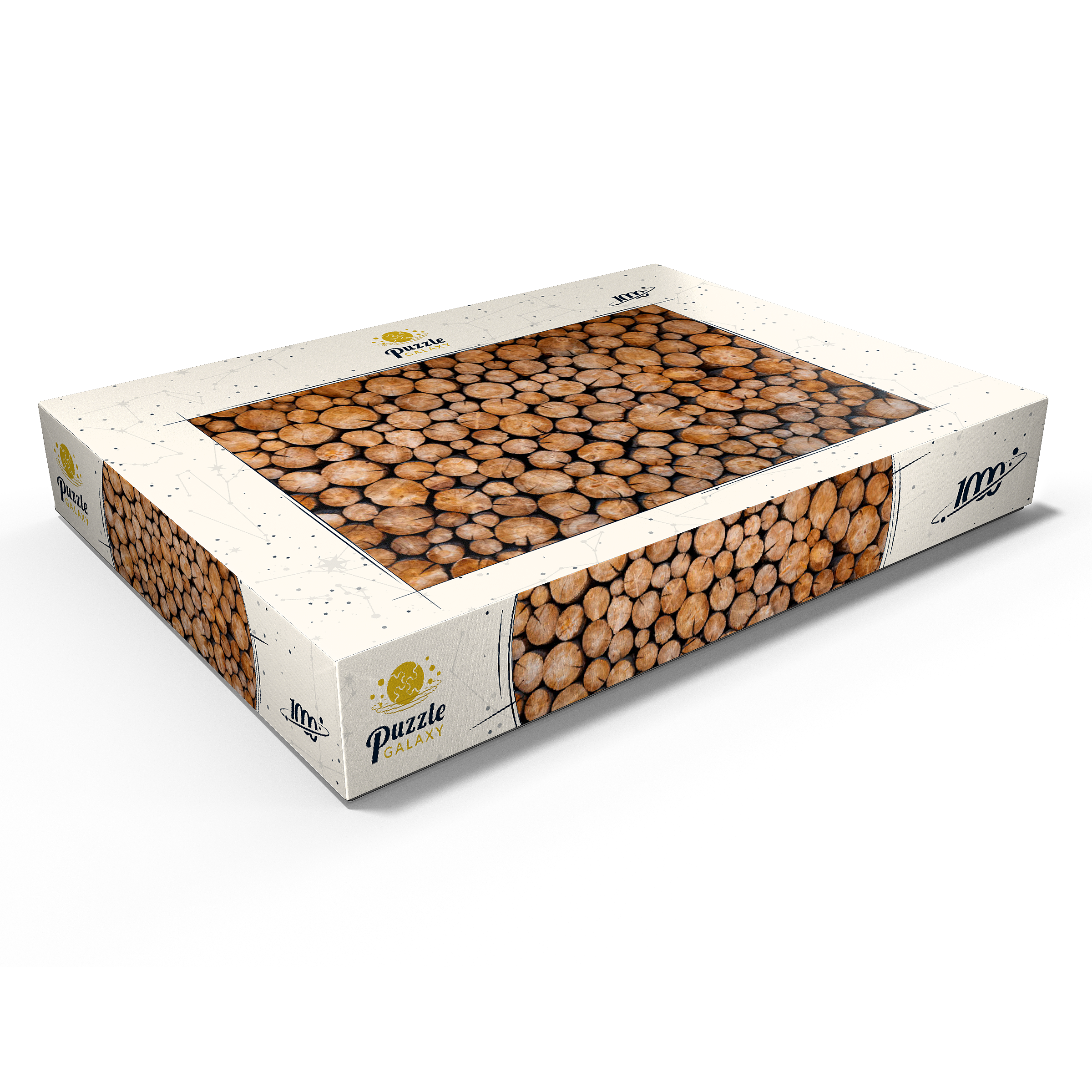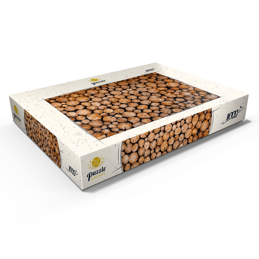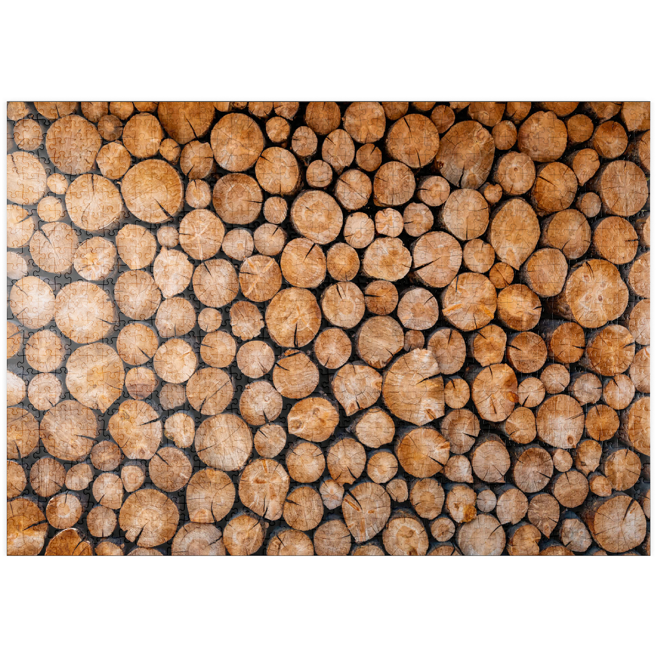 Dieses Bild zeigt einen dicht gestapelten Haufen geschnittener Brennholzscheite, die die natürliche Maserung, die Jahresringe und die satten Brauntöne des Holzes zur Geltung bringen. Die unterschiedlichen Durchmesser und leichten Risse an den Enden der Scheite unterstreichen die organische Beschaffenheit und den rustikalen Charme von frisch geschnittenem Holz. Der Querschnitt hebt die natürlichen Wachstumsmuster hervor und macht das Bild zu einem auffälligen und warmtonigen Hintergrund oder Dekorationselement. Diese Komposition eignet sich perfekt für Themen wie Nachhaltigkeit, gemütliches Wohnen, Waldprodukte und Herbst- oder Wintervorbereitungen und vermittelt ein Gefühl von Wärme, Handwerkskunst und Verbundenheit mit der Natur. Ideal für Inspirationen zur Inneneinrichtung, Camping- oder Kaminbilder oder Produktpräsentationen im Bereich Holzbearbeitung.