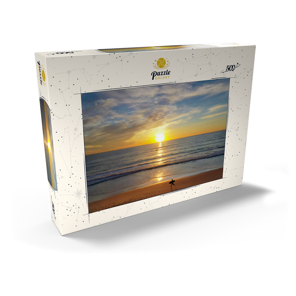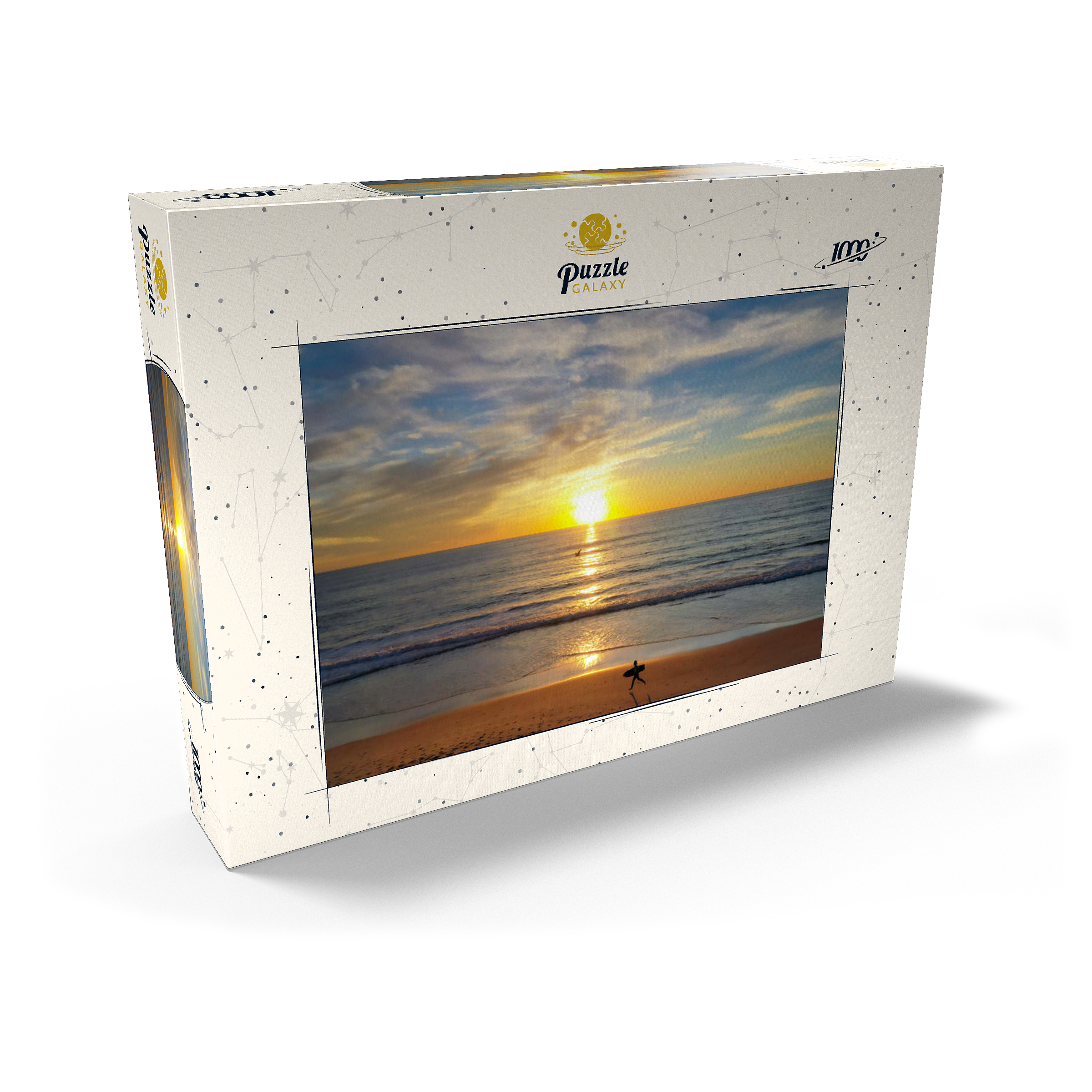 Surfer bei Sonnenuntergang an einem Strand in Kalifornien