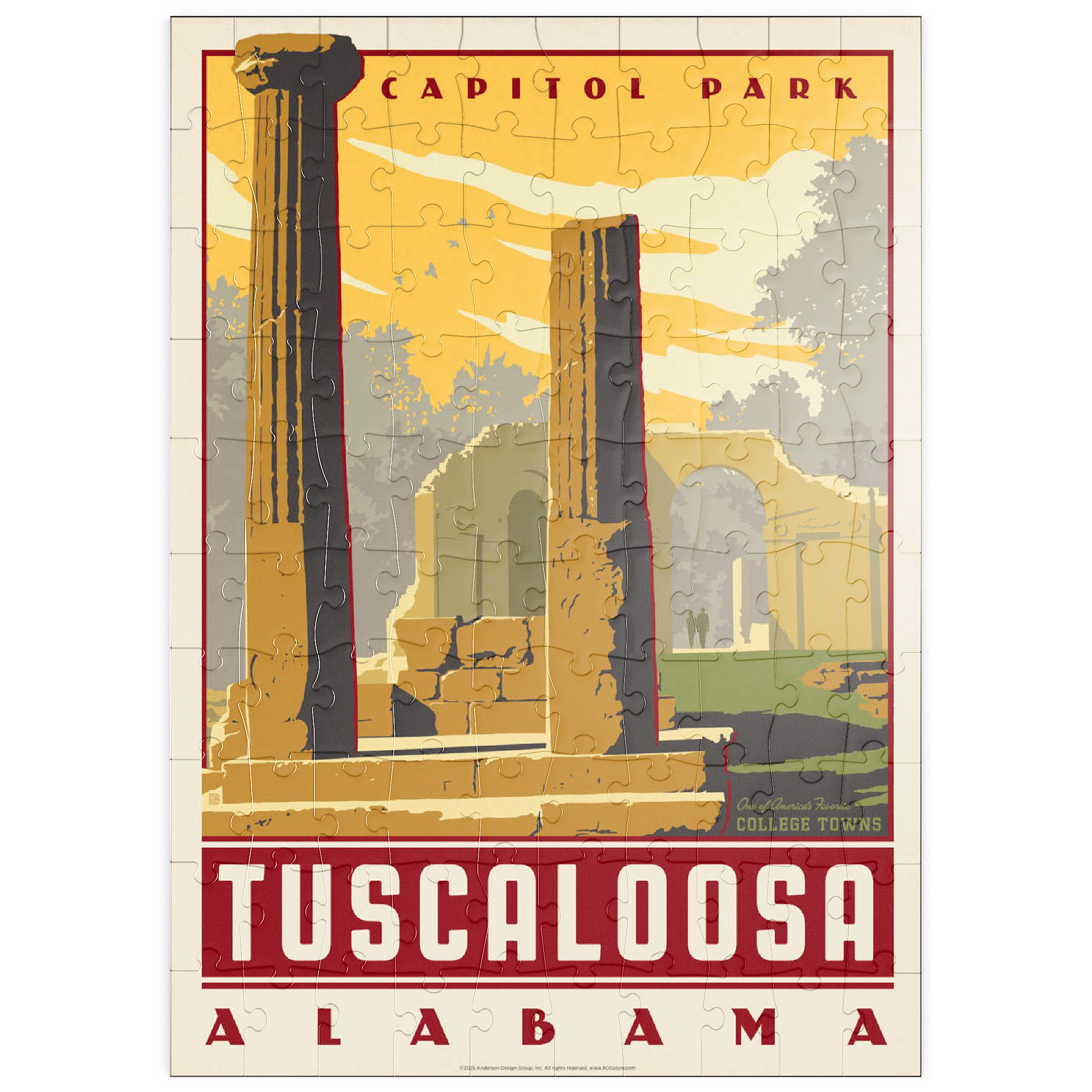 Die 1993 gegründete Anderson Design Group begann mit der Herstellung von CD- und Spielzeugverpackungen, Buchumschlägen, Postern und Logos. Im Jahr 2003 begann der Gründer Joel Anderson, seine Künstler anzuleiten, Werke im Stil der klassischen Plakatkunst des frühen 20. Jahrhunderts zu schaffen. Ihre erste Posterserie war die Kollektion Spirit of Nashville - eine Gruppe von Drucken, die die Geschichte und den Charme ihrer Heimatstadt zelebrierten. Im Laufe der Zeit entwickelte sich das Unternehmen zu einem Illustrations- und Designstudio mit einer Postergalerie und einer Druckerei im Erdgeschoss.Im Jahr 2010, nachdem er über 150 verschiedene Nashville-Designs produziert hatte, begann Joel eine neue Posterserie mit dem Namen The Art & Soul of America - eine Reisepostersammlung mit meinen liebsten amerikanischen Reisezielen. Es begann mit einer kleinen Sammlung von Drucken mit Motiven aus Städten wie Seattle, New Orleans, New York und Chicago. Die Serie war ein sofortiger Erfolg, und die Anderson Design Group erhielt bald Anfragen aus den gesamten USA für neue Kunstwerke, die andere Orte zeigen, die für die Menschen etwas Besonderes sind - Orte, an denen Erinnerungen geschaffen und Seelen bewegt werden.