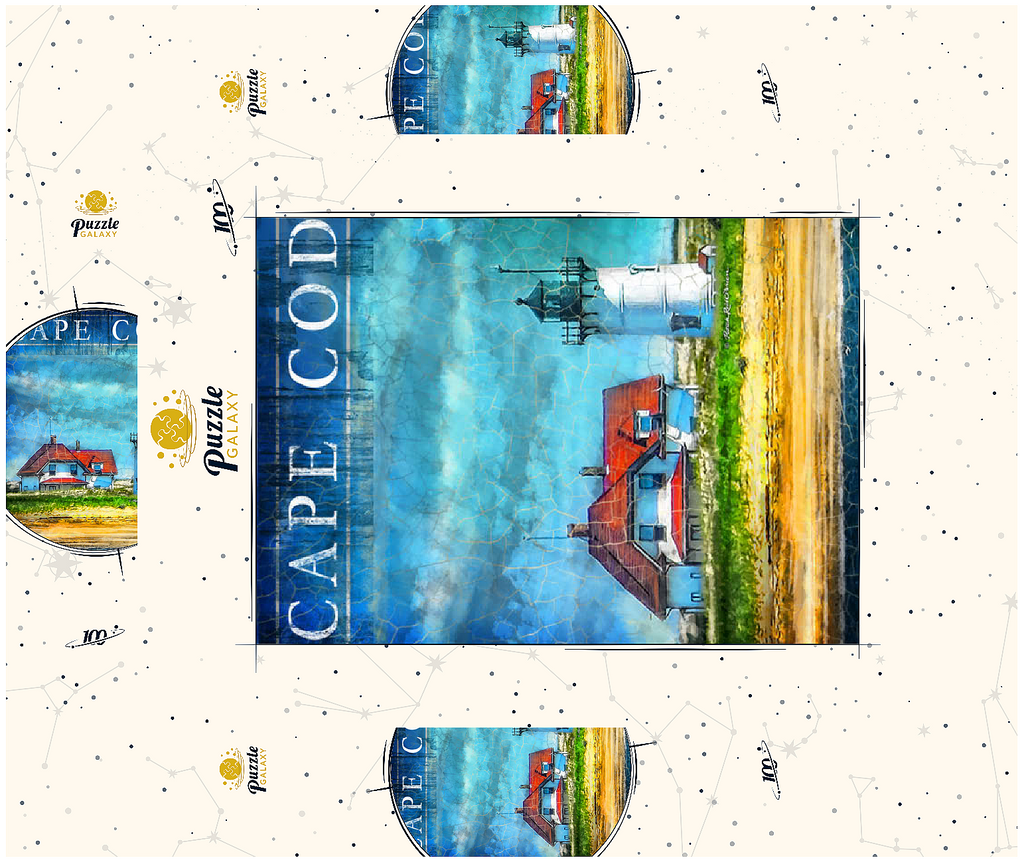 Dieses atemberaubende Kunstwerk im Vintage-Stil fängt den Charme eines klassischen Cape Cod-Leuchtturms vor einem strahlend blauen Himmel ein. Mit seiner strukturierten, verwitterten Oberfläche erinnert das Bild an ein nostalgisches Reiseposter am Meer. Der weiße Leuchtturm, gepaart mit einem charmanten rotgedeckten Wärterhaus, steht als Leuchtfeuer der maritimen Geschichte entlang der malerischen Küste. Goldener Sand, üppiges Grün und ein dramatischer Himmel vervollständigen diese wunderschön komponierte Küstenszene. Perfekt für Liebhaber von Neuengland-Landschaften, nautischem Dekor und Retro-Reisekunst.