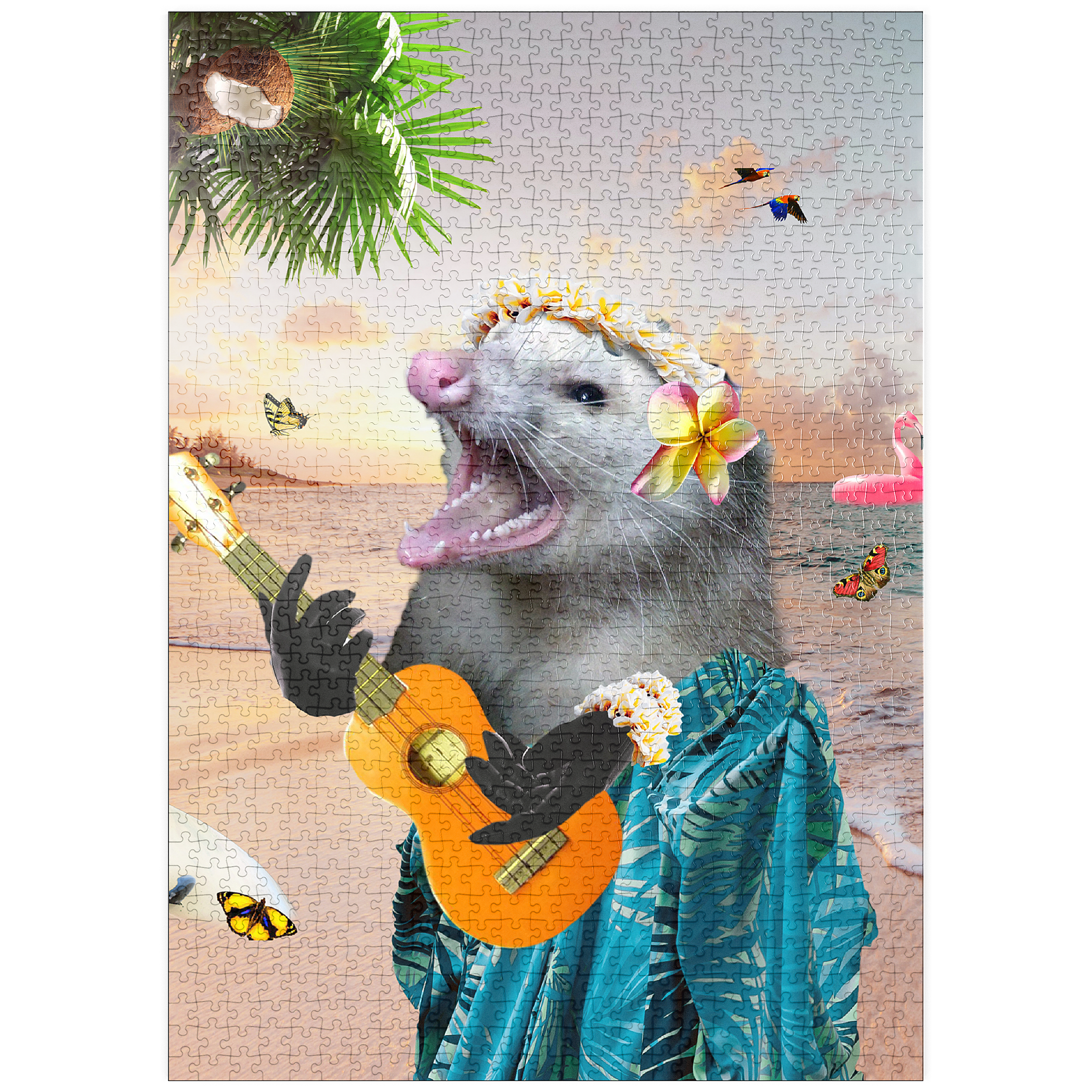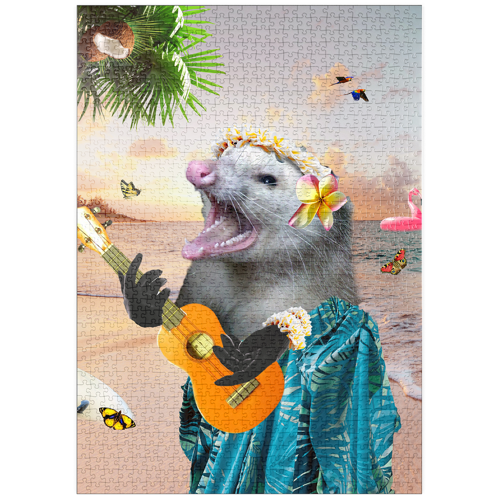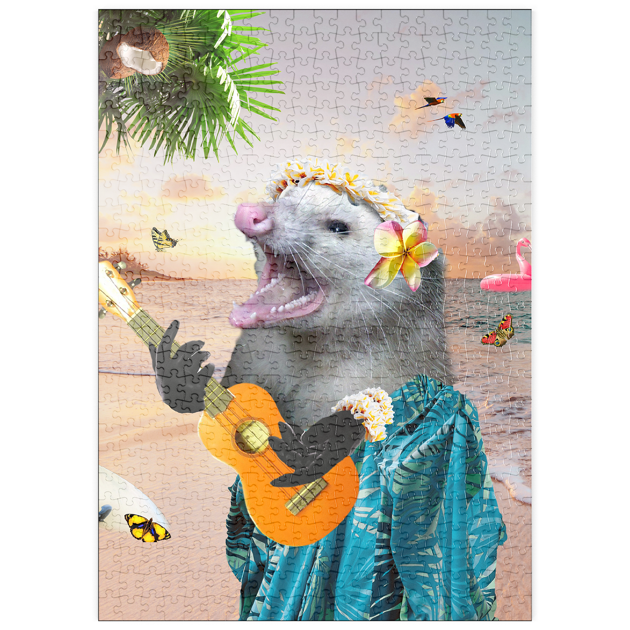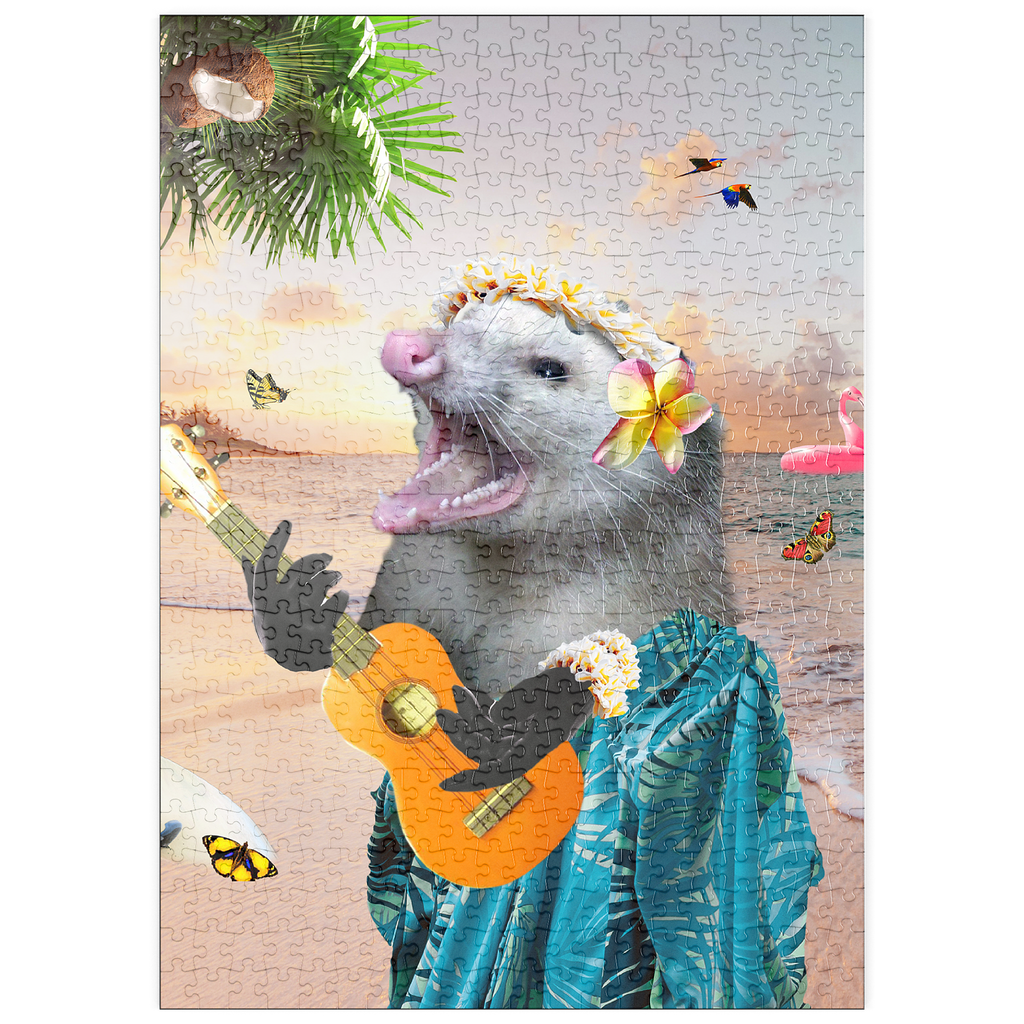 "Aloha Opossum Enjoying Hawaiian Vibes - Random Galaxy" Puzzle