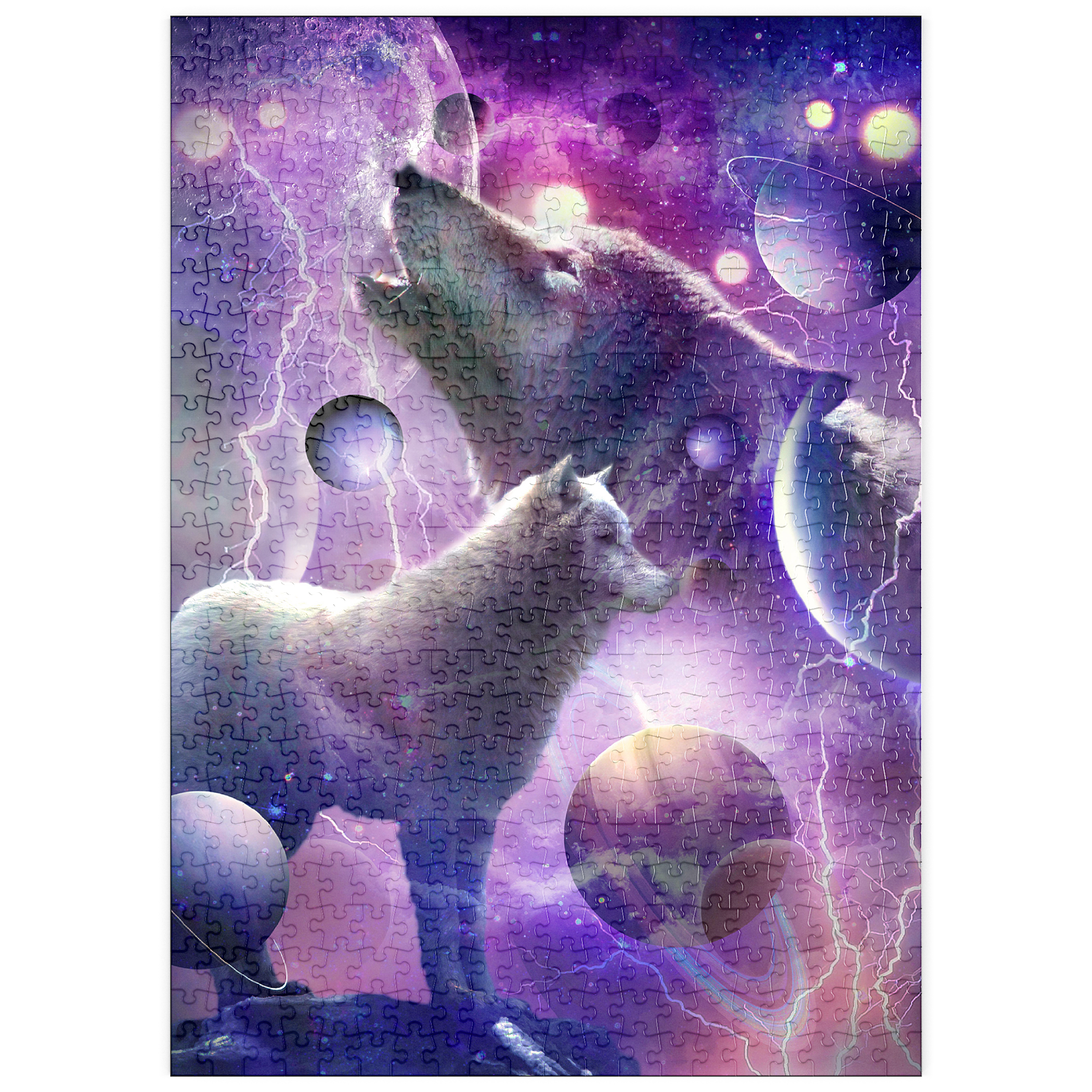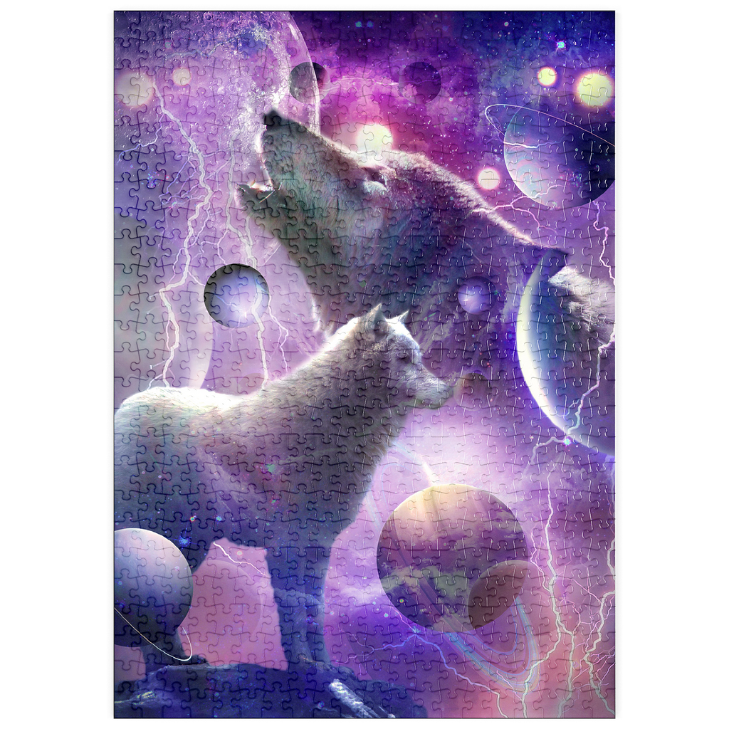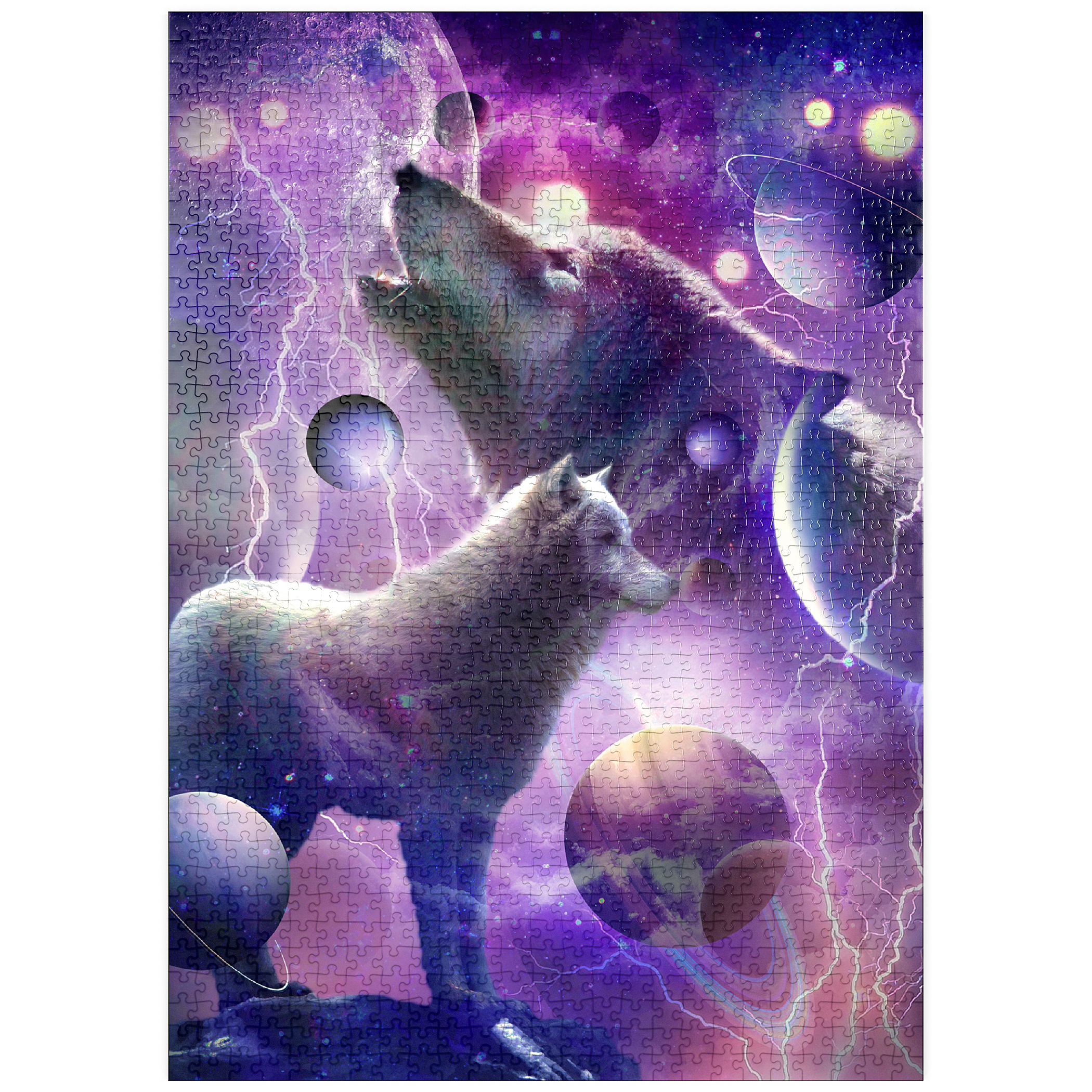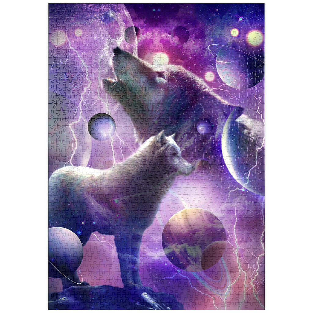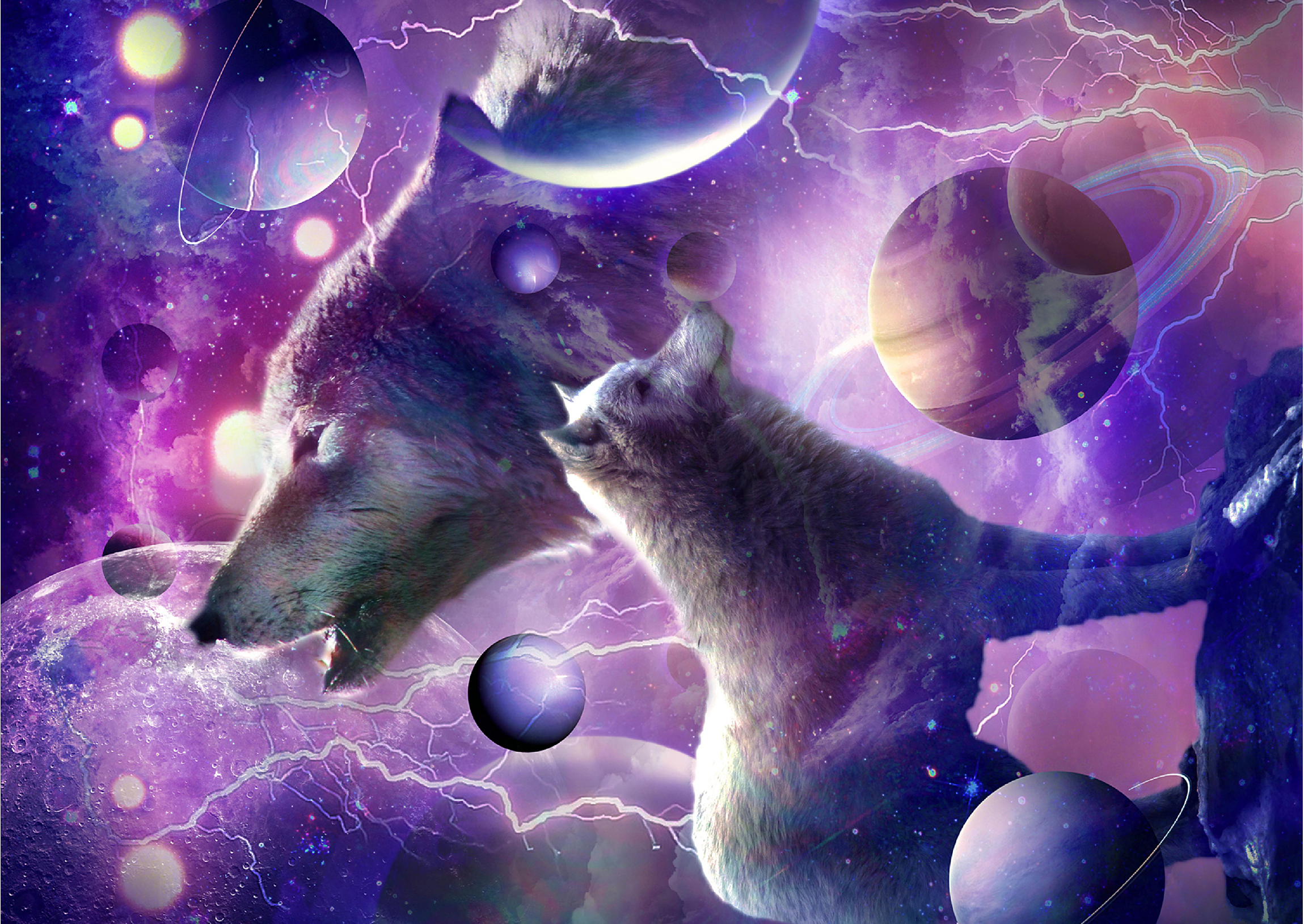 Celestial Wolf Howling Under a Stormy Moon - Random Galaxy