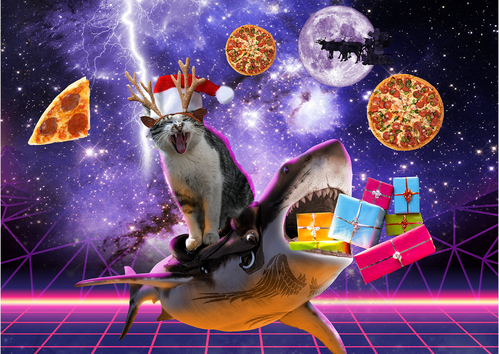 Christmas Cat Riding Shark in Space - Random Galaxy