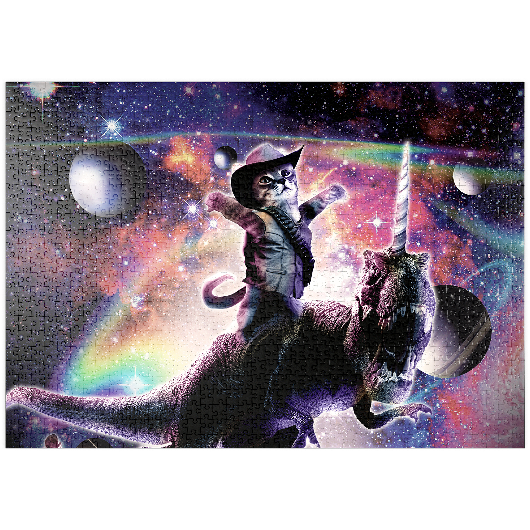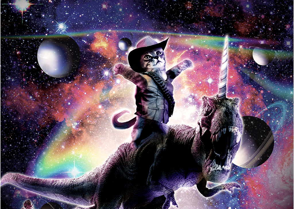 Cowboy Cat with Dinosaur in Galaxy - Random Galaxy