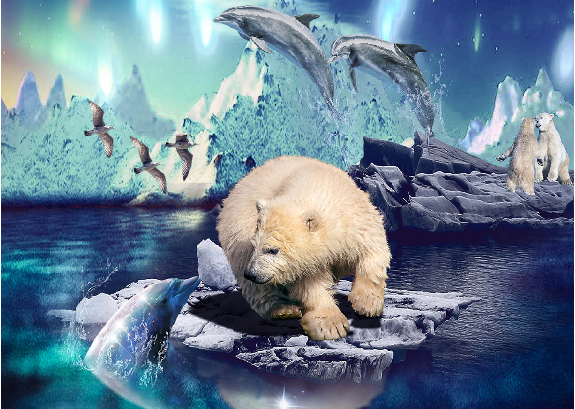 Polar Bear and Dolphin, Northern Lights - Random Galaxy