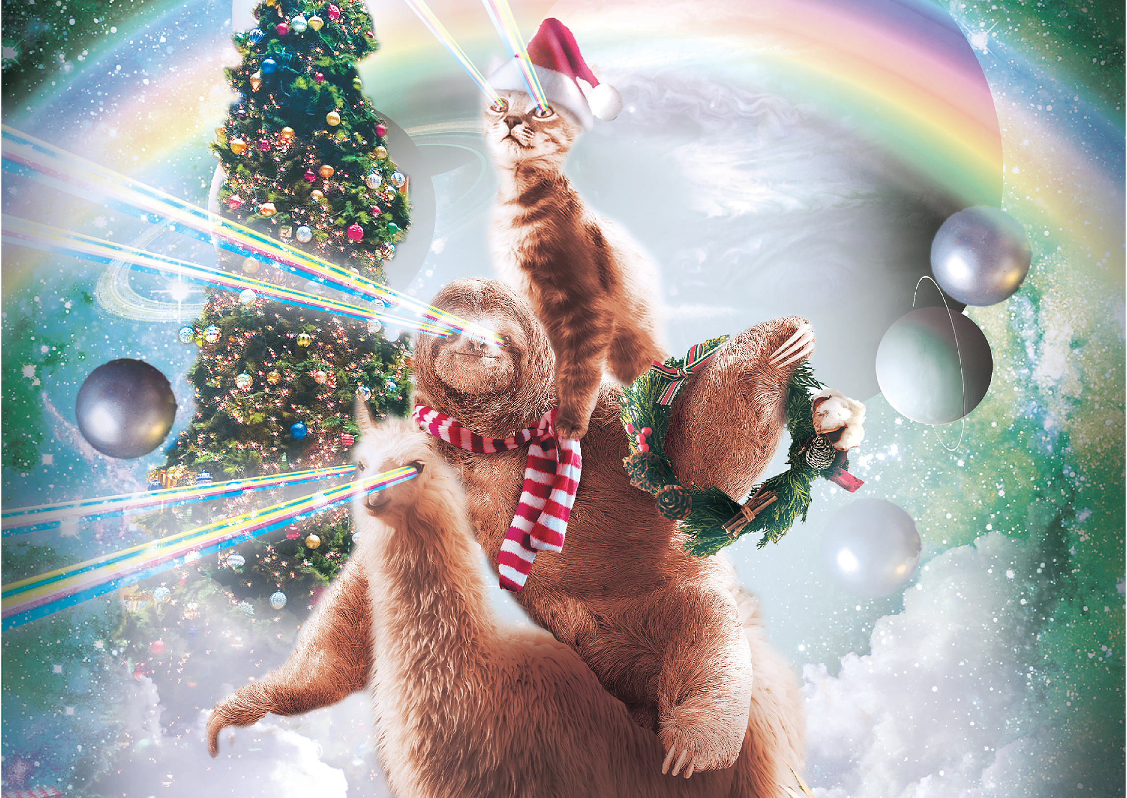 Sloth Cat and Llama Christmas Companions - Random Galaxy