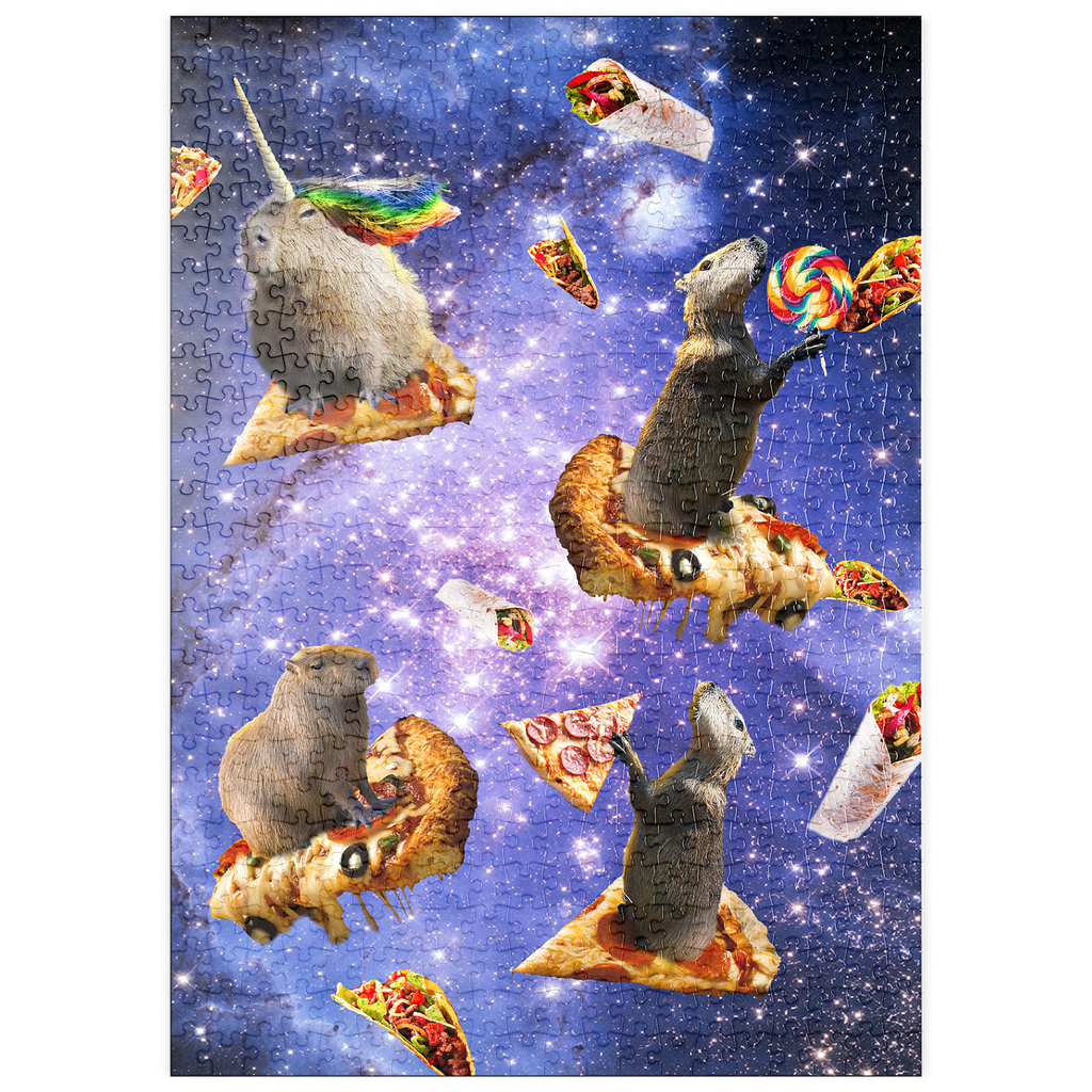 "Space Capybara Enjoying a Cosmic Pizza Feast - Random Galaxy" Puzzle