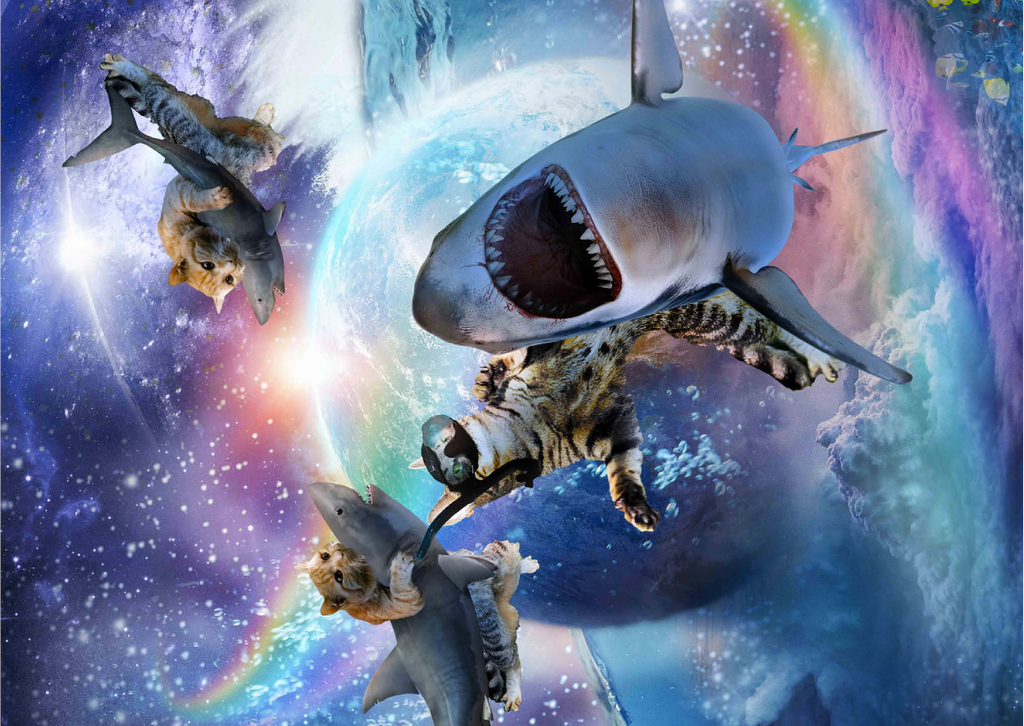 Space Cat Riding Shark, Galaxy Cats Sharks - Random Galaxy