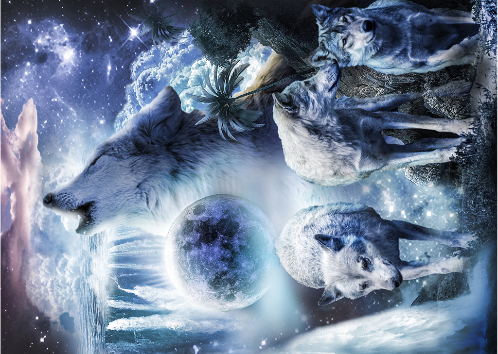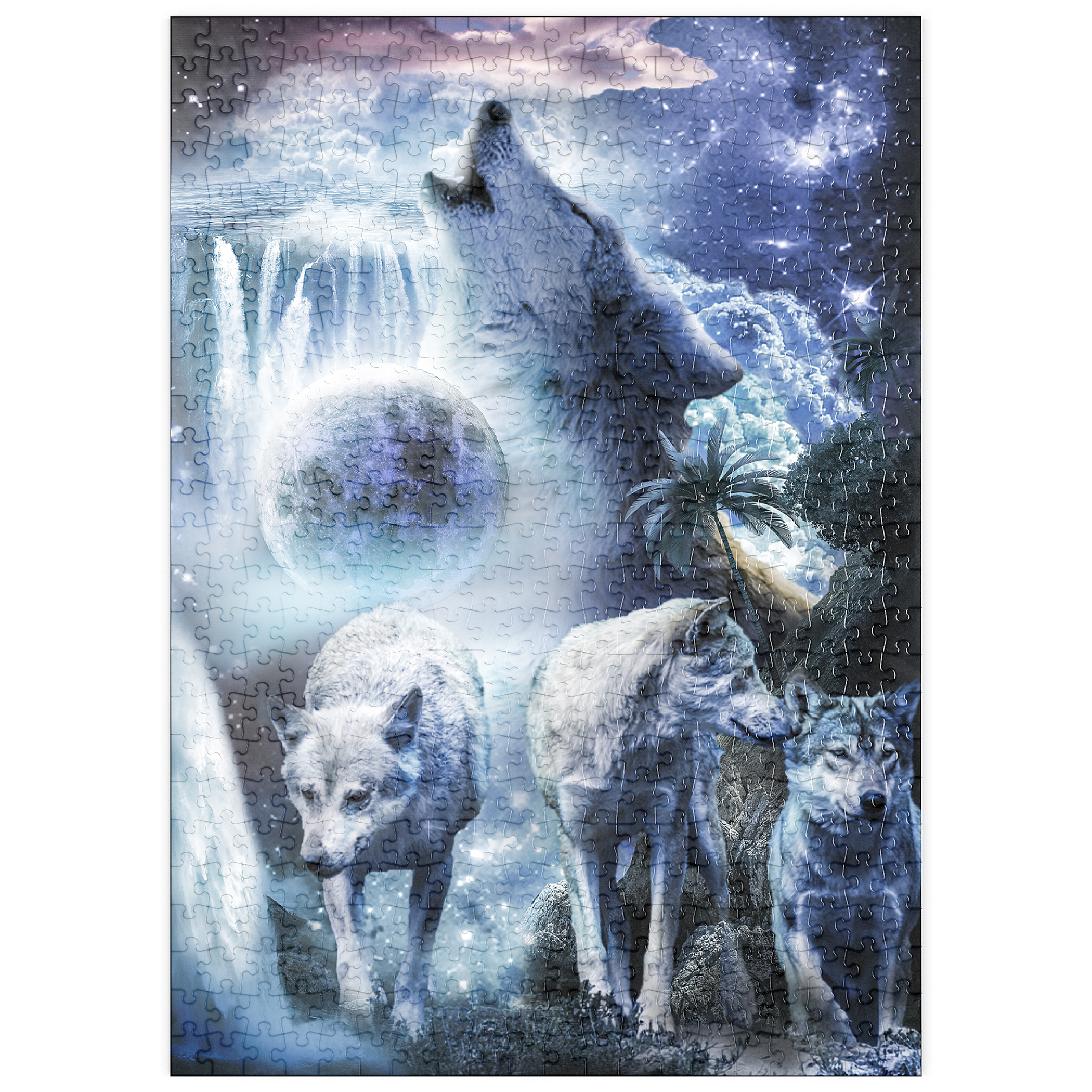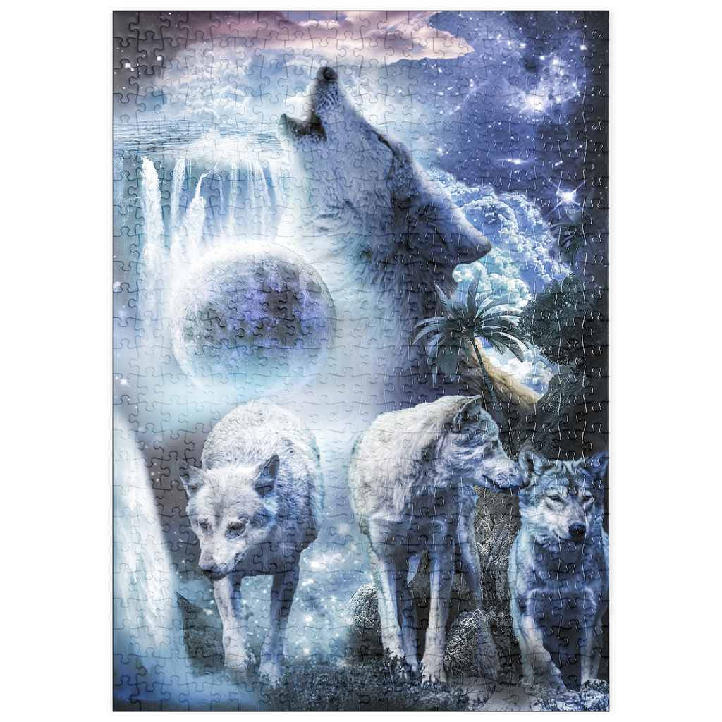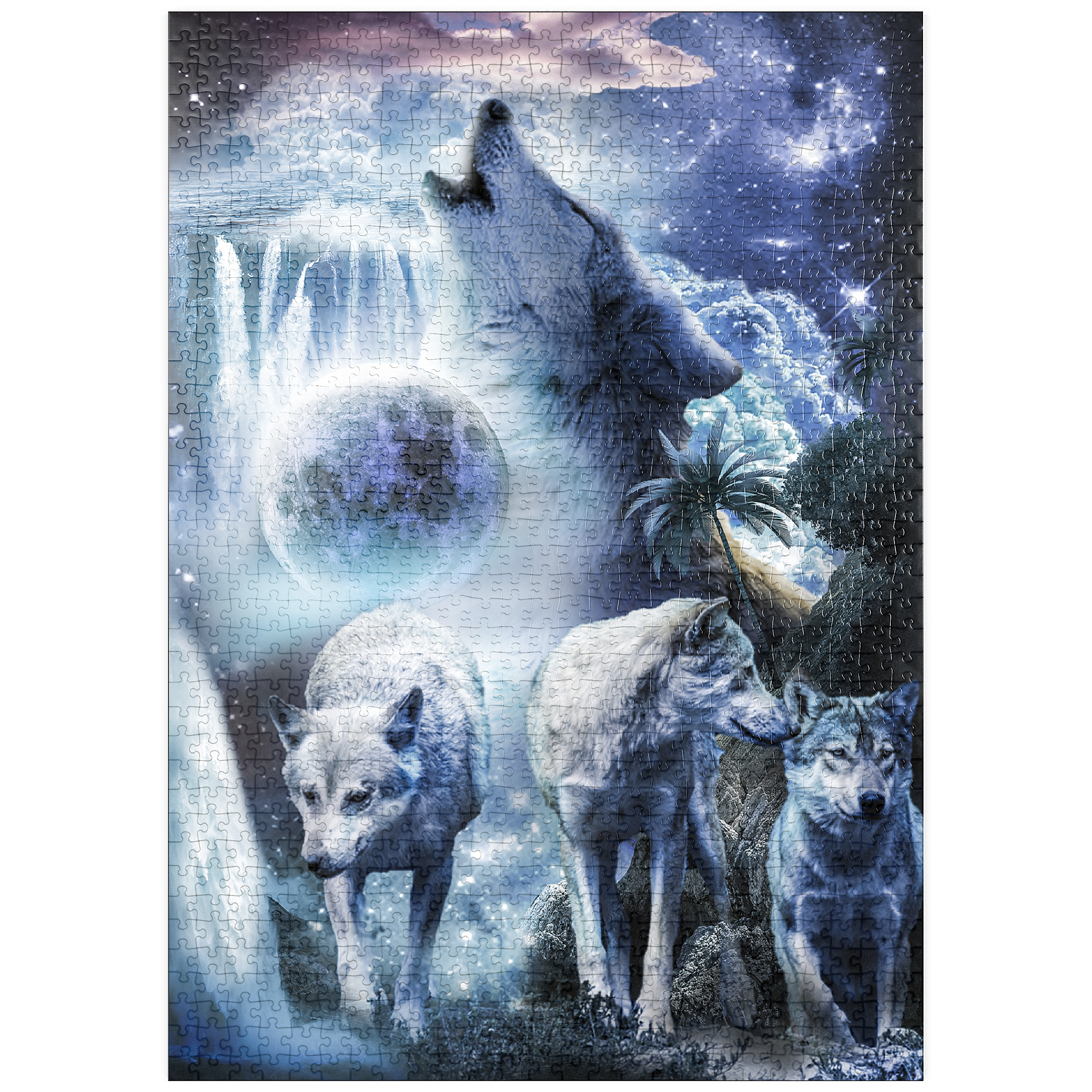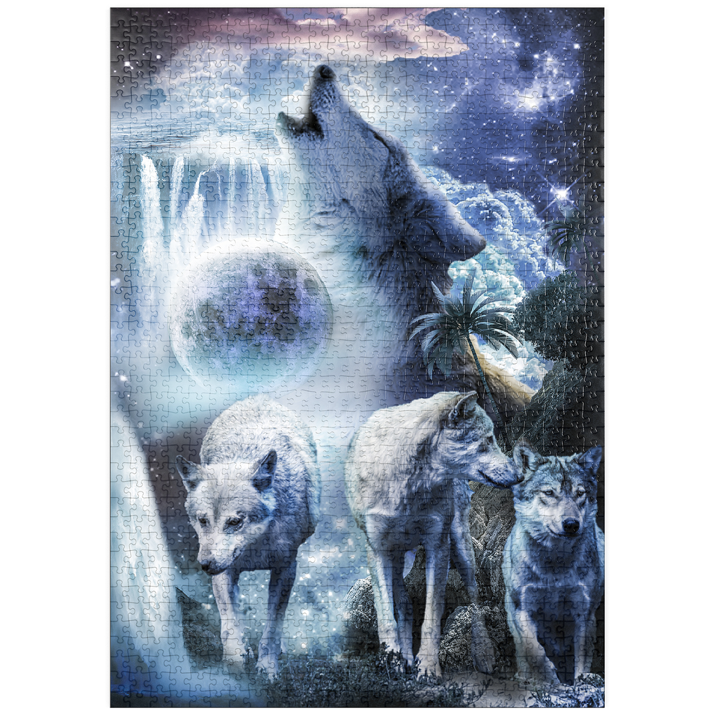Waterfall Wolf Howling Beside the Moonlight Falls - Random Galaxy