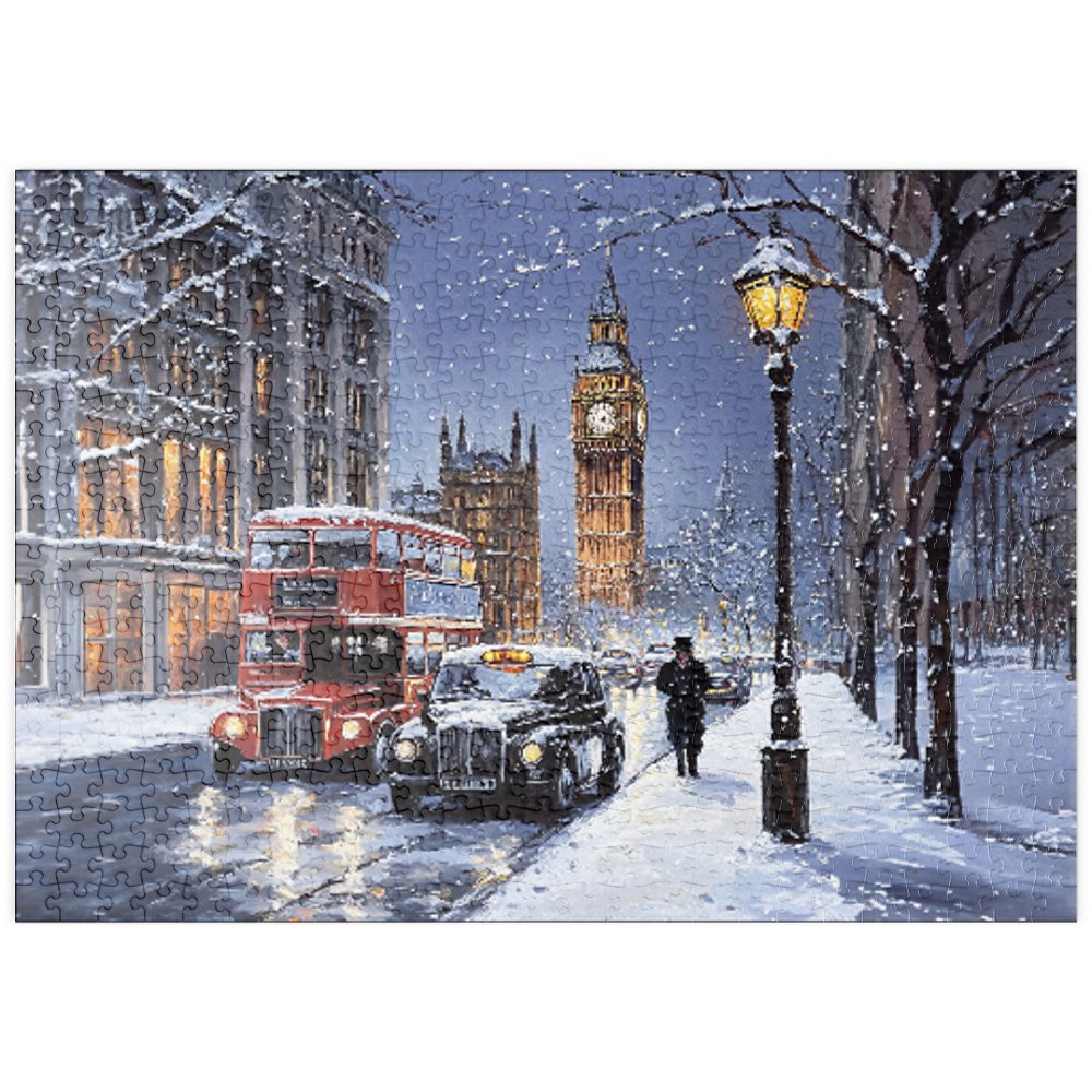 Big Ben London Snowy Night Street Scene
