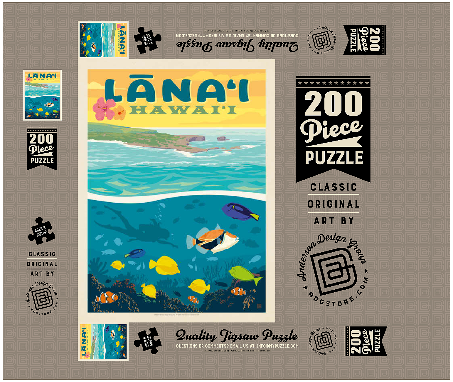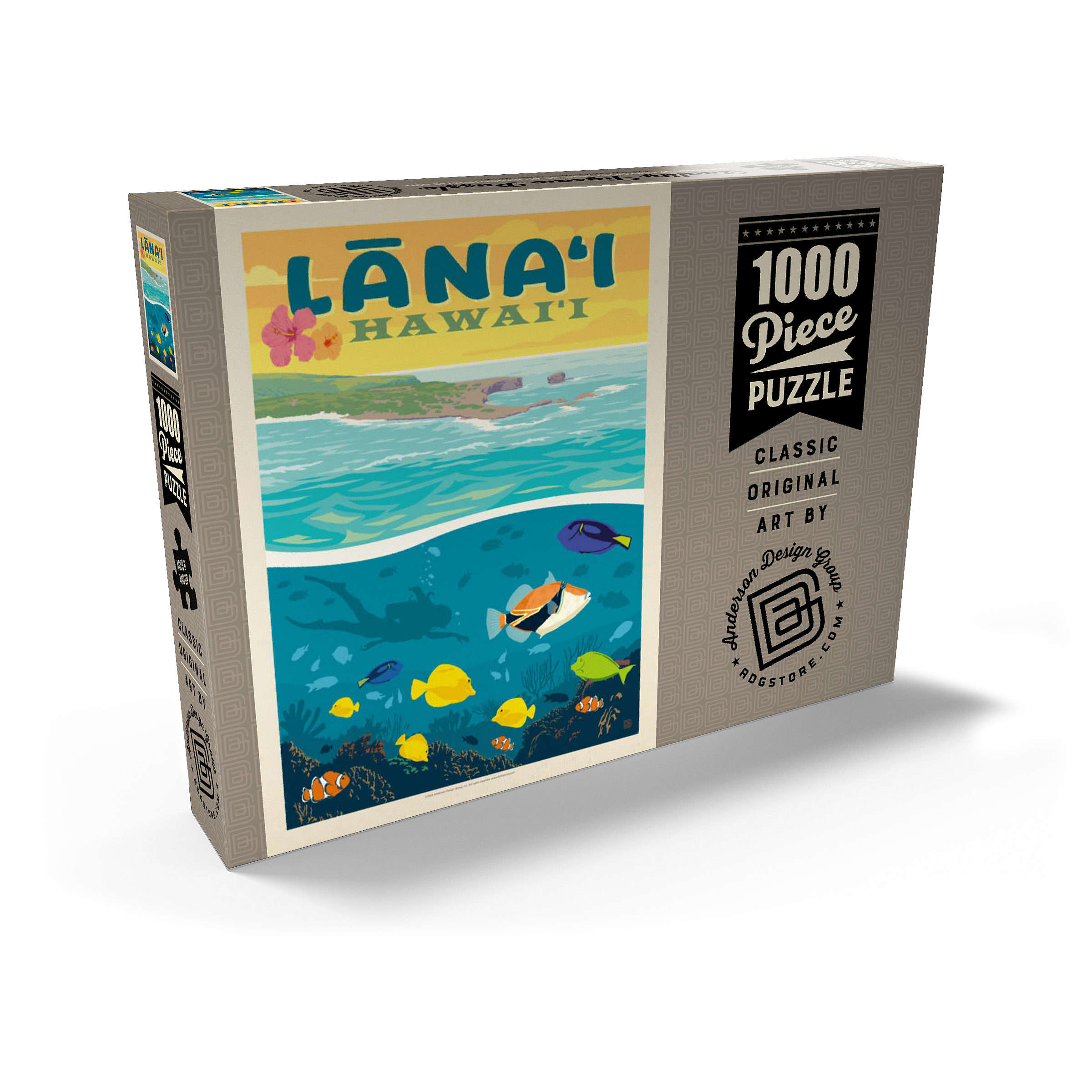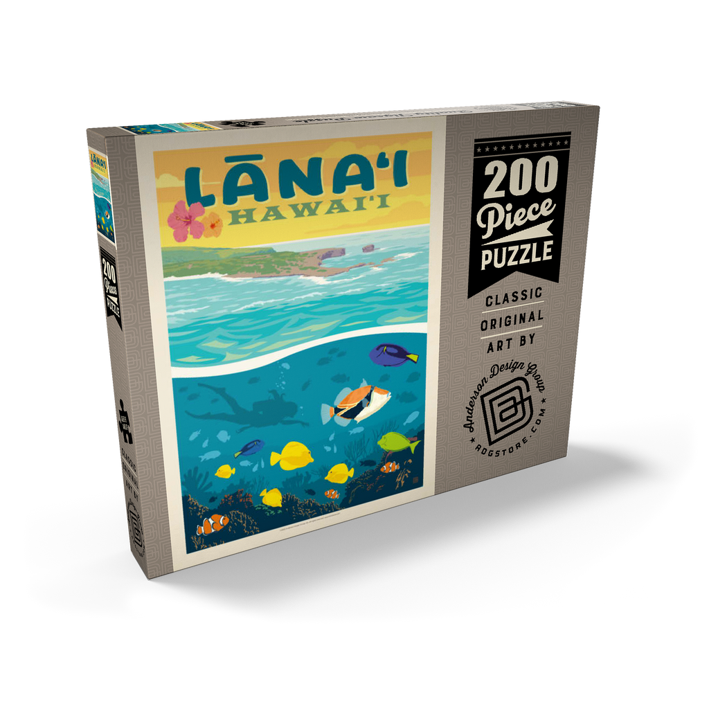 Diese farbenfrohe Darstellung zeigt die natürliche Schönheit von Lāna'i, Hawaii, und hebt die unberührte Küstenlinie und die lebendige Unterwasserwelt hervor. Über der Wasseroberfläche treffen die üppig grünen Klippen auf das türkisfarbene Wasser, eingerahmt von einem goldenen Sonnenuntergangshimmel mit sanften Wolken und tropischen Hibiskusblüten, die den heiteren Charme der Insel symbolisieren. Die zerklüftete Küste von Lāna'i, die oft als Ananasinsel bezeichnet wird, bietet atemberaubende Ausblicke und einsame Strände, die zum Entspannen und Erkunden einladen. Unterhalb der Wellen erwacht eine lebendige Unterwasserszene mit einer Vielzahl tropischer Fische zum Leben, darunter gelbe Tangs, Clownfische, Papageienfische und der berühmte hawaiianische Staatsfisch, der humuhumunukunukuāpuaʻa. Ein Schnorchler gleitet friedlich durch das kristallklare Wasser und erkundet die farbenfrohen Korallenriffe, in denen es von Meereslebewesen nur so wimmelt. Lāna'i ist bekannt für seine außergewöhnlichen Schnorchel- und Tauchspots, die hautnahe Begegnungen mit der reichen Artenvielfalt der Ozeane Hawaiis ermöglichen. Diese Illustration fängt die Essenz der doppelten Schönheit von Lāna'i ein - die ruhigen Landschaften oben und das blühende Ökosystem unten. Lāna'i ist ideal für Naturliebhaber, Schnorchler und Abenteurer und lädt Besucher ein, die unberührte Pracht einer der abgelegensten Inseln Hawaiis zu erleben.