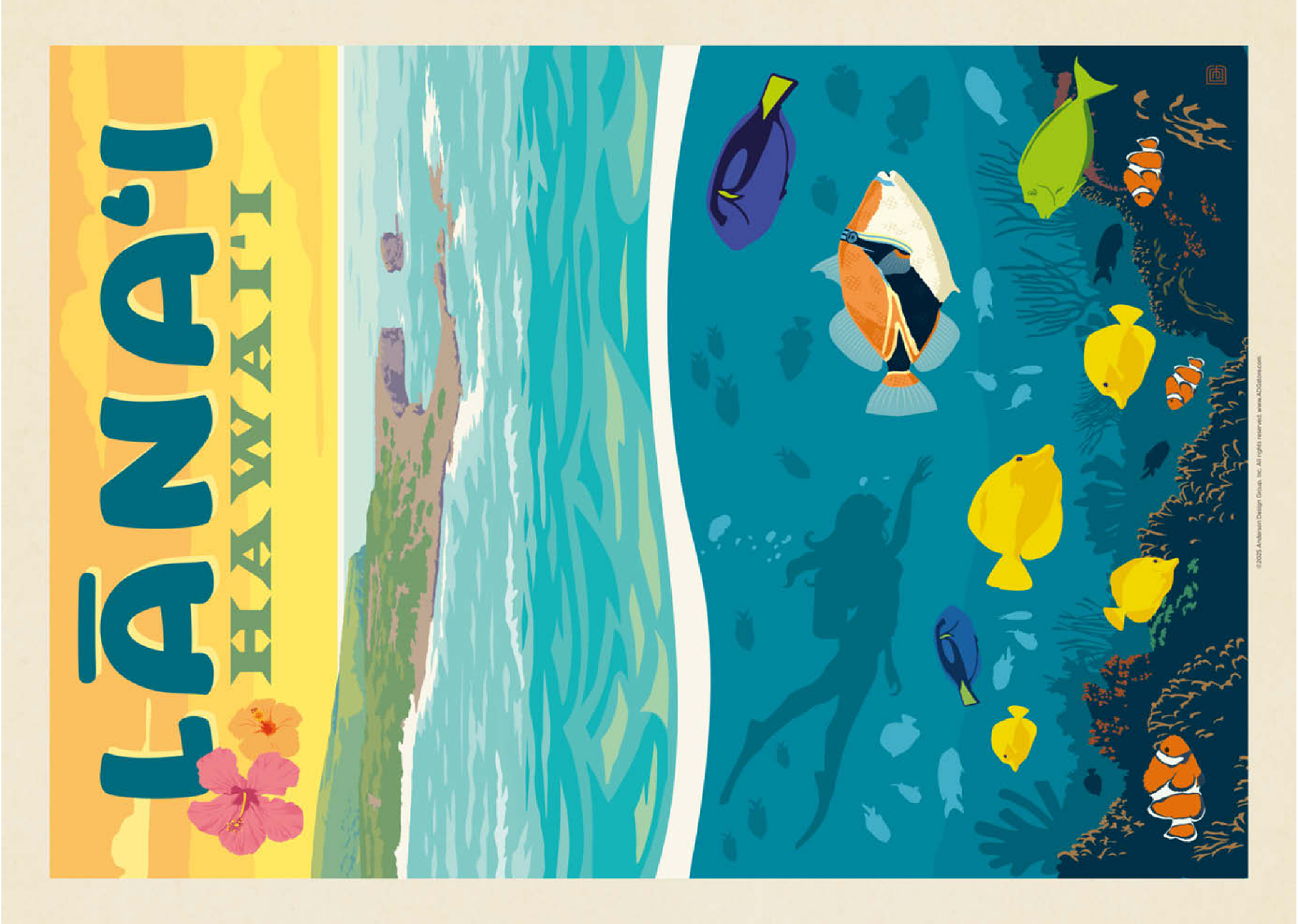 Hawaii: Lānaʻi (Tropische Fische), Vintage Poster