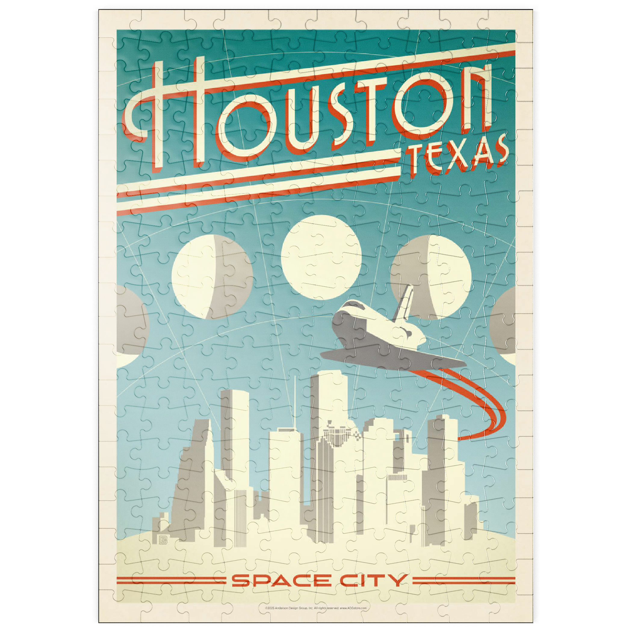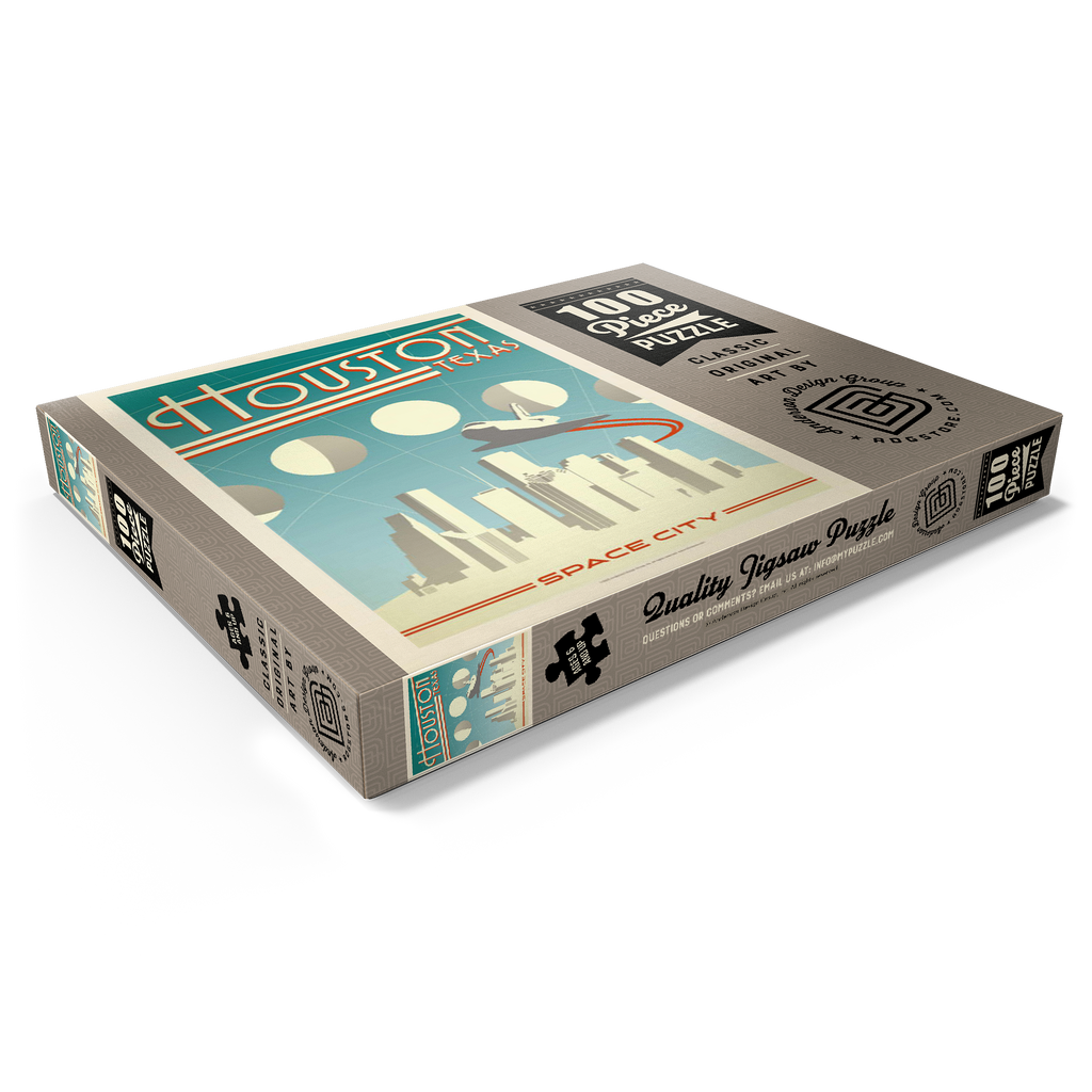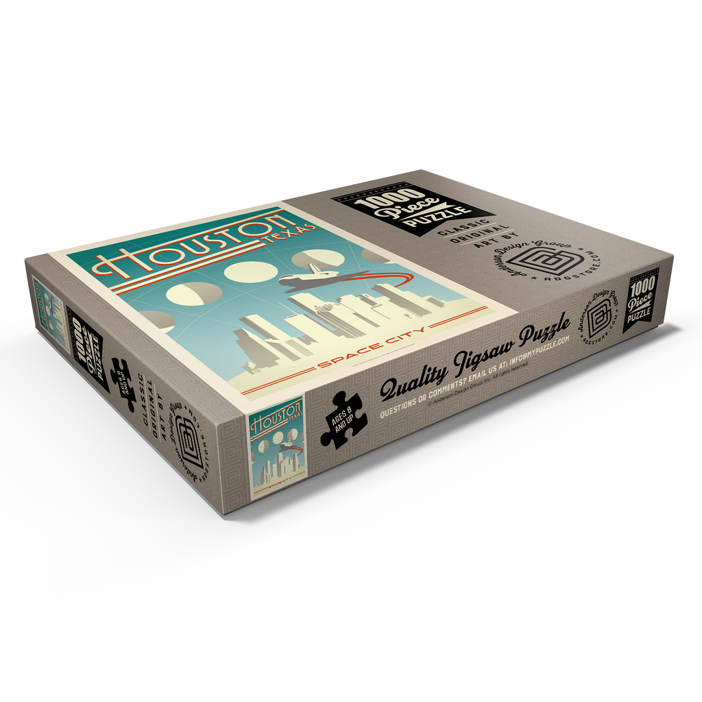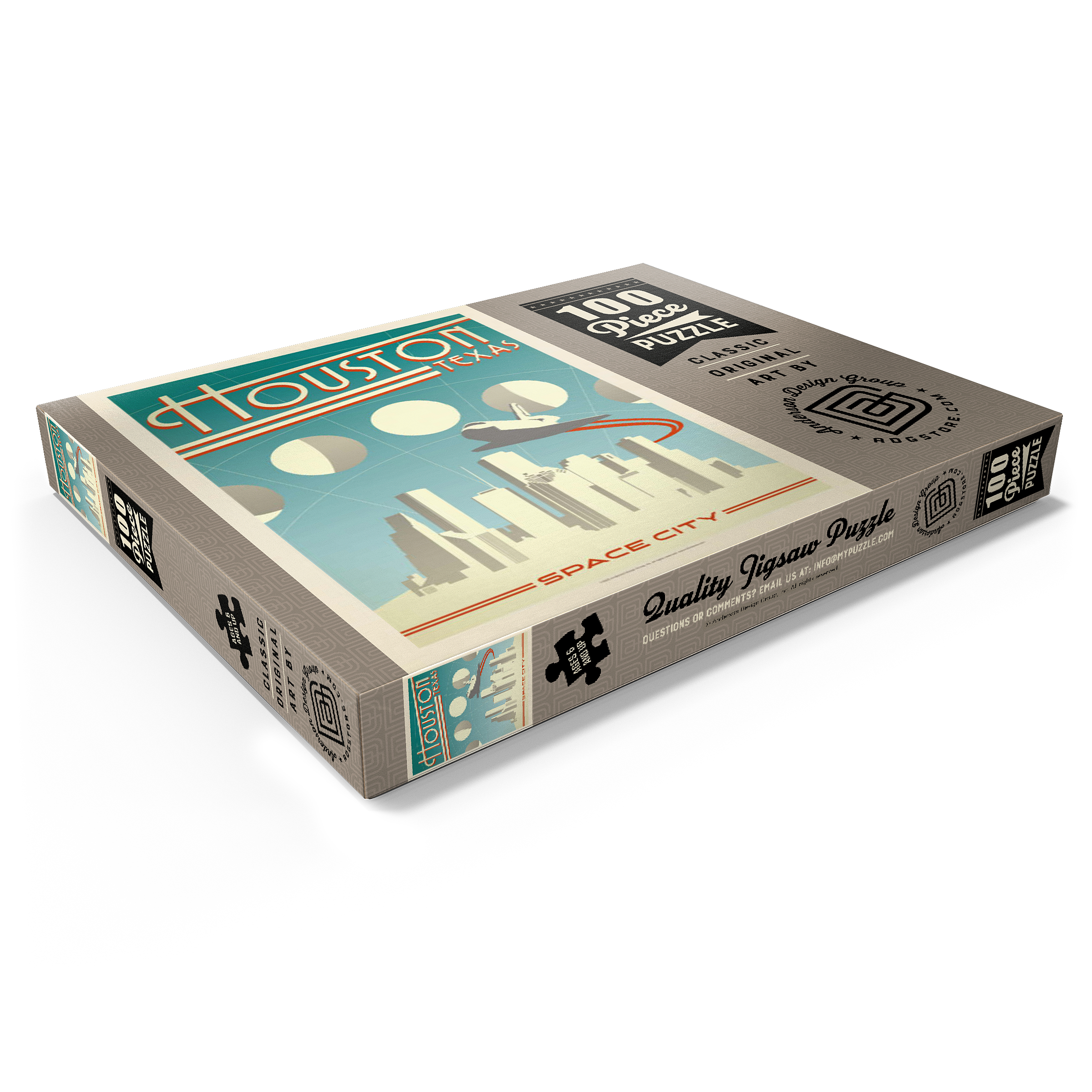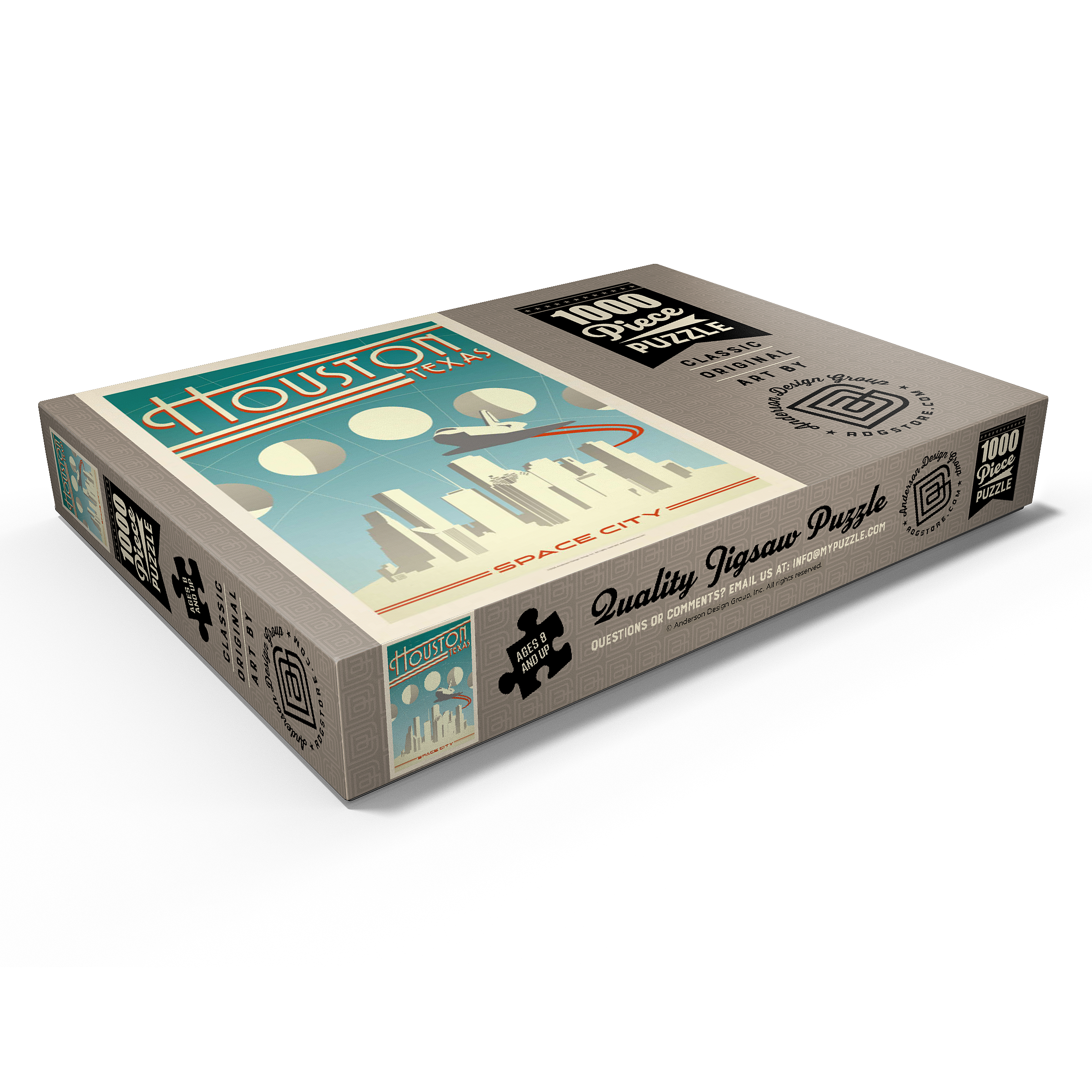 Houston, Texas, bekannt als „Space City“, steht für Raumfahrt, moderne Skyline und kulturelle Vielfalt. Über der Stadt schwebt ein Space Shuttle und verweist auf das Johnson Space Center und Houstons historische Rolle in der US-Raumfahrt. Die markanten Wolkenkratzer unterstreichen die Bedeutung als Zentrum für Energie, Innovation und Wirtschaft. Als viertgrößte Stadt der USA ist Houston auch für Kunst, Museen, kulinarische Vielfalt und Profisport bekannt. Oft als „Energiehauptstadt der Welt“ bezeichnet, gilt die Metropole zugleich als Knotenpunkt für Handel und internationale Vernetzung und verbindet Raumfahrterbe mit urbaner Dynamik.