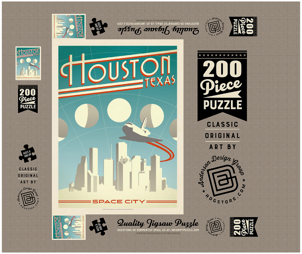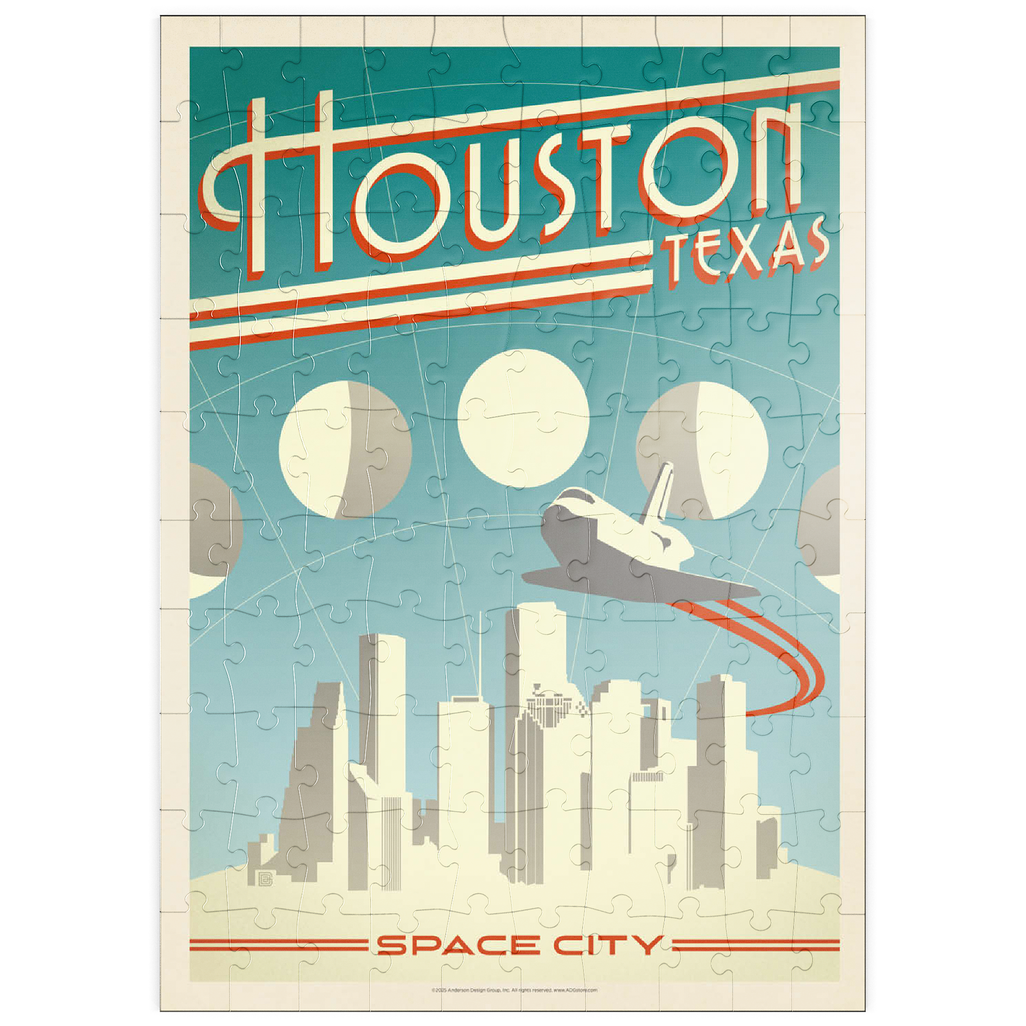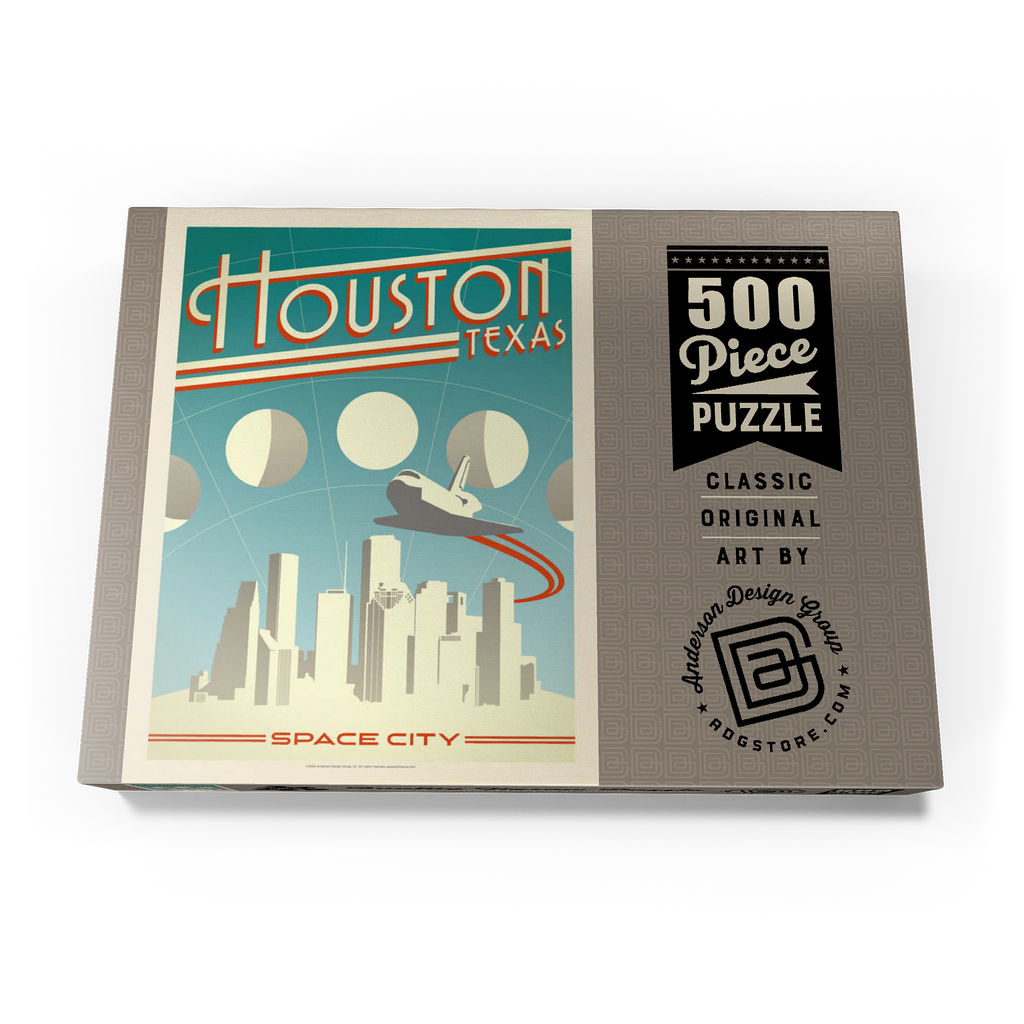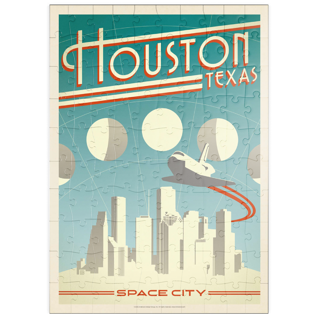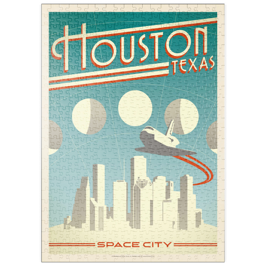 Houston, Texas, bekannt als „Space City“, steht für Raumfahrt, moderne Skyline und kulturelle Vielfalt. Über der Stadt schwebt ein Space Shuttle und verweist auf das Johnson Space Center und Houstons historische Rolle in der US-Raumfahrt. Die markanten Wolkenkratzer unterstreichen die Bedeutung als Zentrum für Energie, Innovation und Wirtschaft. Als viertgrößte Stadt der USA ist Houston auch für Kunst, Museen, kulinarische Vielfalt und Profisport bekannt. Oft als „Energiehauptstadt der Welt“ bezeichnet, gilt die Metropole zugleich als Knotenpunkt für Handel und internationale Vernetzung und verbindet Raumfahrterbe mit urbaner Dynamik.