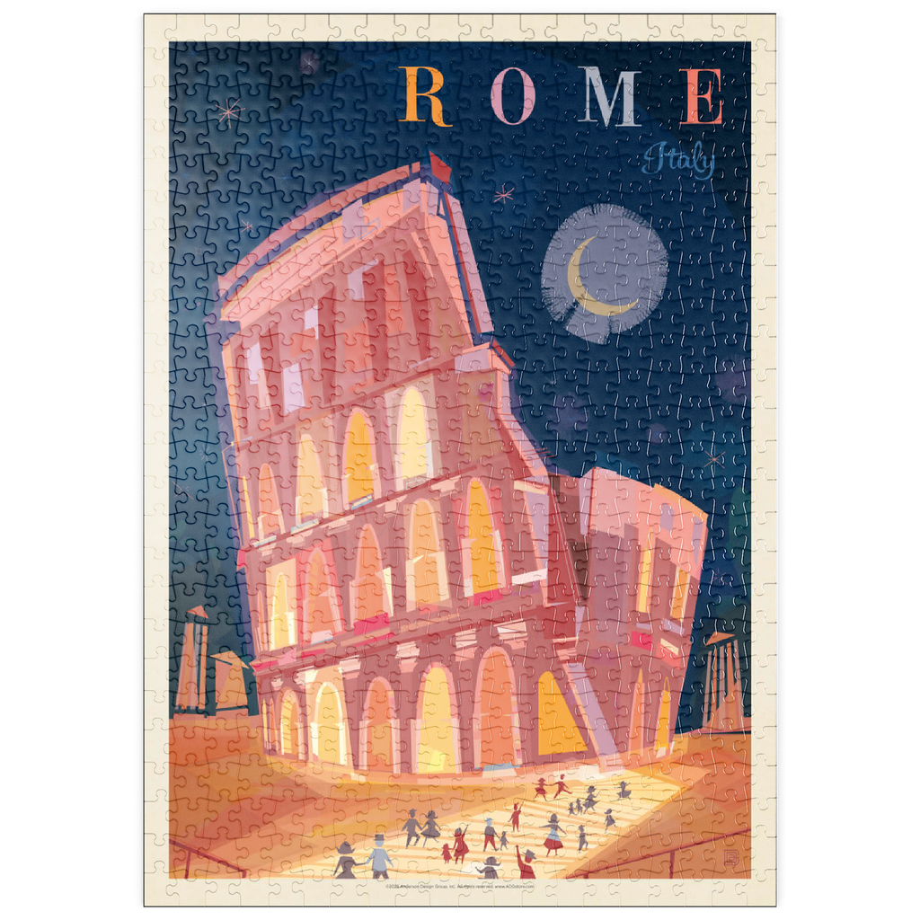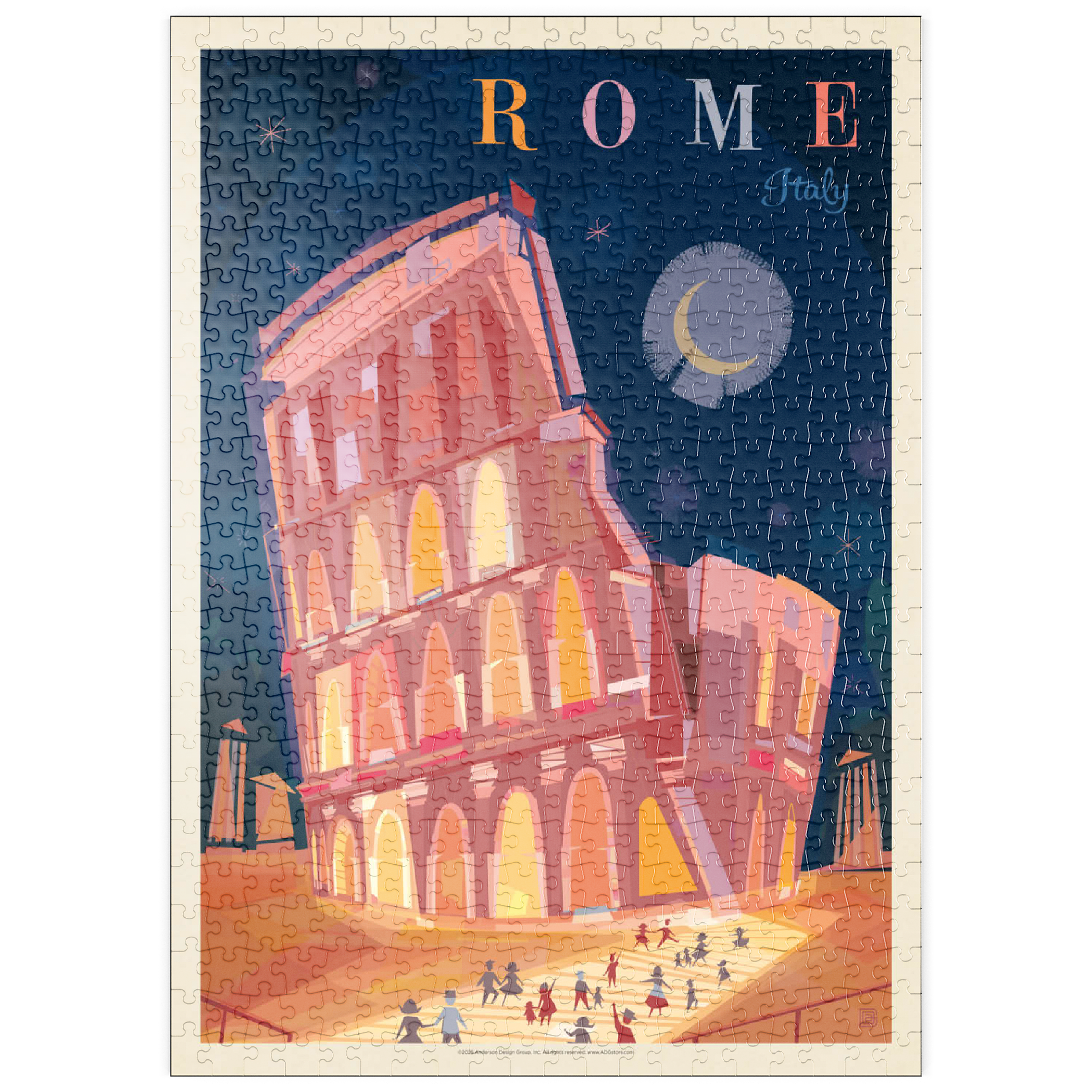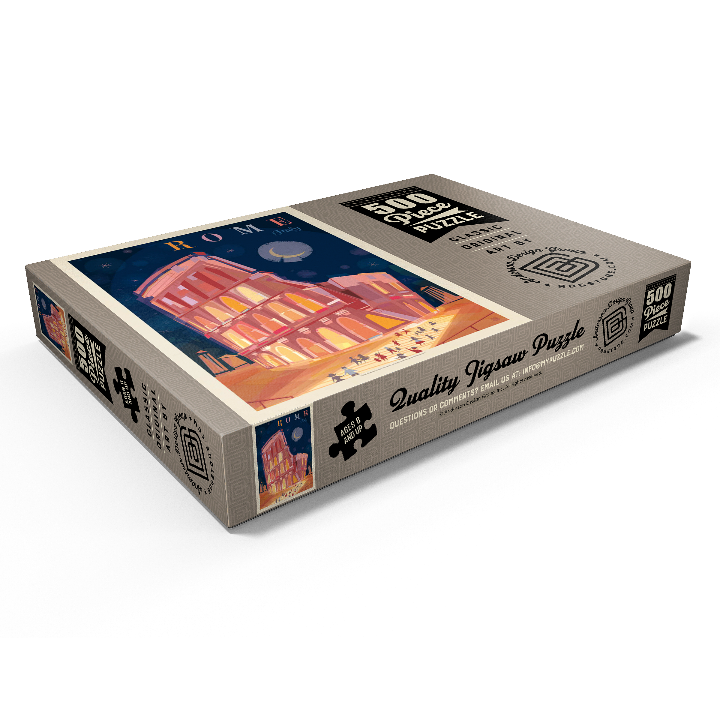Tauchen Sie ein in die zeitlose Pracht Roms, Italien, mit dieser lebendigen Darstellung des ikonischen Kolosseums unter einem Sternenhimmel. Das Kunstwerk fängt die leuchtenden Bögen dieses antiken Amphitheaters ein, das von lebhaften Menschenmengen umgeben ist, die die reiche Geschichte und Kultur der ewigen Stadt feiern.