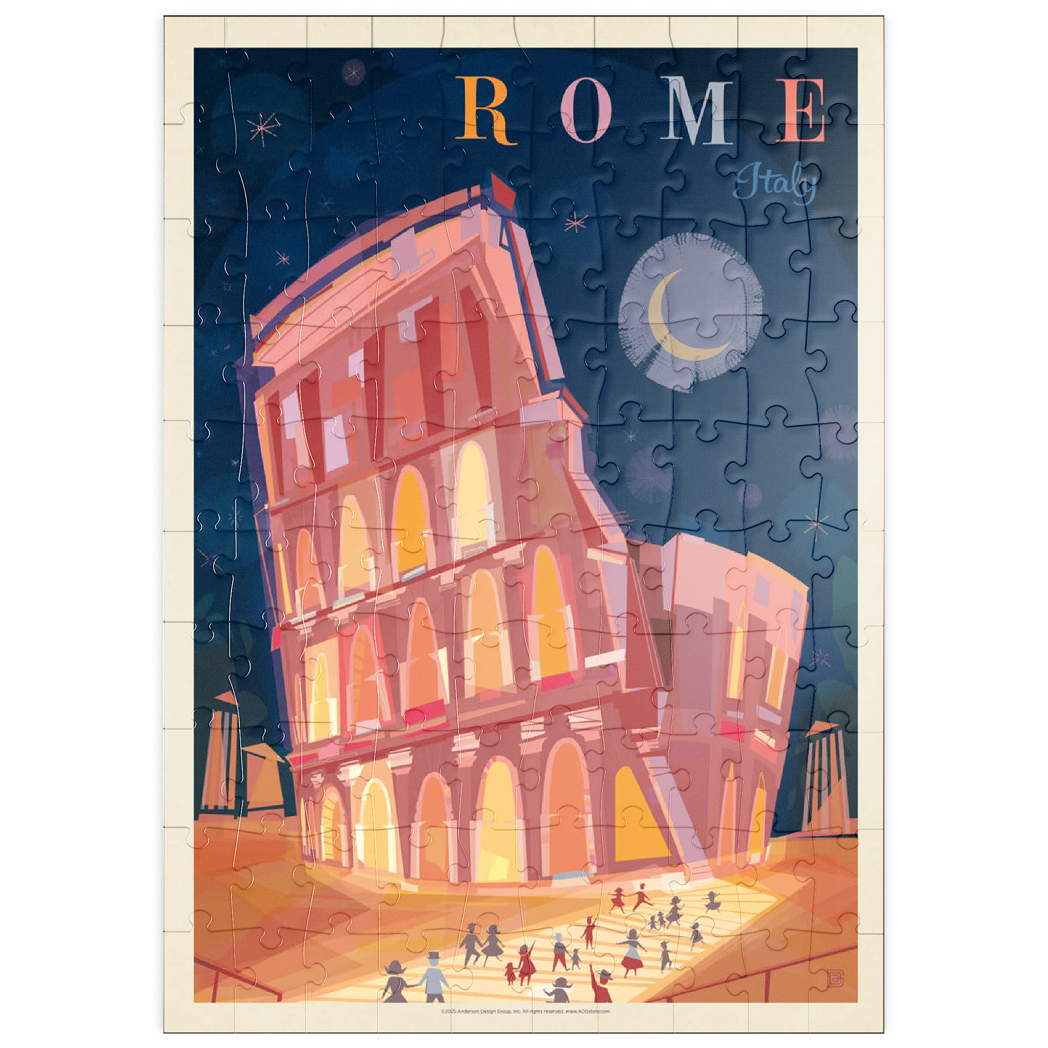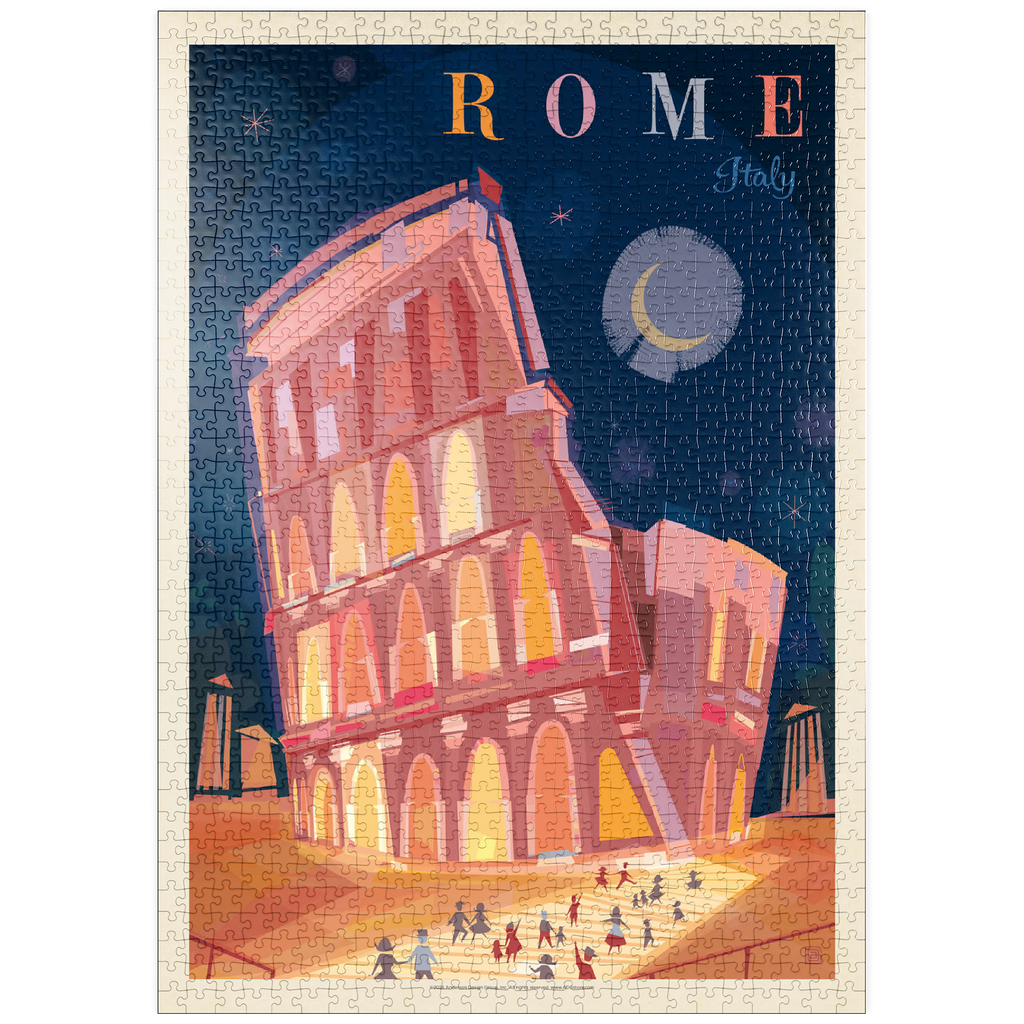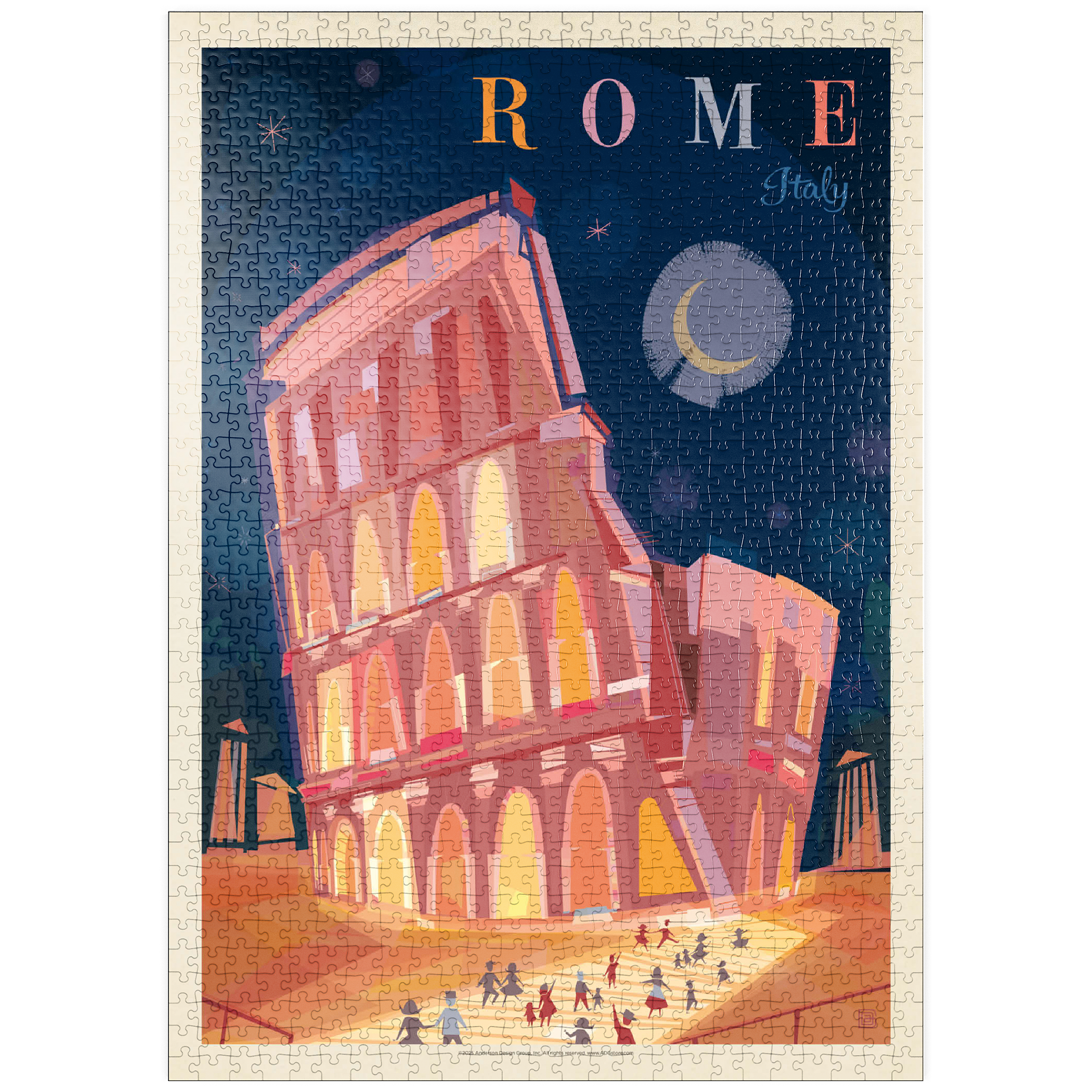 Tauchen Sie ein in die zeitlose Pracht Roms, Italien, mit dieser lebendigen Darstellung des ikonischen Kolosseums unter einem Sternenhimmel. Das Kunstwerk fängt die leuchtenden Bögen dieses antiken Amphitheaters ein, das von lebhaften Menschenmengen umgeben ist, die die reiche Geschichte und Kultur der ewigen Stadt feiern.