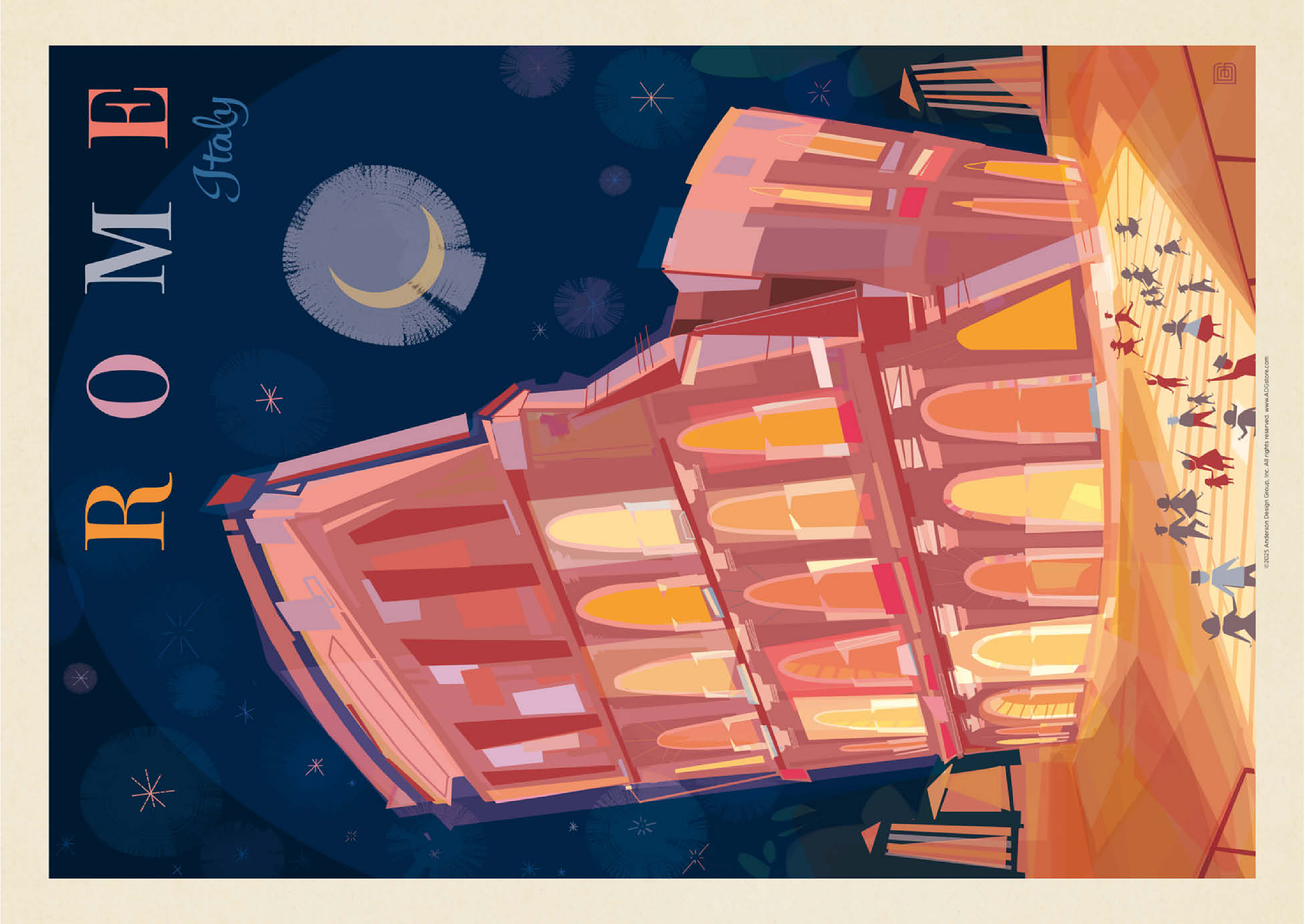 Die 1993 gegründete Anderson Design Group begann mit der Herstellung von CD- und Spielzeugverpackungen, Buchumschlägen, Postern und Logos. Im Jahr 2003 begann der Gründer Joel Anderson, seine Künstler anzuleiten, Werke im Stil der klassischen Plakatkunst des frühen 20. Jahrhunderts zu schaffen. Ihre erste Posterserie war die Kollektion Spirit of Nashville - eine Gruppe von Drucken, die die Geschichte und den Charme ihrer Heimatstadt zelebrierten. Im Laufe der Zeit entwickelte sich das Unternehmen zu einem Illustrations- und Designstudio mit einer Postergalerie und einer Druckerei im Erdgeschoss.Im Jahr 2010, nachdem er über 150 verschiedene Nashville-Designs produziert hatte, begann Joel eine neue Posterserie mit dem Namen The Art & Soul of America - eine Reisepostersammlung mit meinen liebsten amerikanischen Reisezielen. Es begann mit einer kleinen Sammlung von Drucken mit Motiven aus Städten wie Seattle, New Orleans, New York und Chicago. Die Serie war ein sofortiger Erfolg, und die Anderson Design Group erhielt bald Anfragen aus den gesamten USA für neue Kunstwerke, die andere Orte zeigen, die für die Menschen etwas Besonderes sind - Orte, an denen Erinnerungen geschaffen und Seelen bewegt werden.