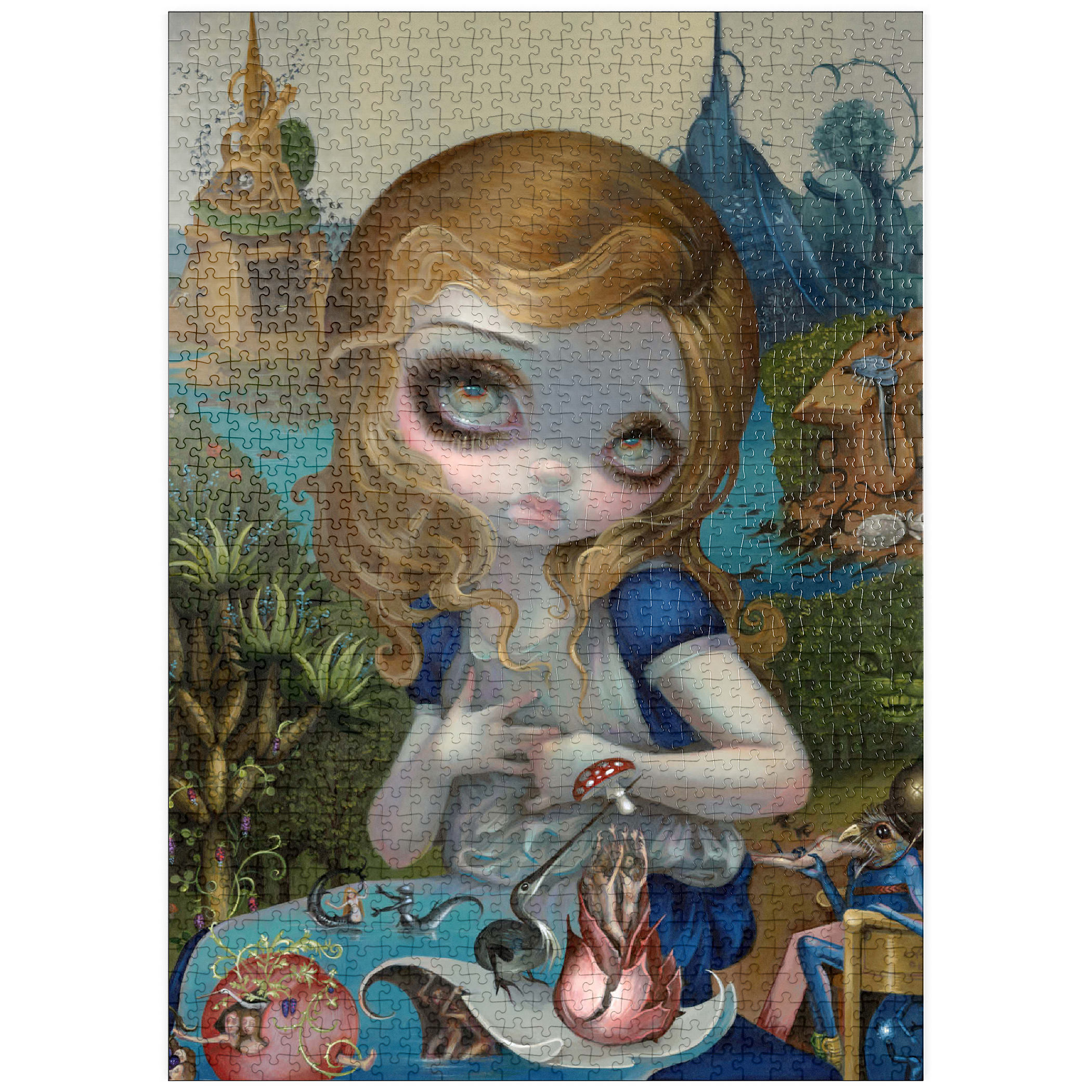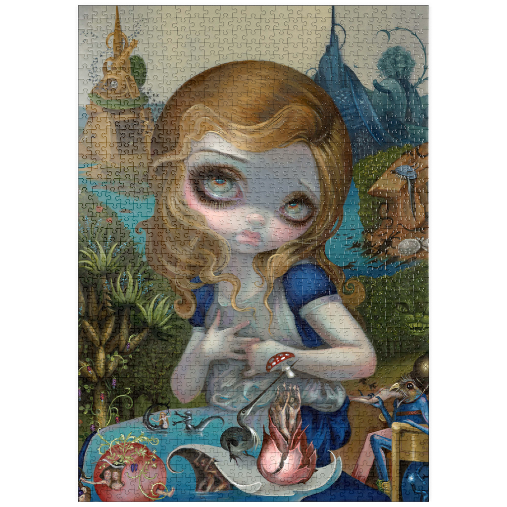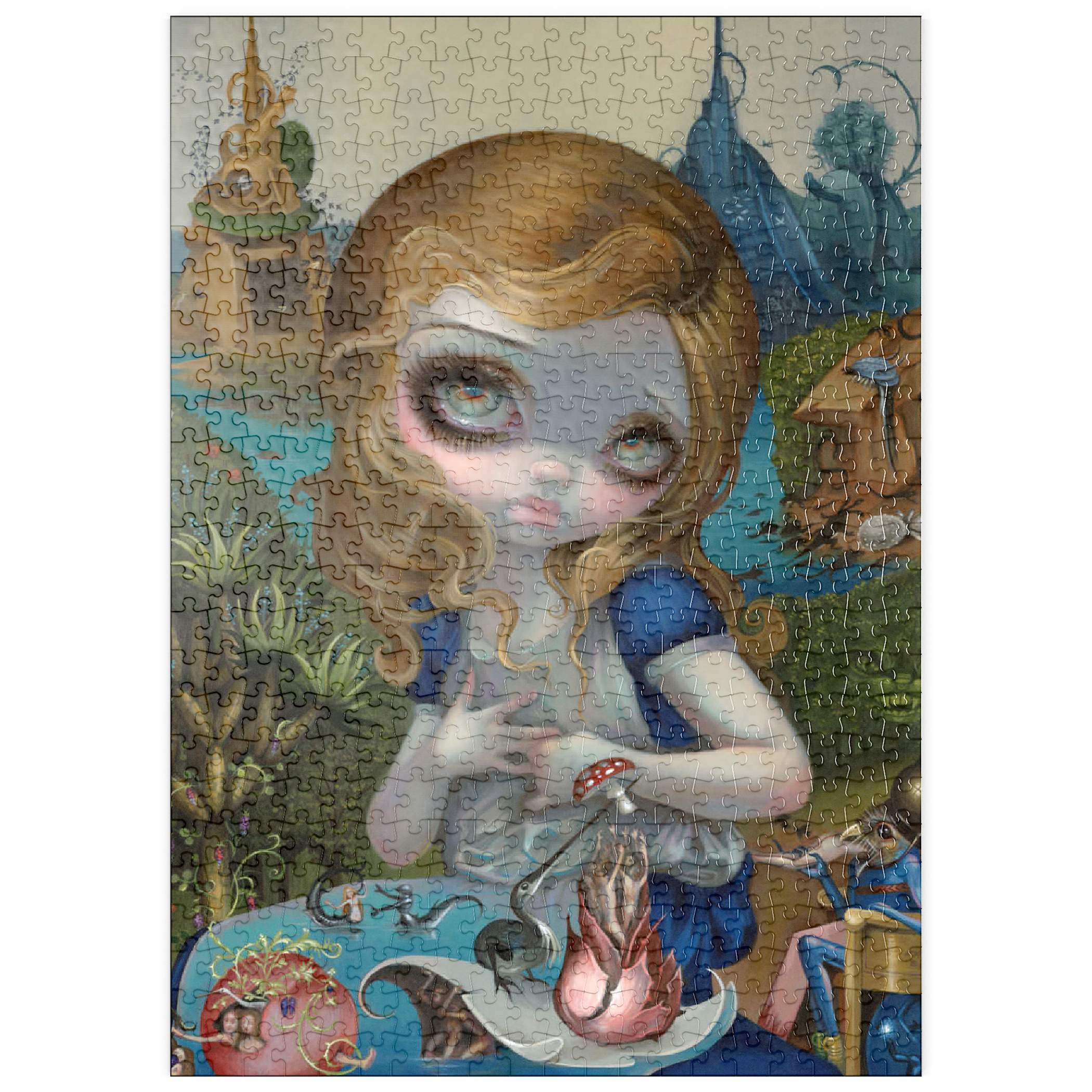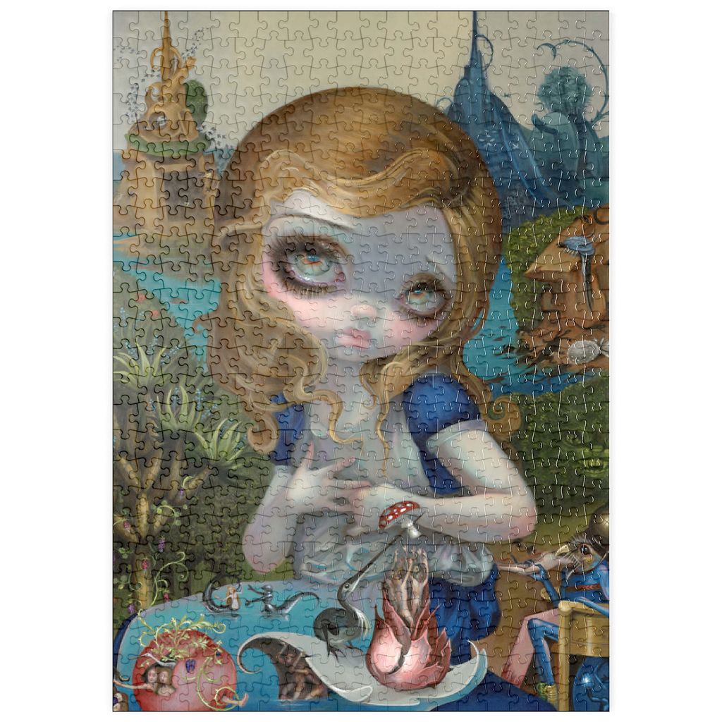 Enträtseln Sie ein skurriles Kunstgeschichtsrätsel! Begeben Sie sich mit Alice auf eine Reise in einen fantastischen „Garten der Lüste“, inspiriert von Bosch und neu interpretiert mit Kobolden, Vögeln, neugierigen Kreaturen, Alices Pilzen und sogar der Grinsekatze. Setzen Sie dieses einzigartige Kunstwerk aus der Serie „Alice in Other Lands“ zusammen. Ein entzückendes Puzzle für Kunstliebhaber und Fantasy-Fans!