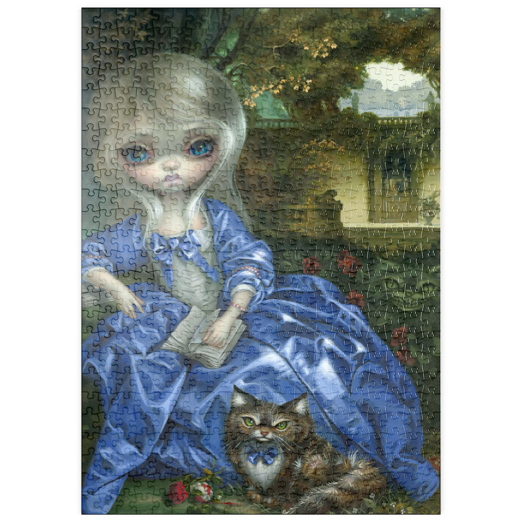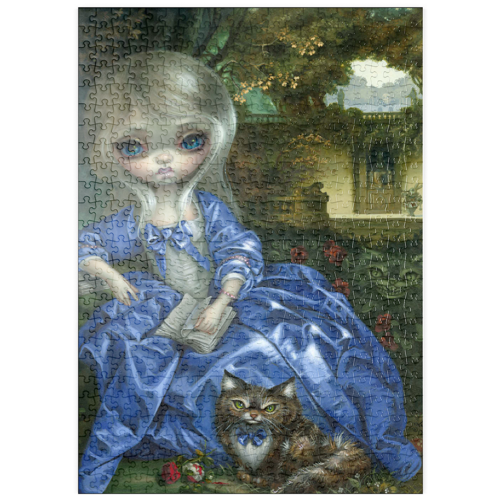 Tauchen Sie mit dem Puzzle -Daydreaming Wonderland- in eine wundersame Welt ein! Dieses bezaubernde Puzzle verbindet Alice im Wunderland mit dem eleganten Rokoko-Stil von Fragonard und Boucher. Setzen Sie Alice in ihren Kleidern, das weiße Kaninchen, Humpty Dumpty, die Herzkönigin und andere Hinweise auf das Wunderland zusammen, während sich ihr gewöhnliches Leben verändert. Ein reizvolles Puzzle für Kunstliebhaber und Alice-Fans. Teil der Serie -Alice in Other Lands-.