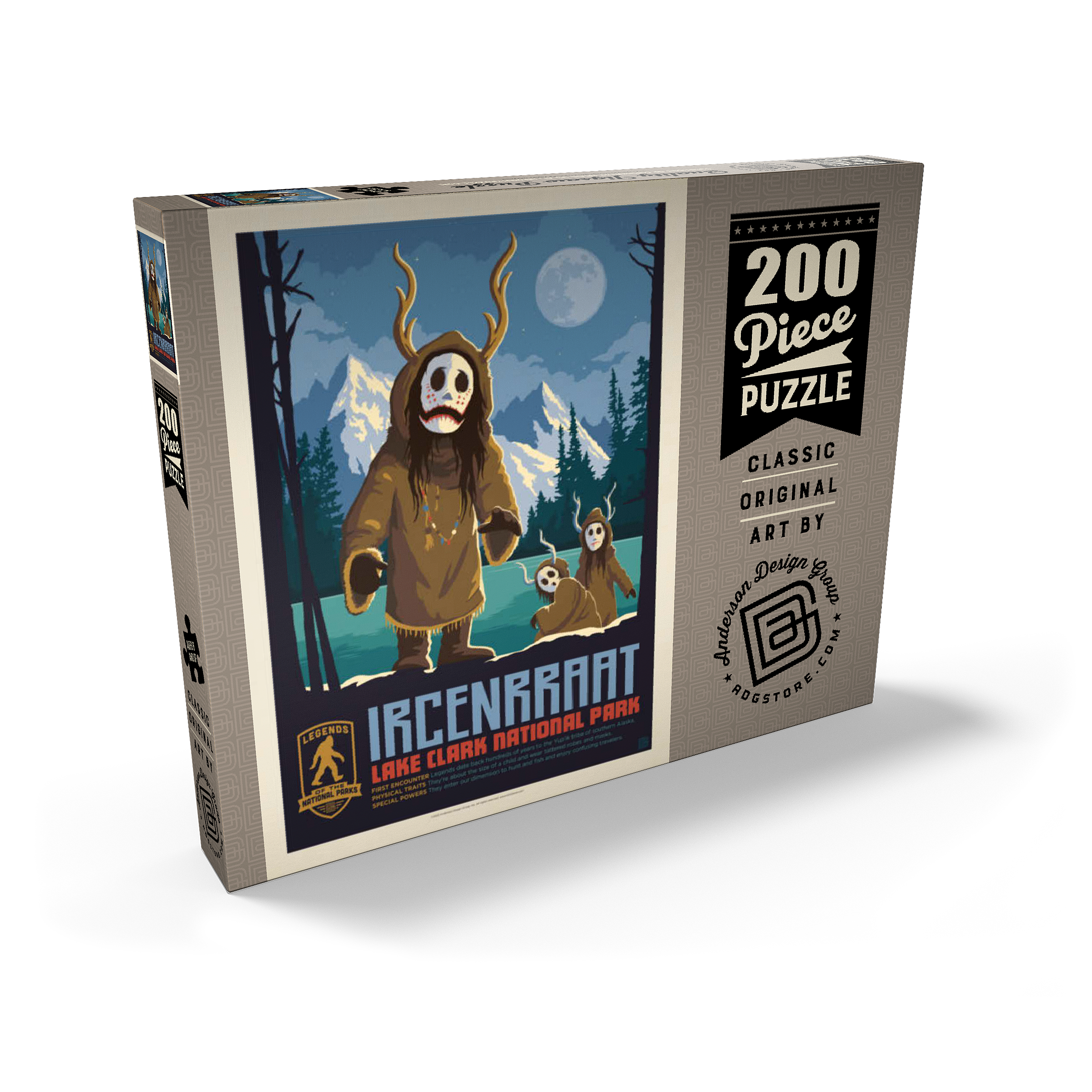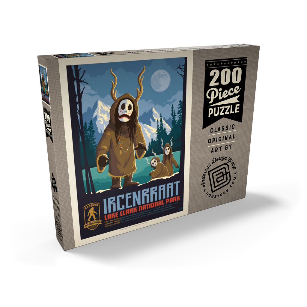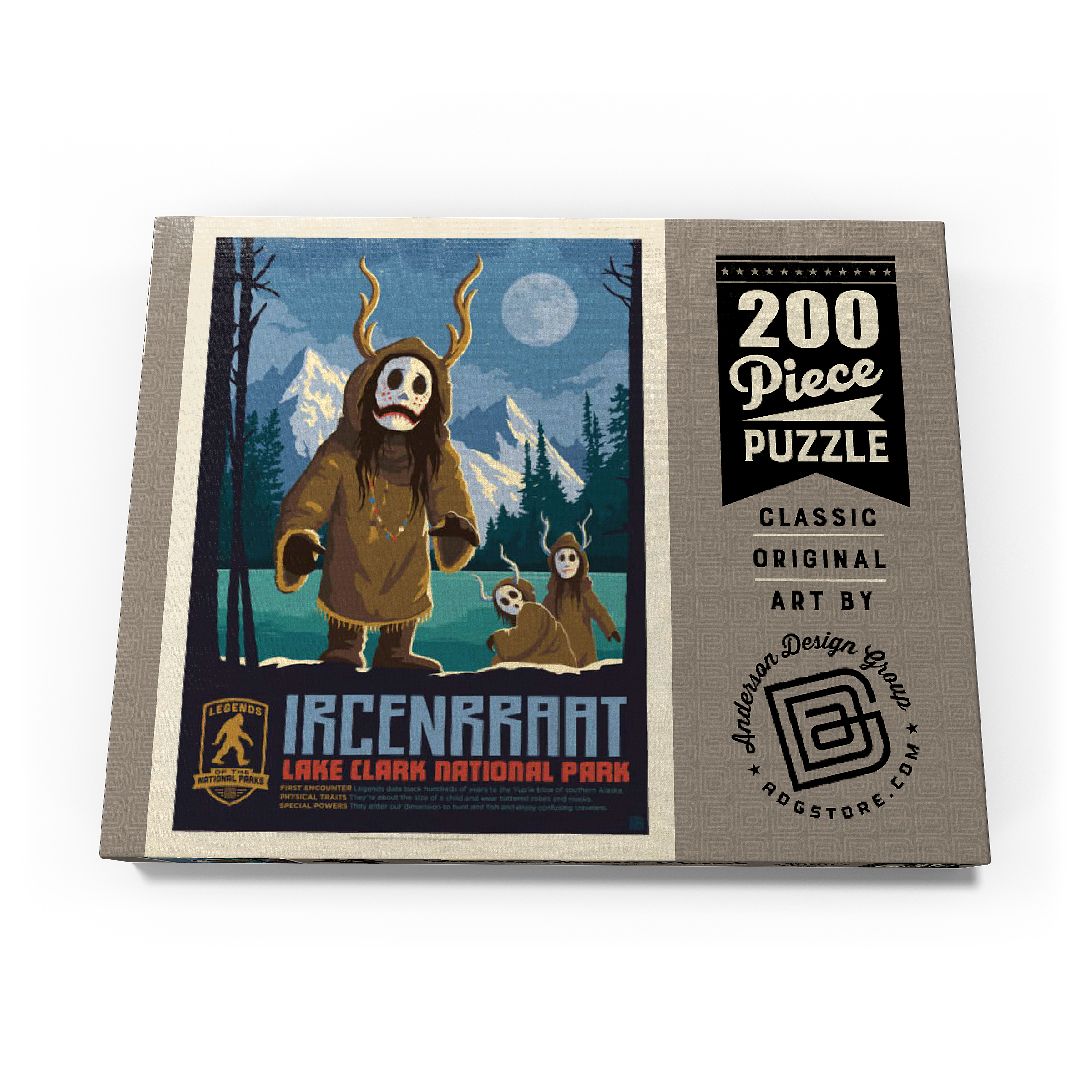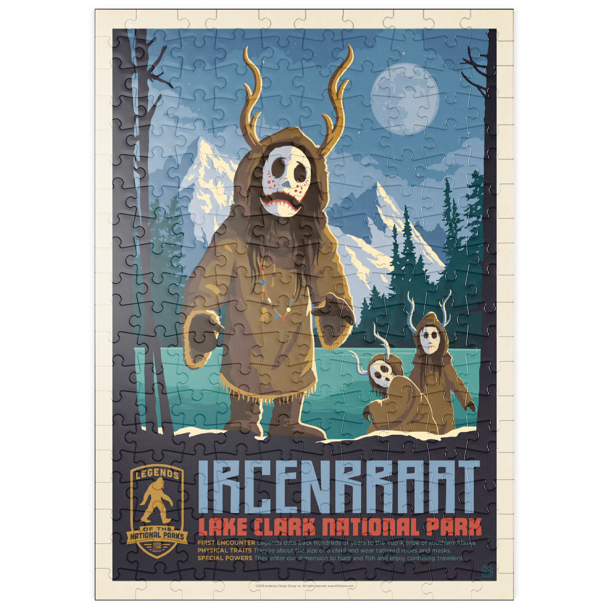 Die Ircenrraat sind unheimliche, übernatürliche Wesen aus der Folklore der Yup'ik, von denen man annimmt, dass sie die abgelegene Wildnis des Lake Clark National Park in Alaska durchstreifen. Der Legende nach bewegen sich diese mysteriösen Wesen zwischen den Dimensionen und tauchen in unserer Welt auf, um zu jagen, zu fischen und Reisende zu verwirren. Sie werden als kindliche Gestalten beschrieben, die zerschlissene Gewänder und gespenstische Masken tragen. Man sagt, dass sie in den Schatten der schroffen Berge und eisigen Seen Alaskas lauern und oft spurlos verschwinden. Diese Illustration im Vintage-Stil zeigt die beunruhigende Präsenz der Ircenrraat bei Vollmond vor einem Hintergrund aus schneebedeckten Gipfeln und dunklen Wäldern. Dieses Kunstwerk ist ein Muss für Folklore-Enthusiasten, Liebhaber von Kryptiden und Fans indigener Legenden und erweckt einen schaurigen Mythos zum Leben.