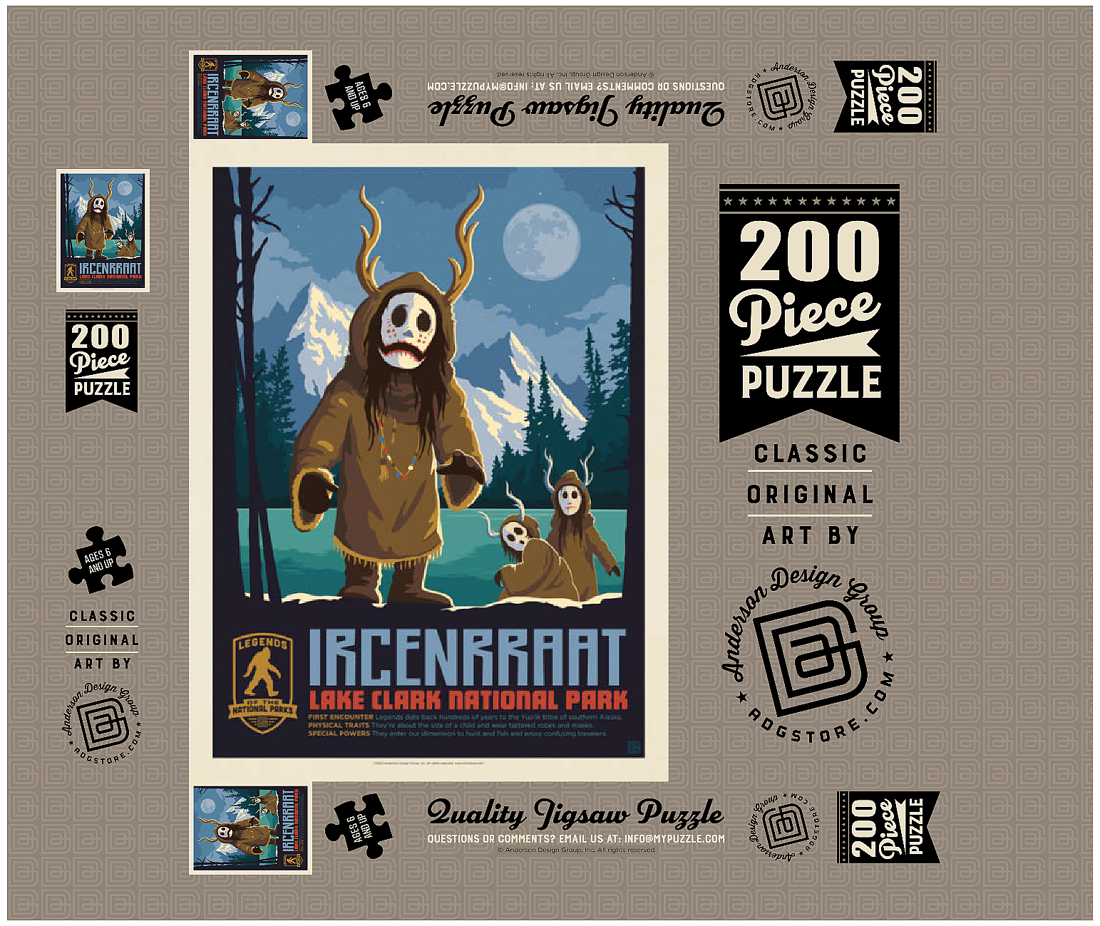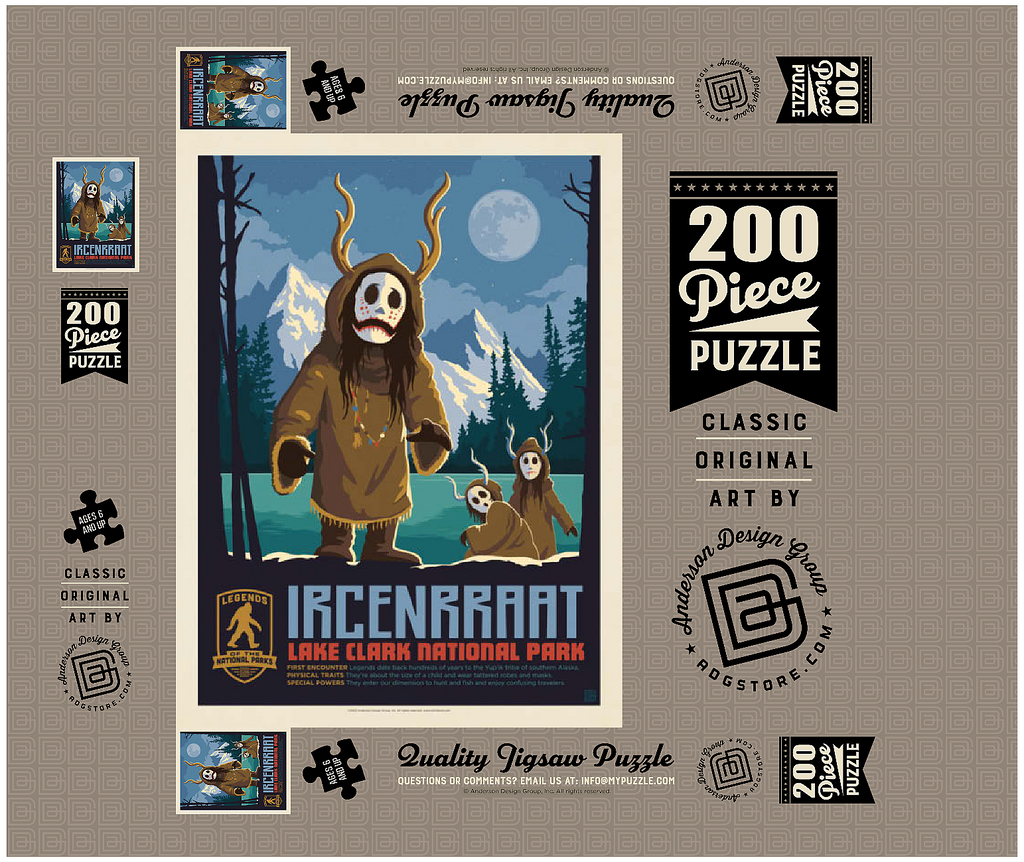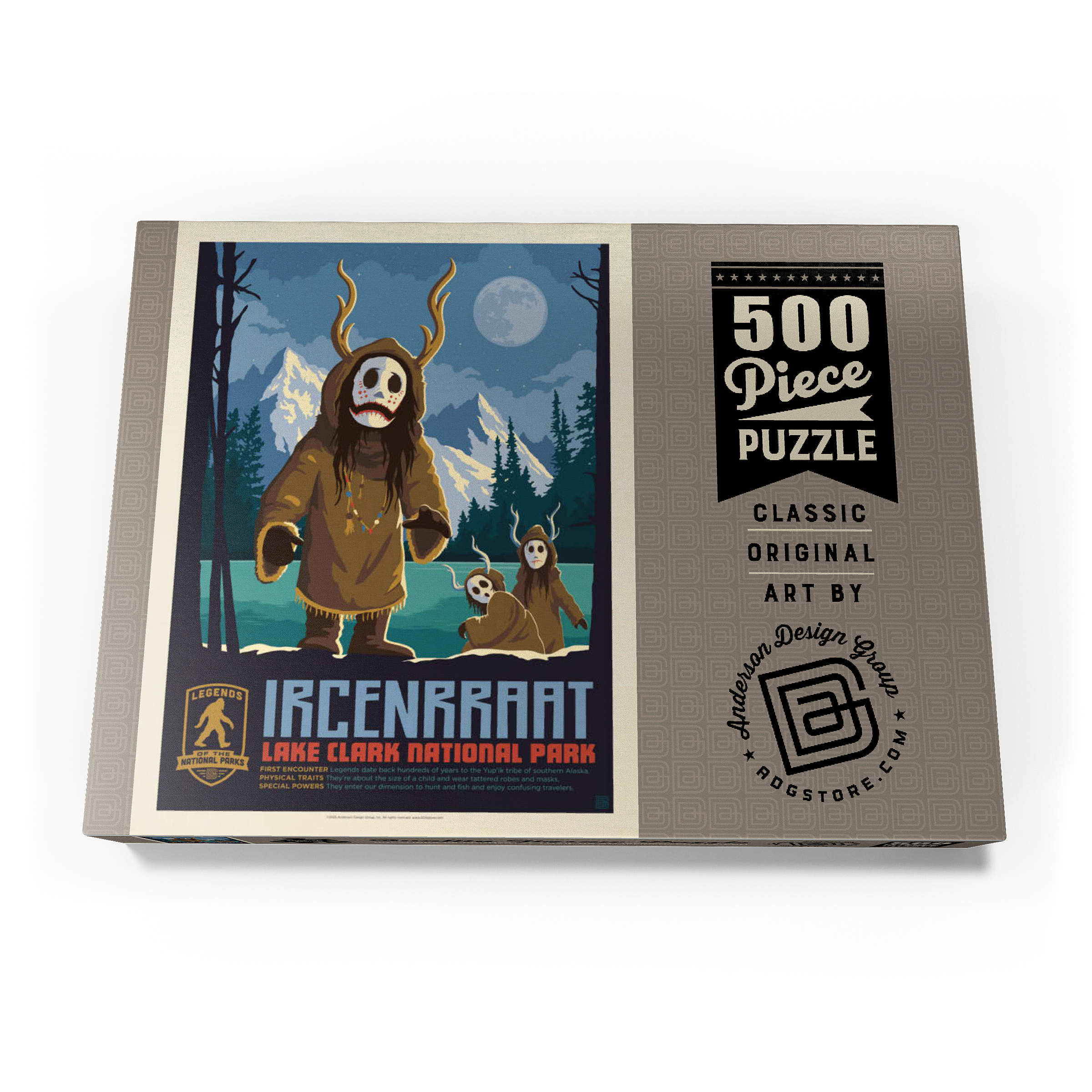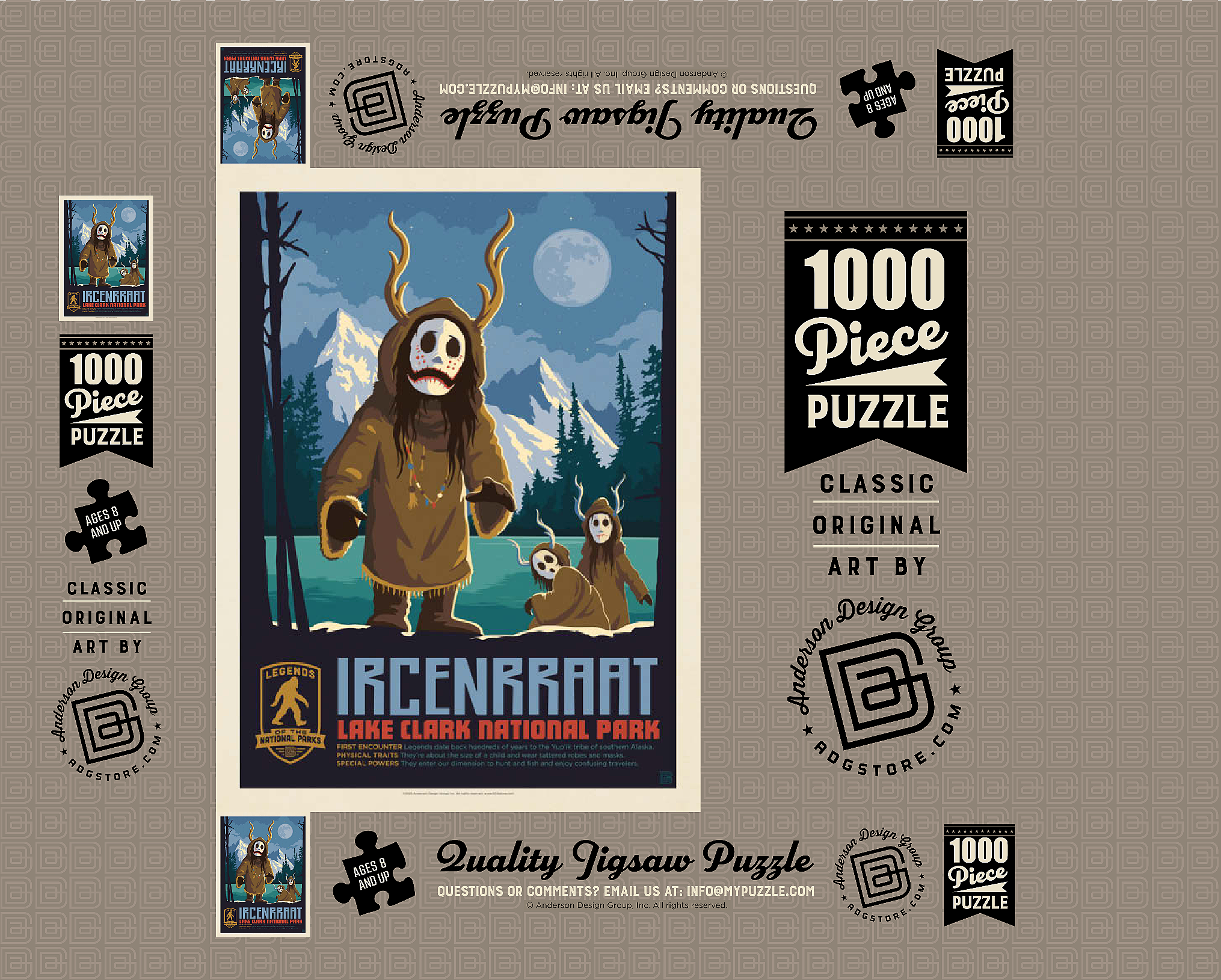 Die Ircenrraat sind unheimliche, übernatürliche Wesen aus der Folklore der Yup'ik, von denen man annimmt, dass sie die abgelegene Wildnis des Lake Clark National Park in Alaska durchstreifen. Der Legende nach bewegen sich diese mysteriösen Wesen zwischen den Dimensionen und tauchen in unserer Welt auf, um zu jagen, zu fischen und Reisende zu verwirren. Sie werden als kindliche Gestalten beschrieben, die zerschlissene Gewänder und gespenstische Masken tragen. Man sagt, dass sie in den Schatten der schroffen Berge und eisigen Seen Alaskas lauern und oft spurlos verschwinden. Diese Illustration im Vintage-Stil zeigt die beunruhigende Präsenz der Ircenrraat bei Vollmond vor einem Hintergrund aus schneebedeckten Gipfeln und dunklen Wäldern. Dieses Kunstwerk ist ein Muss für Folklore-Enthusiasten, Liebhaber von Kryptiden und Fans indigener Legenden und erweckt einen schaurigen Mythos zum Leben.