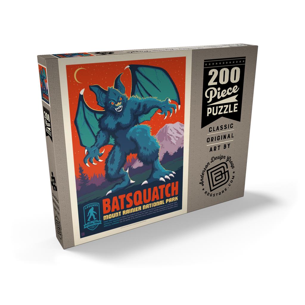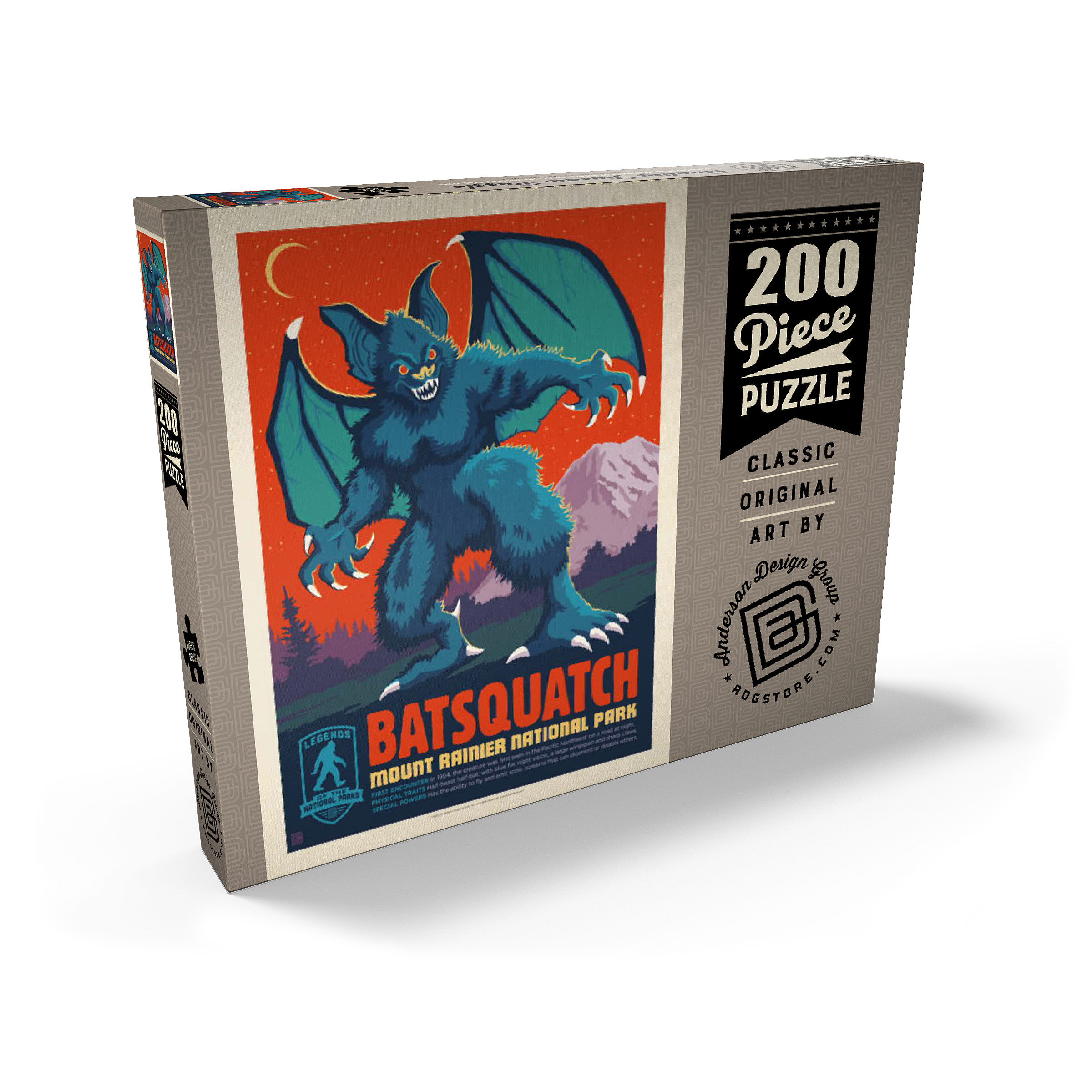 Der Batsquatch ist ein legendäres Kryptid, das angeblich in den Wäldern des Mount Rainier National Park in Washington spukt. Diese furchterregende Kreatur wurde erstmals 1994 im pazifischen Nordwesten gesichtet und wird als halb Fledermaus-, halb Tierhybrid mit glühend roten Augen, messerscharfen Klauen und einer riesigen Flügelspannweite beschrieben. Batsquatch soll über Nachtsicht und die Fähigkeit zu fliegen verfügen und ist außerdem für seinen lauten Schrei bekannt, der diejenigen, die ihn hören, verwirren oder außer Gefecht setzen kann. Diese Illustration im Vintage-Stil zeigt den unheimlichen Kryptoiden vor einem feurigen Dämmerungshimmel, mit der Silhouette des Mount Rainier im Hintergrund. Dieses Kunstwerk ist ein Muss für alle Krypto-Enthusiasten, Bigfoot-Gläubigen und Fans der Legenden des pazifischen Nordwestens und erweckt eine der geheimnisvollsten Kreaturen der Region zum Leben.
