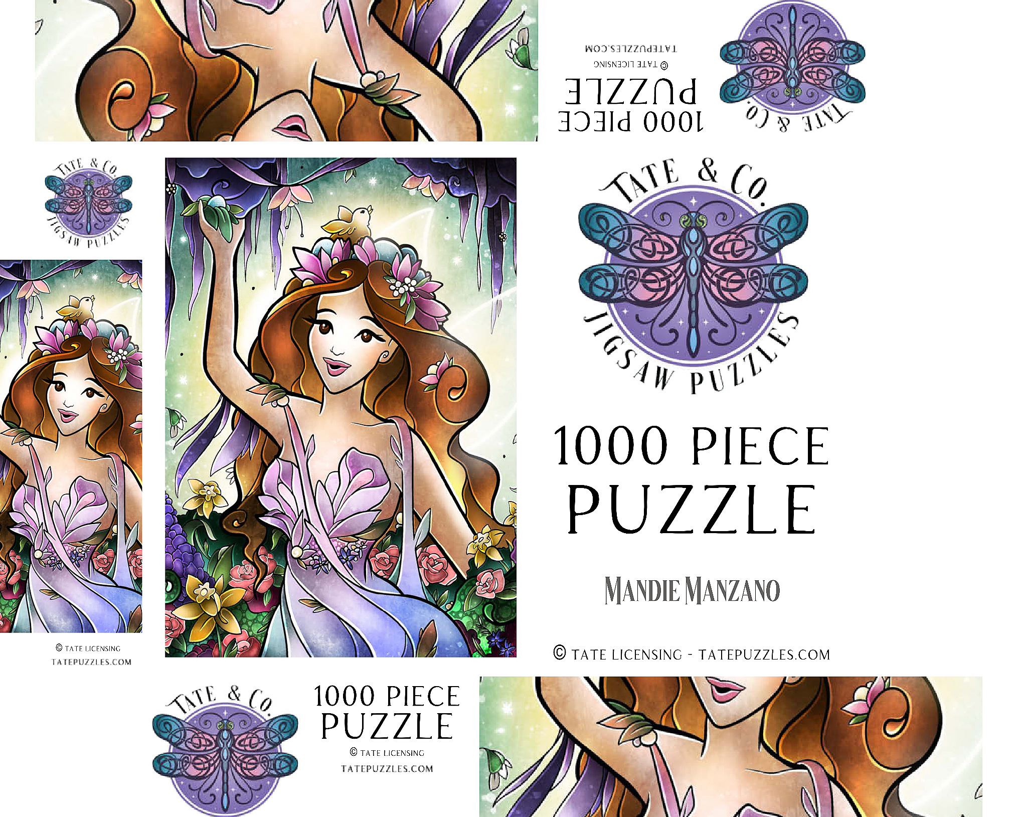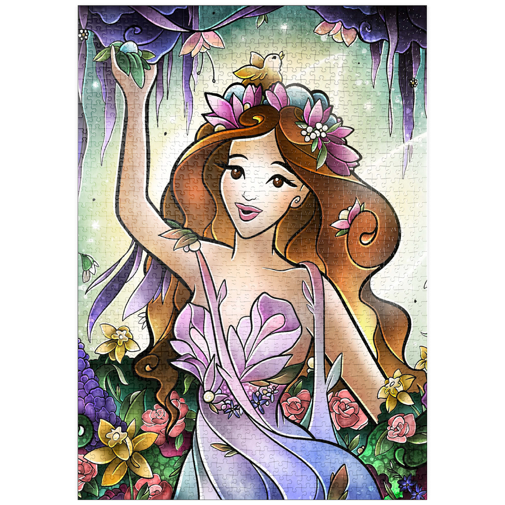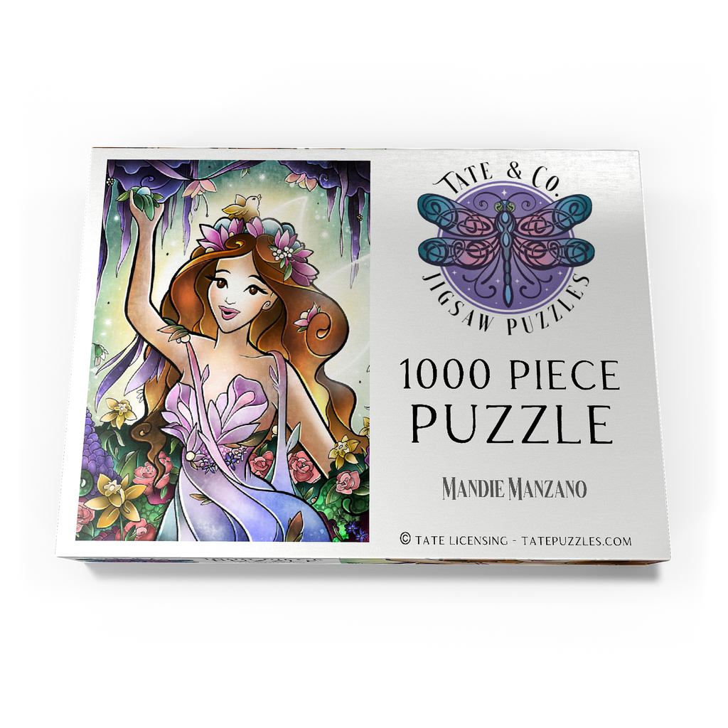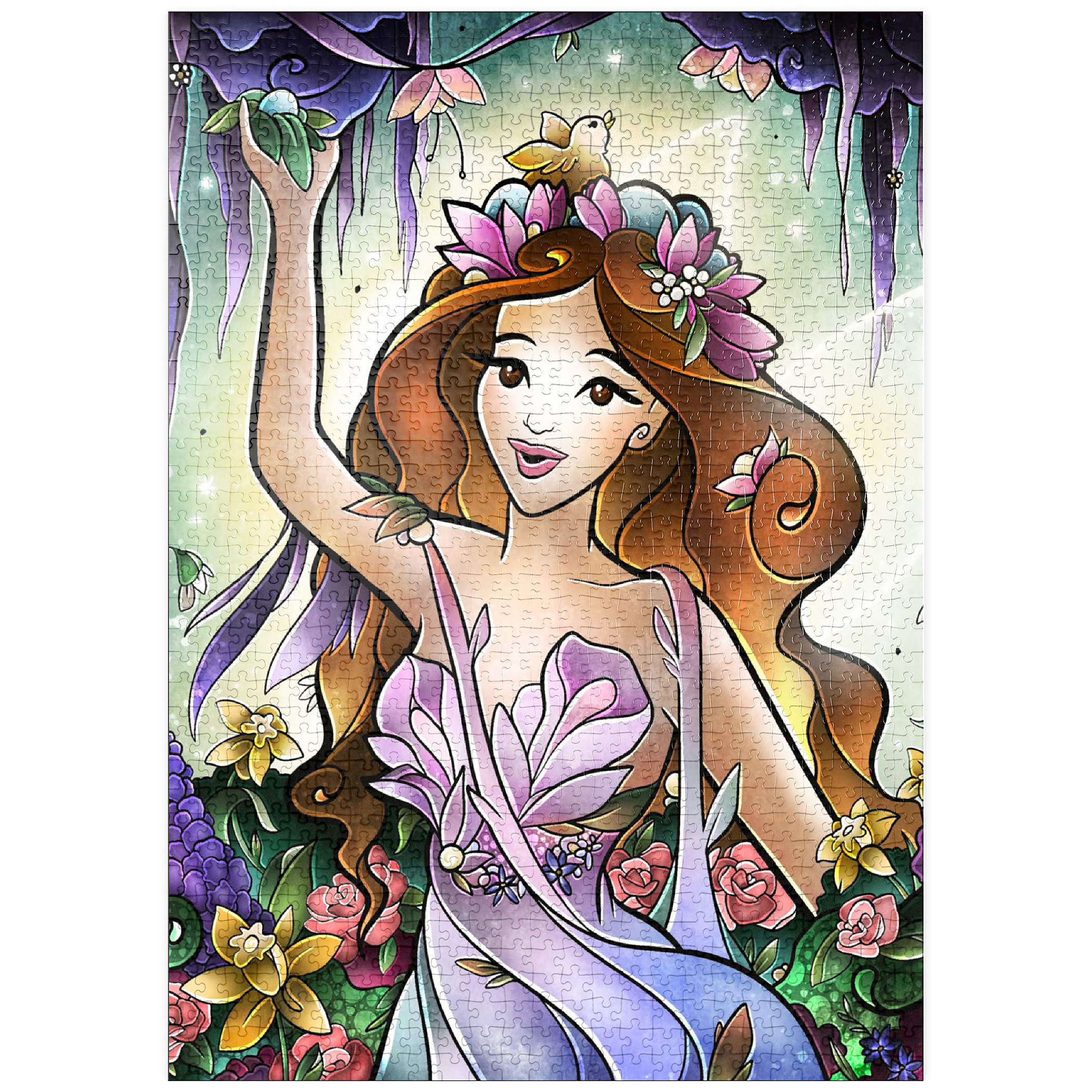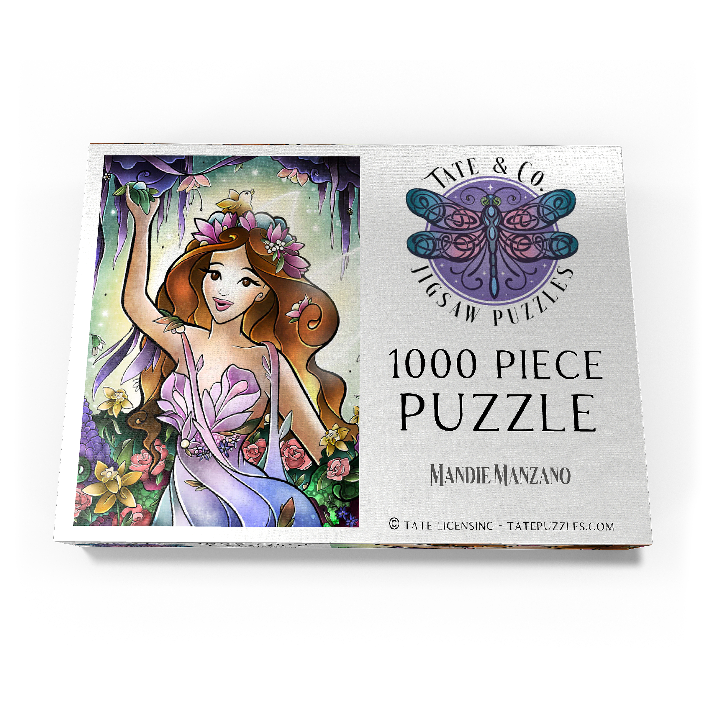 Erwecken Sie die Schönheit des Frühlings zum Leben mit „Flora, die Frühlingsfee“ von Mandie Manzano! Setzen Sie dieses bezaubernde Bild einer strahlenden Fee zusammen, die von einer Fülle bunter Blüten umgeben ist. Mit ihrem wallenden rotbraunen Haar, das mit Blumen geschmückt ist, und einem kleinen Vogel, der auf ihrem Kopf sitzt, verkörpert Flora die Lebendigkeit dieser Jahreszeit. Üppiges Laub und zarte Blütenblätter schaffen eine verspielte und fröhliche Atmosphäre. Entdecken Sie die Magie des Frühlings in jedem einzigartig geformten Puzzleteil.
