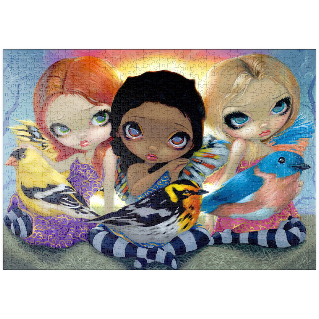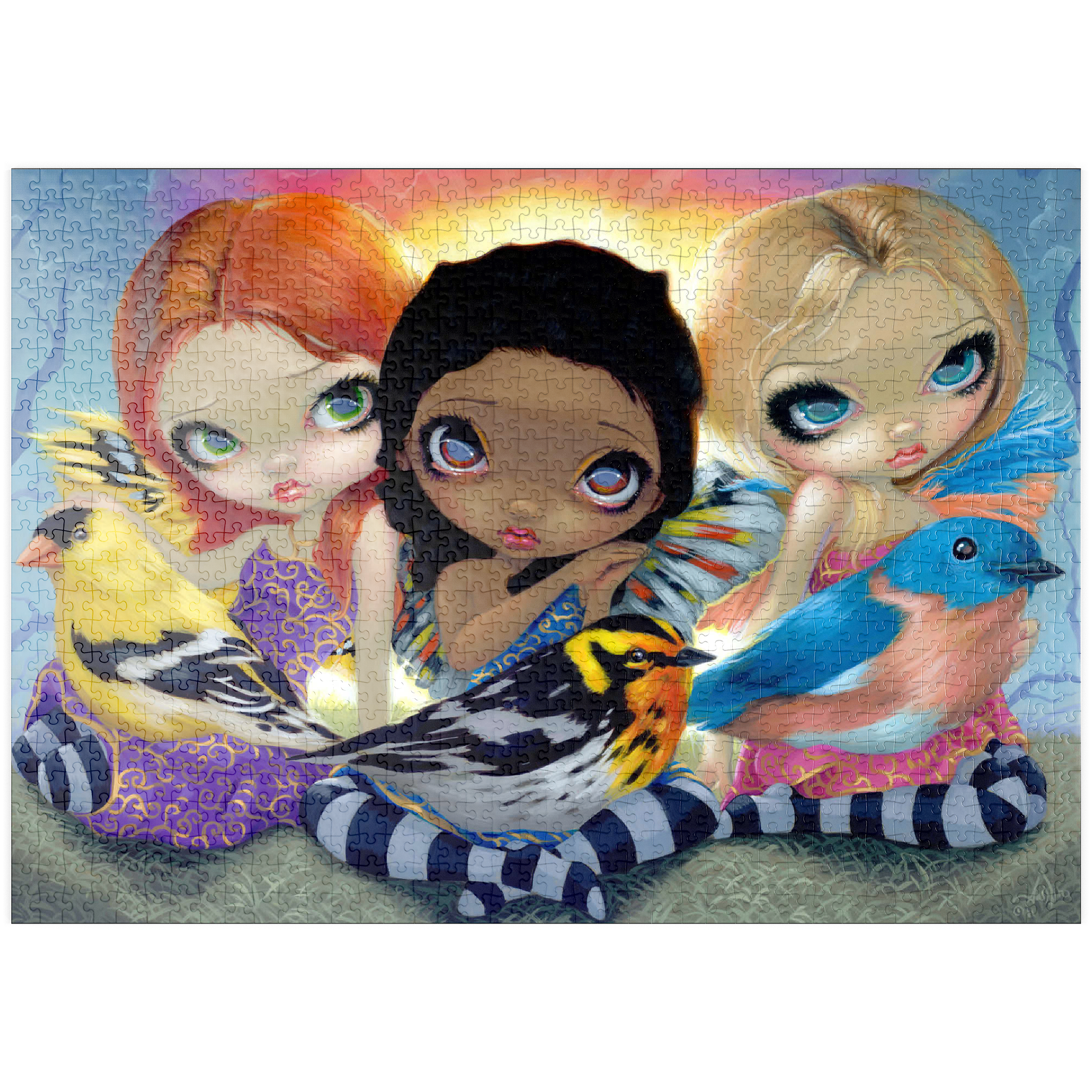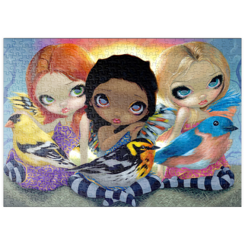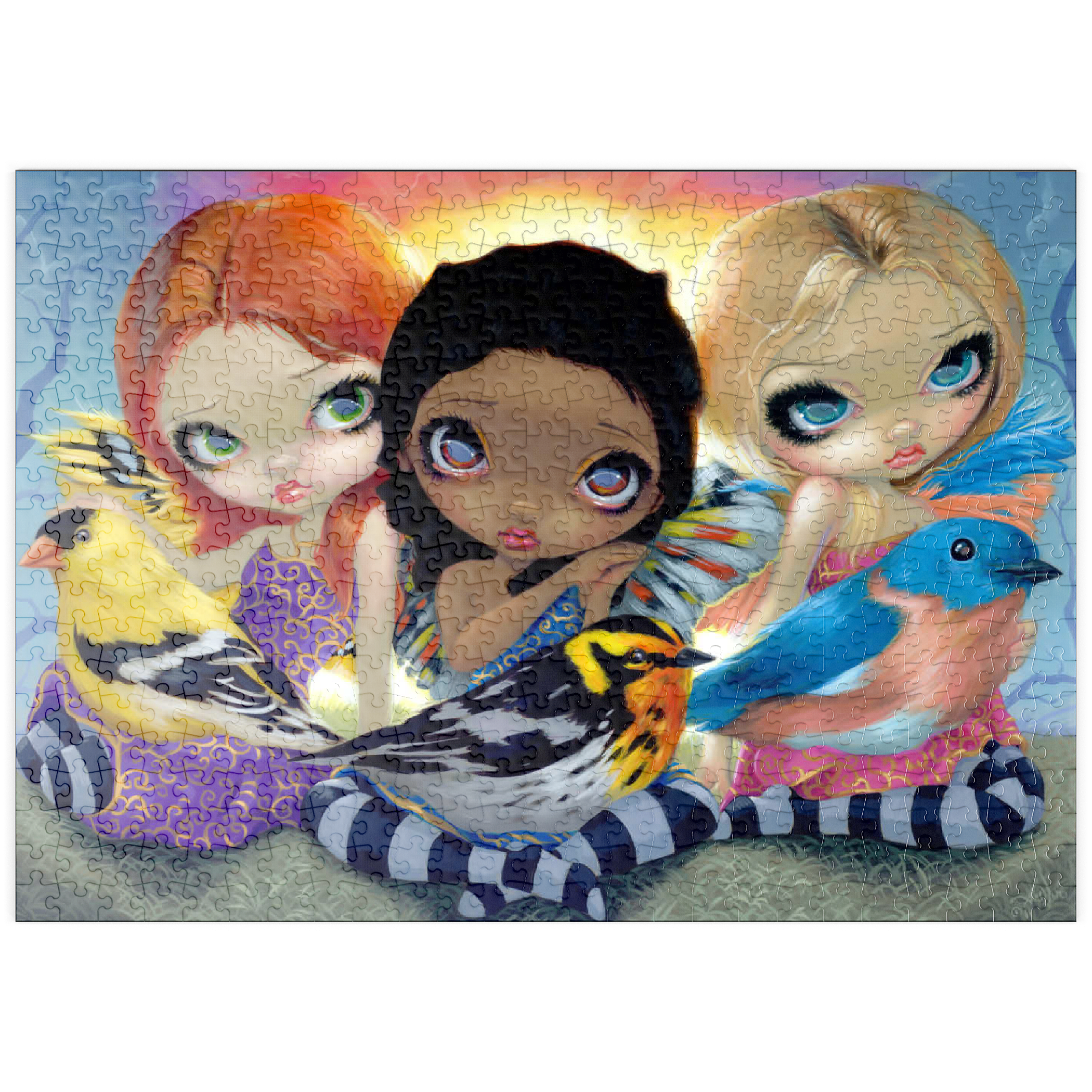 Setzen Sie mit dem Puzzle „Three Little Birds“ ein harmonisches Bild zusammen! Inspiriert von dem Song von Bob Marley, setzen Sie drei süße Feen zusammen, die jeweils einen kleinen Vogel im Arm halten, während hinter ihnen die Morgensonne sanft aufgeht. Entdecken Sie dieses friedliche und herzerwärmende Bild. Alles wird gut ... beim Puzzeln!