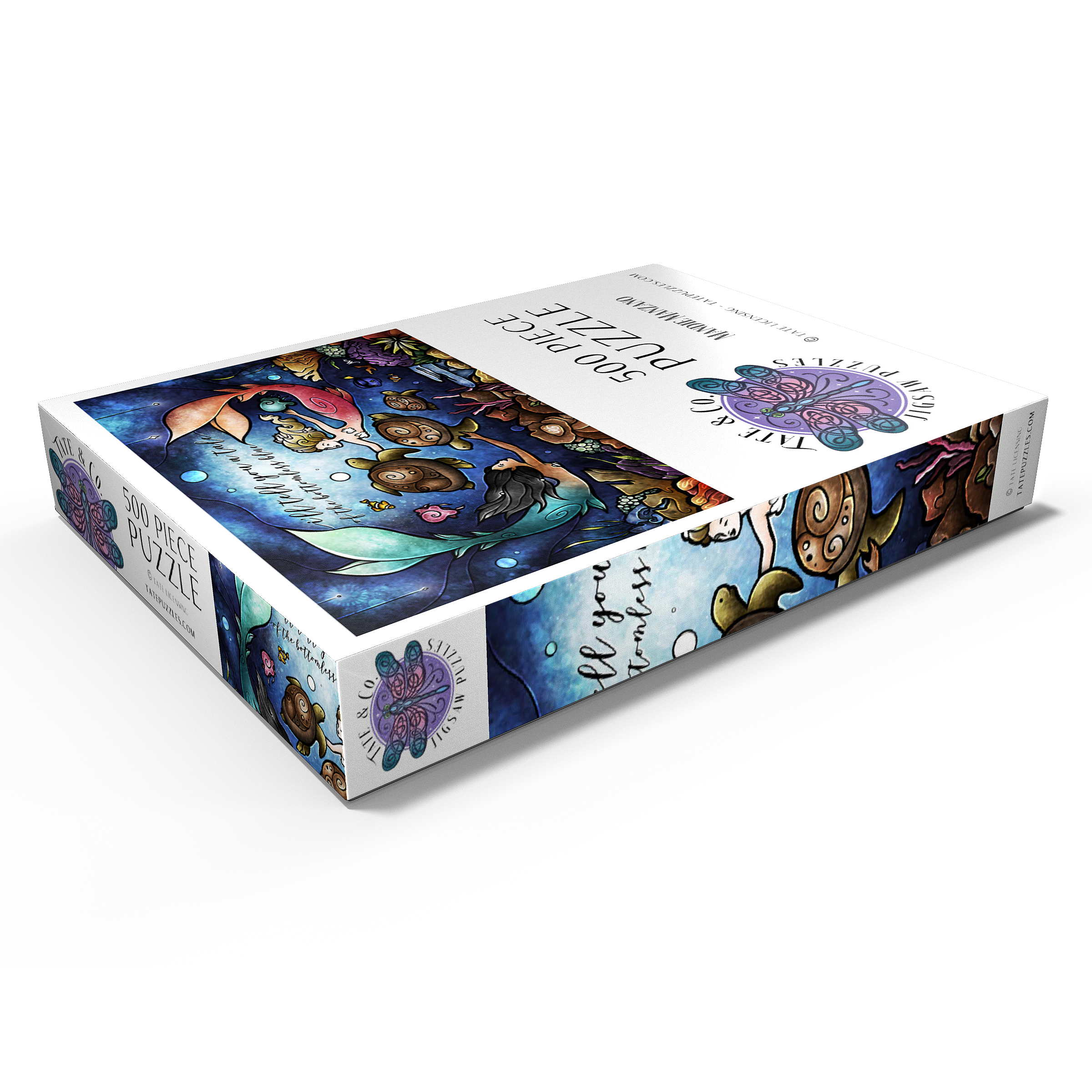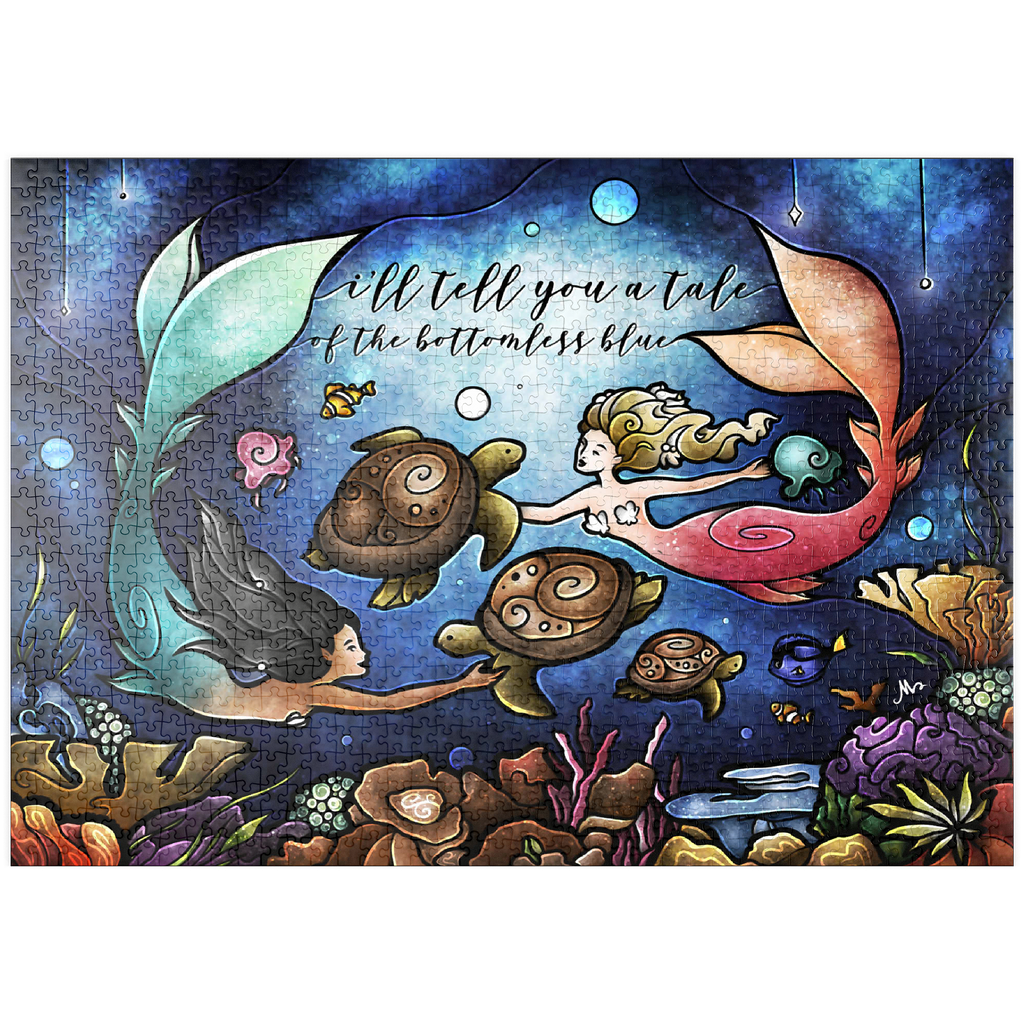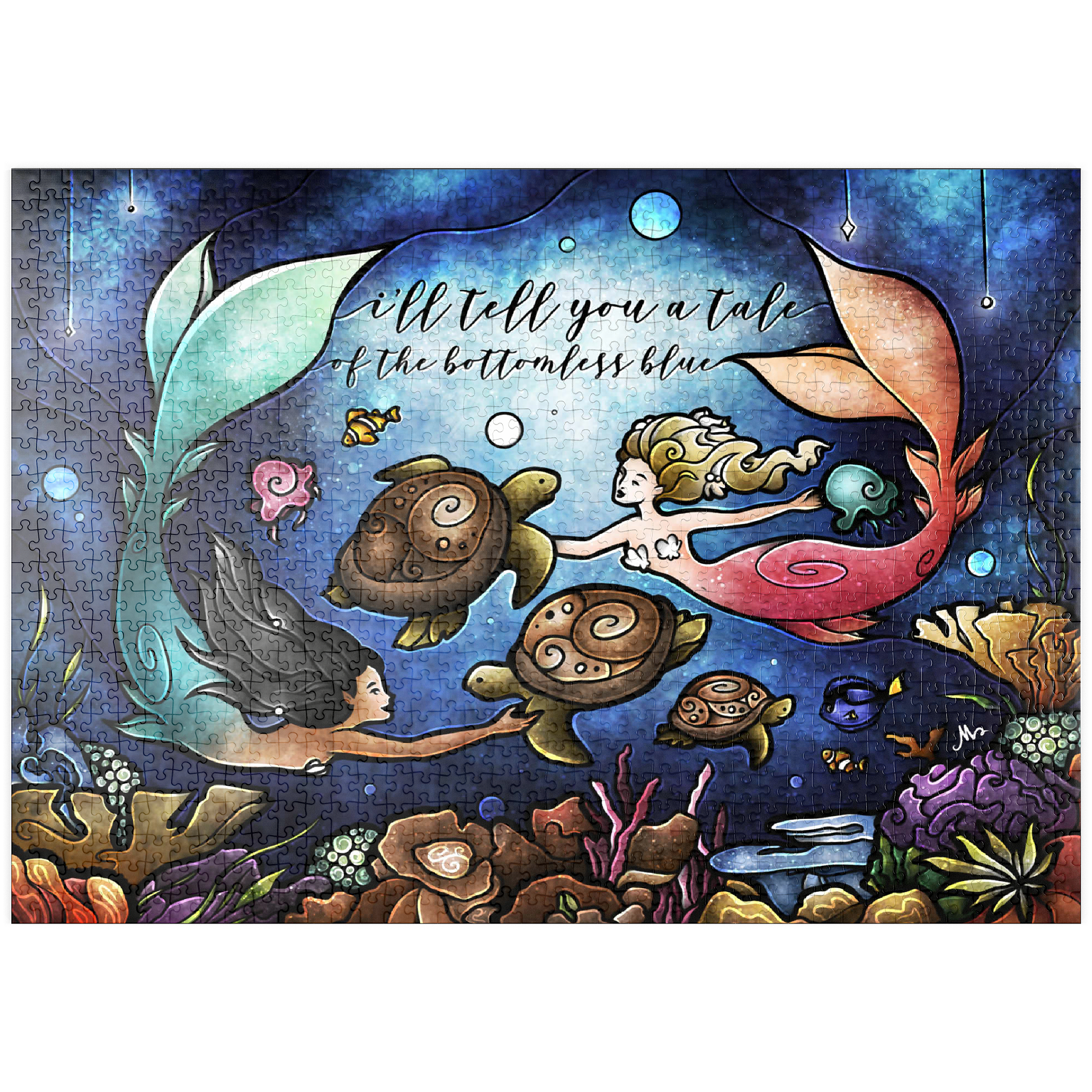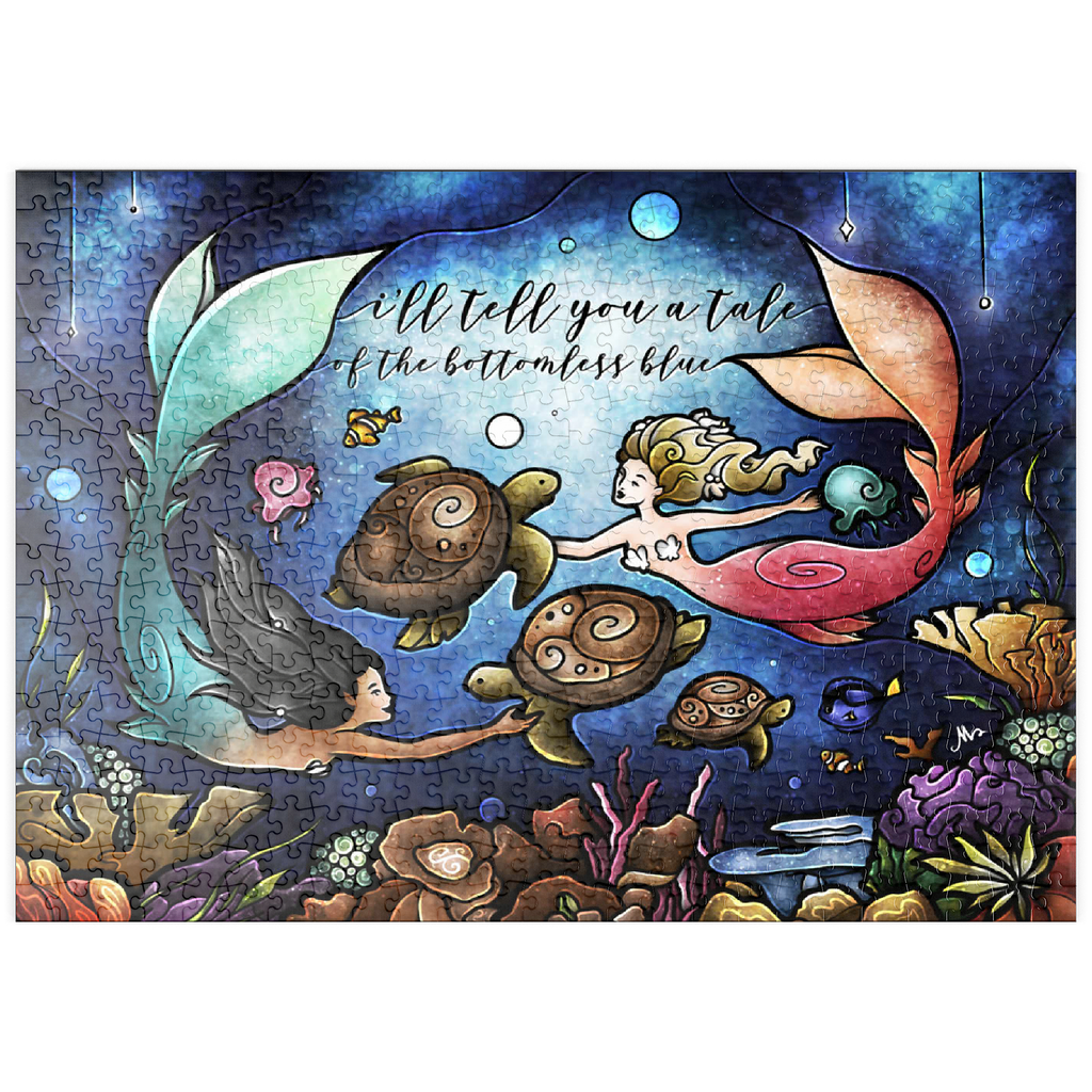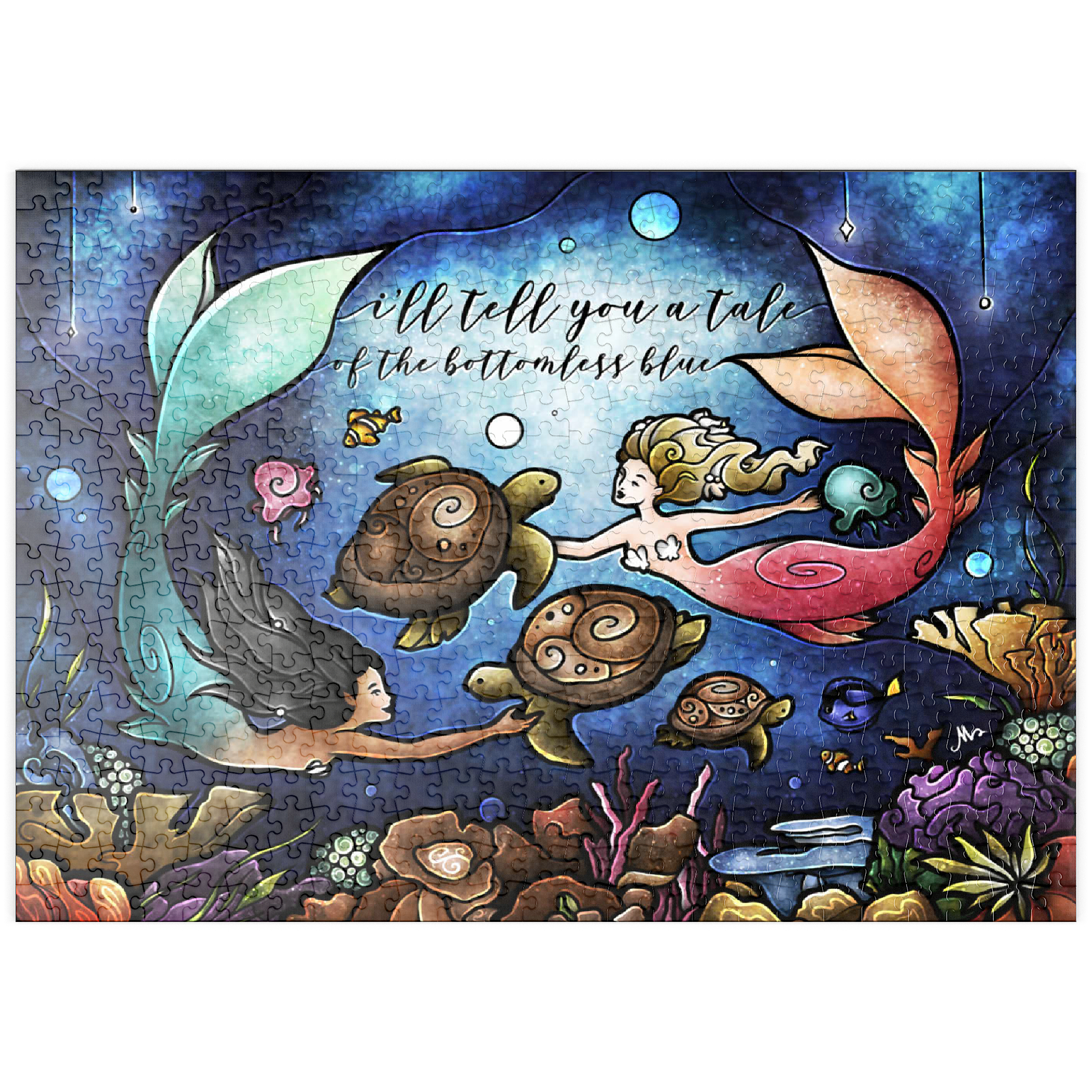 Tauchen Sie ein in eine bezaubernde Unterwasserwelt! Zwei anmutige Meerjungfrauen mit wallendem Haar und leuchtenden Schwänzen bereiten sich darauf vor, ihren neugierigen Schildkrötenfreunden inmitten bunter Korallen und schimmerndem Wasser eine Geschichte zu erzählen. Entdecken Sie die Geheimnisse der Tiefe, während Sie diese skurrile Szene der Freundschaft und des Geschichtenerzählens unter den Wellen zusammenfügen.