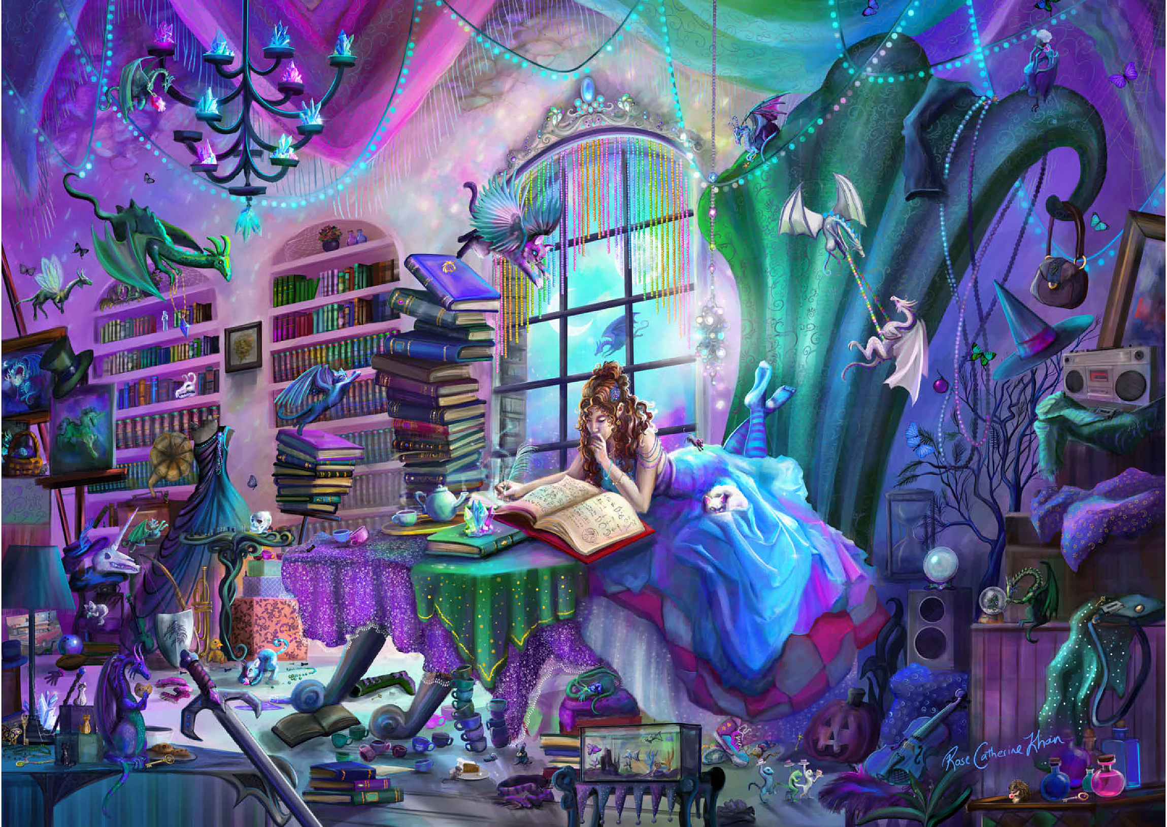 Rose Catherine Khan ist eine Meisterin der Fantasie, die das Auge mit ihren üppigen Illustrationen erfreut. Ihre Sammlerstücke und Puzzlespiele sind in Einzelhandelsgeschäften auf der ganzen Welt zu finden. Roses Kunstwerke zeigen eine Vielzahl fantastischer Kreaturen, darunter weise Drachen, wilde Einhörner und schelmische geflügelte Katzen.