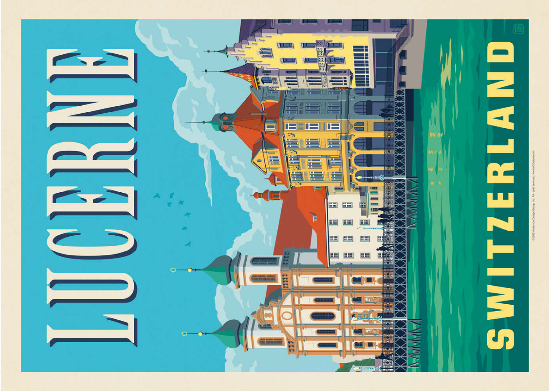 Die 1993 gegründete Anderson Design Group begann mit der Herstellung von CD- und Spielzeugverpackungen, Buchumschlägen, Postern und Logos. Im Jahr 2003 begann der Gründer Joel Anderson, seine Künstler anzuleiten, Werke im Stil der klassischen Plakatkunst des frühen 20. Jahrhunderts zu schaffen. Ihre erste Posterserie war die Kollektion Spirit of Nashville - eine Gruppe von Drucken, die die Geschichte und den Charme ihrer Heimatstadt zelebrierten. Im Laufe der Zeit entwickelte sich das Unternehmen zu einem Illustrations- und Designstudio mit einer Postergalerie und einer Druckerei im Erdgeschoss.Im Jahr 2010, nachdem er über 150 verschiedene Nashville-Designs produziert hatte, begann Joel eine neue Posterserie mit dem Namen The Art & Soul of America - eine Reisepostersammlung mit meinen liebsten amerikanischen Reisezielen. Es begann mit einer kleinen Sammlung von Drucken mit Motiven aus Städten wie Seattle, New Orleans, New York und Chicago. Die Serie war ein sofortiger Erfolg, und die Anderson Design Group erhielt bald Anfragen aus den gesamten USA für neue Kunstwerke, die andere Orte zeigen, die für die Menschen etwas Besonderes sind - Orte, an denen Erinnerungen geschaffen und Seelen bewegt werden.