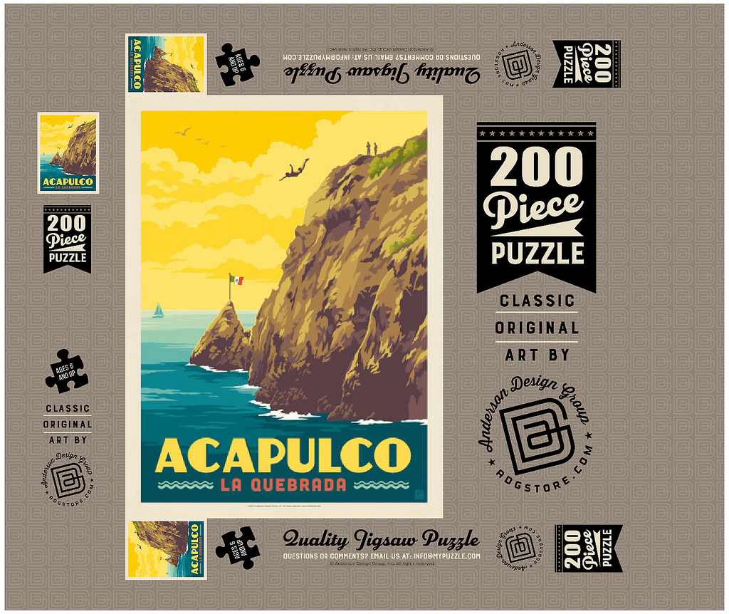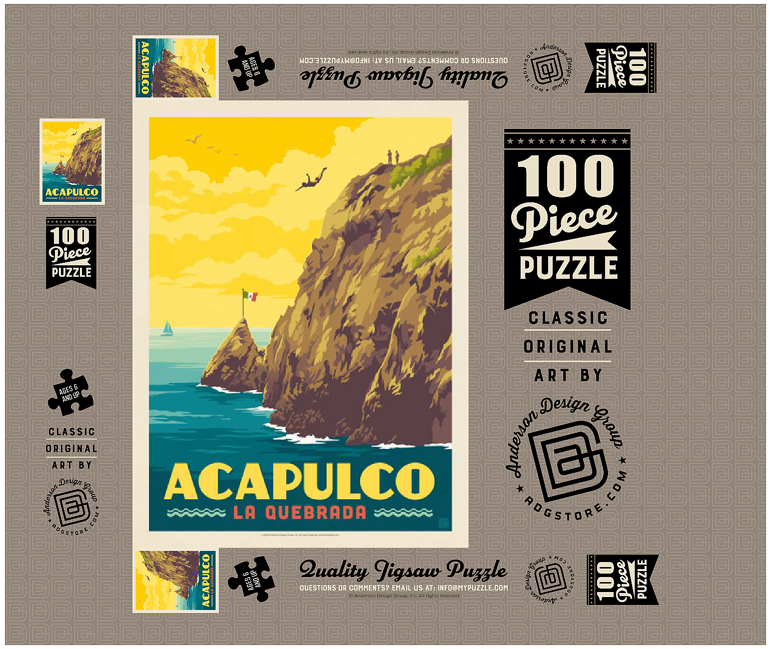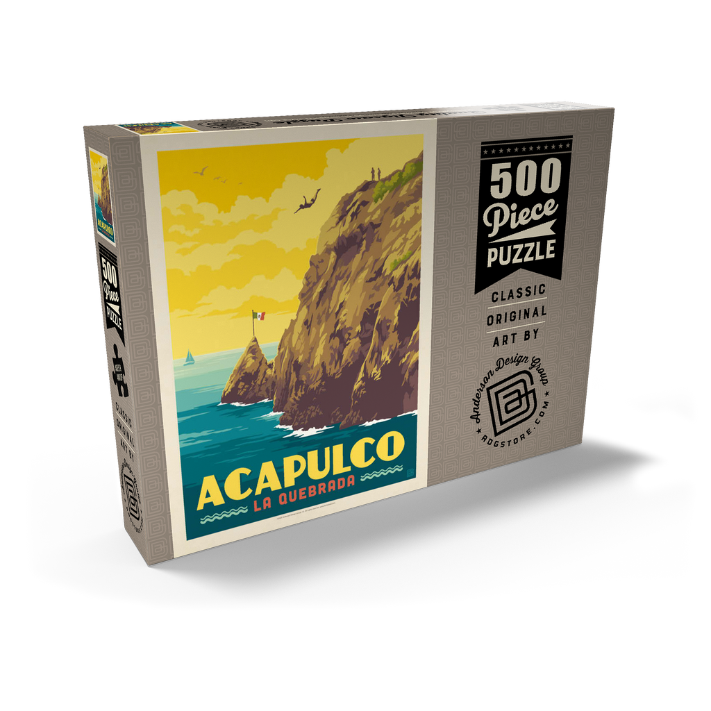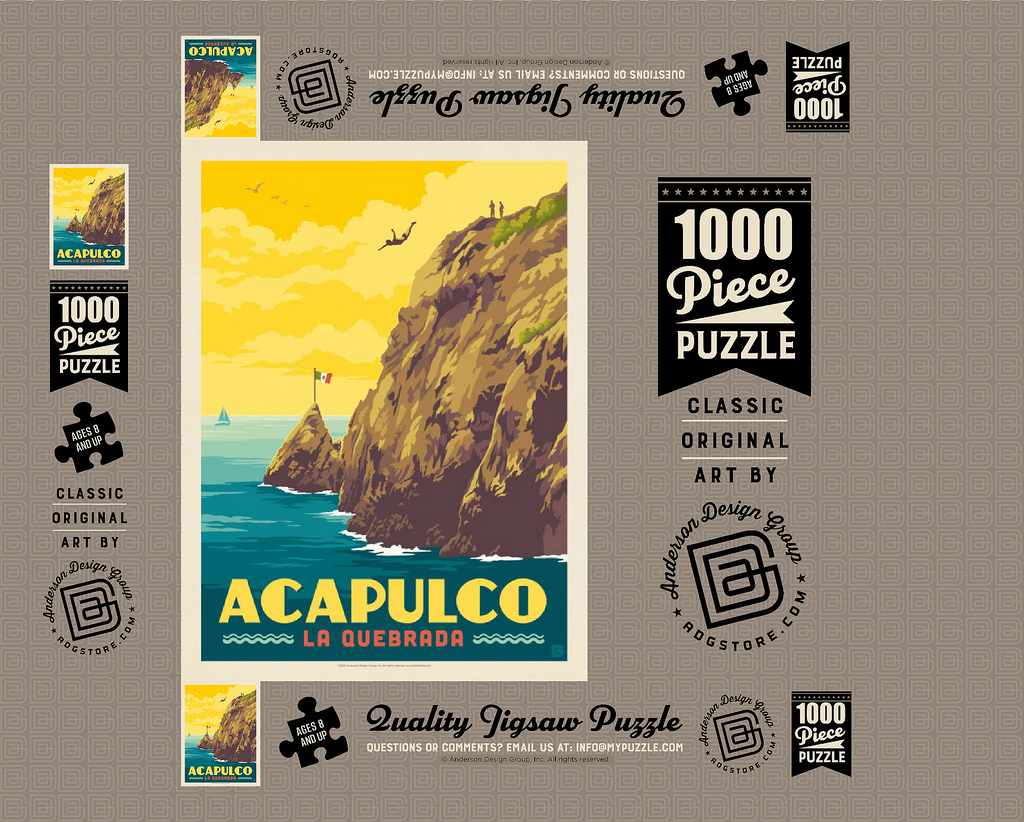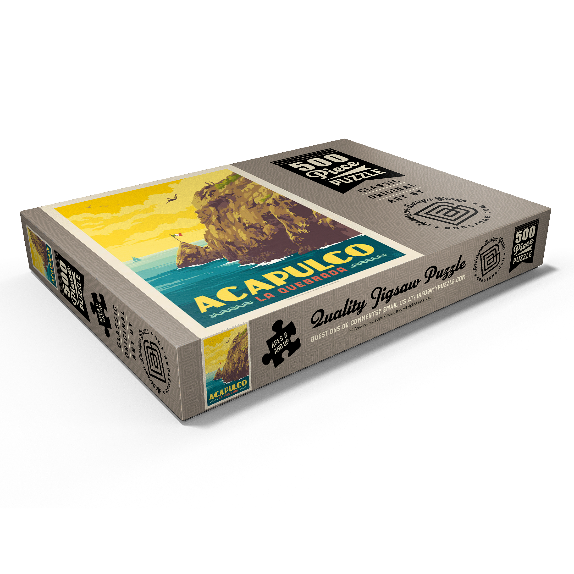 La Quebrada in Acapulco, Mexiko, ist weltberühmt für seine waghalsigen Klippenspringer, die von hoch aufragenden Felsformationen in den Pazifischen Ozean springen. Dieses dynamische Kunstwerk zeigt einen dramatischen Sprung in der Luft bei Sonnenuntergang und fängt den Nervenkitzel und die Tradition dieses ikonischen Küstenspektakels ein. Die zerklüfteten Klippen ragen steil über dem türkisfarbenen Wasser empor, mit einer mexikanischen Flagge auf einem Felsvorsprung und Silhouetten vor einem goldenen Himmel. Als eine der Hauptattraktionen von Acapulco verbindet La Quebrada natürliche Schönheit mit adrenalingeladenen Darbietungen und zieht Besucher aus aller Welt an, die dieses einzigartige Schauspiel von Geschicklichkeit und Mut miterleben möchten.